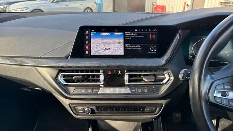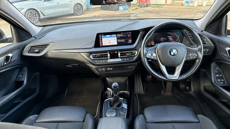 Active guard plus, Attentiveness assist, BMW Online services, BMW Teleservices, Check Control warning system for monitoring of lights and door/luggage compartment open warning, Connected eDrive Services, Cruise control with brake assist, Eco pro mode, Electric power steering with Servotronic steering optimised at all speed ranges, Integrated owners handbook, Lane departure warning system, Oil sensor for level and grade, On board computer, Optimum shift indicator, Personal Profile, Pull away assistant, Speed limiter, 6 speed manual transmission, Aluminium lightweight construction, Anti roll bar front and rear, Balancer shaft, Double VANOS, Drive Performance Control, Electronic differential lock, High precision injection, Petrol Particulate Filter, VALVETRONIC engine management, Bluetooth audio streaming, DAB Digital radio, Auto dimming rear view mirror, Automatic windscreen wipers and automatic headlight, Body colour door handles, Body colour mirror caps, Chrome exhaust tailpipe in single, round (Exhaust tailpipe, stainless steel - single, round), Chrome kidney grille with extra wide black, high gloss black vertical slats, Direction indicator side lights in exterior mirrors, Fading support, Follow me home headlights, Front and rear bumper system with replaceable deformation elements, Front and rear electric windows with open and close fingertip control, anti trap facility and comfort closing, Front bumper in Body colour with exclusive Sport air inlets finished in High gloss Black, Front door sill finishers in black plastic with BMW designation, Green tinted heat protection glazing, Heated, electrically adjustable exterior mirror aspheric on driver side, convex on passenger side, High gloss shadowline window frame, Recess cover mirror frames and B/C pillar embelisher trim, High level third brake light, LED daytime running lights, LED eyebrow turn indicators, LED front fog lights, Lightweight engineering, Manual headlight beam throw control, Matt black air guide grilles, Model designation on right side of tailgate, Nearside reverse light in rear light cluster, Preparation for high beam assistant, Rain sensor including auto headlights activation, Rear bumper in Body colour with exclusive Sport design elements finished in High gloss Black, Rear fog lights, Rear window wiper, Shark fin antenna, Visible VIN plate, Welcome lighting, 12V power socket in centre console, 3 rear seat head restraints, 3 spoke sports leather steering wheel in pearl Chrome, Child seat ISOFIX attachment for two outer rear seats and front passenger seat with anchorage points, Conditioned based service, Folding rear clothes hook, Four grab handles integrated in roof lining, Front and rear door pockets, Front and rear door pockets with bottle holders, Front and rear side armrest integrated into door trim, Front armrest foldable with integrated storage compartment, Front sports seats with electric side bolster adjustment, Glove compartment, Height adjustable front head restraints, Manual adjust steering wheel, Multi-function controls for steering wheel, Storage compartment in centre console, Sun visors with vanity mirrors and insert tab, Two zone automatic air conditioning, Velour floor mats, Connected pack professional - 1 Series, Extended storage pack - 1 Series, Interior lights pack - 1 Series, 2 tone horn, 3 point seatbelts on all seats, front pyrotechnic belt tensioners, stopper and belt force limiters, rear coded belt buckles, Airbags - front driver/passenger, front & rear curtain, front side, Anti lock braking system (ABS) with brake assist, BMW emergency call, Brake drying, Braking readiness, City braking function, Crash sensor activating central locking release, hazard warning lights, fuel cut off, interior lighting + activation of safety battery terminal clamp, Driver and front passenger seat belt security check, Dynamic stability control + (DSC+), Dynamic Traction Control - DTC, Electrically operated hand brake, Front and rear disc brakes, Front passenger manual airbag deactivation, Seatbelt warning, Side impact protection, Tyre pressure monitoring system, Warning triangle and first aid kit, Automatic drive away locking facility, Central locking switch for all doors, fuel filler cap and luggage compartment, Deadlocking function system to all doors, Locking wheel bolts, Remote central locking with two Integrate key, one button for opening and closing all lock, open and close window, button for open luggage compartment, Start/stop button with comfort go keyless engine start and auto start stop deactivation button, Thatcham Cat.1 alarm and immobiliser, Contrast stitching on instrument panel, Illuminated Berlin interior trim, Reduced rolling resistance tyres,