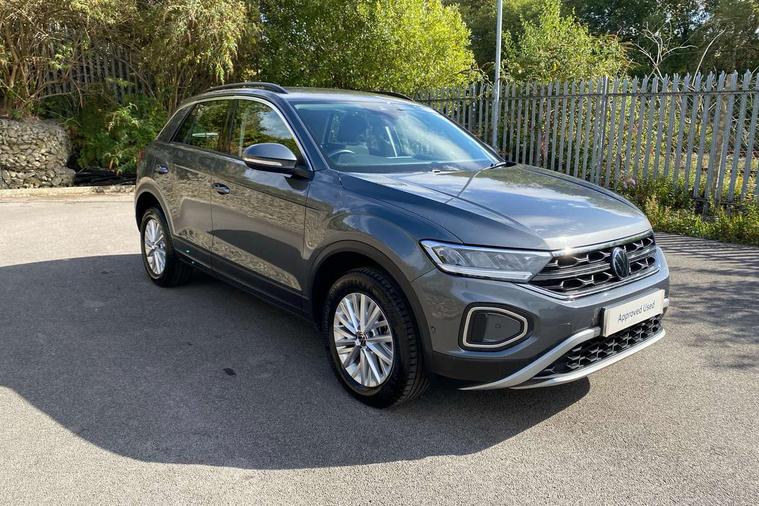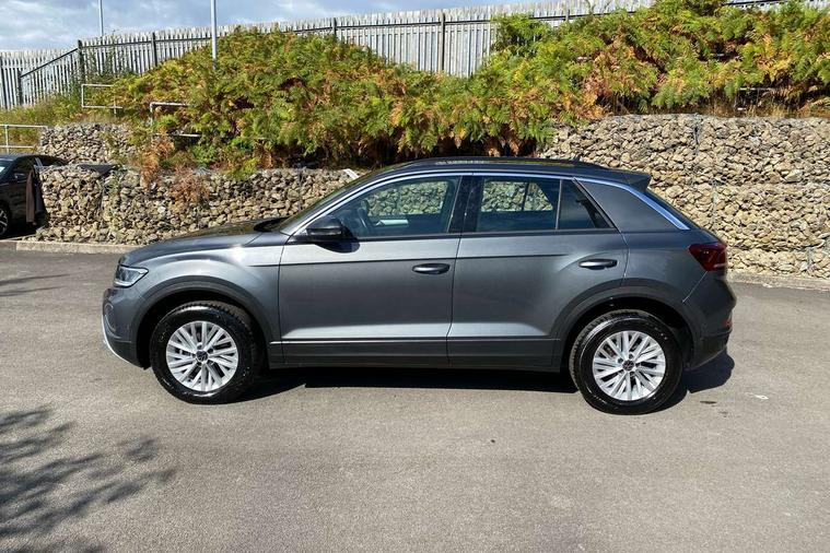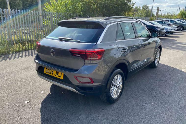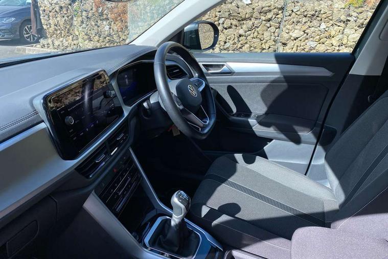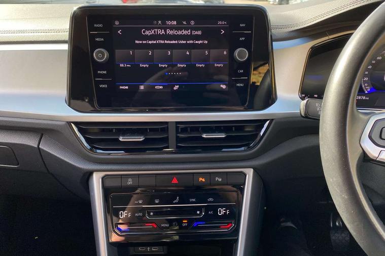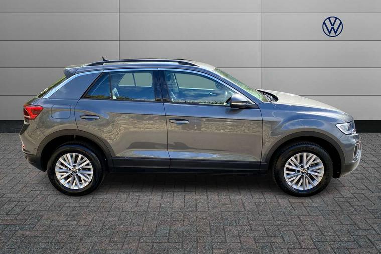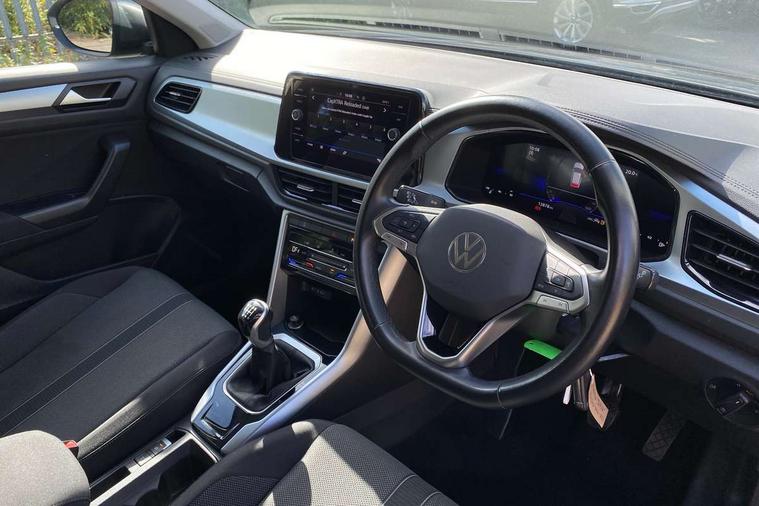 Advanced driver attention and drowsiness monitor, Bluetooth mobile phone interface, Dynamic road sign display, Emergency call service, Lane keeping system Lane Assist, Modified key software - reduce switch off time for key status change to Long no motion, Online services, Park assist including front and rear parking sensors, Power assisted speed sensitive steering, Service interval indicator, Tailgate/trunk lid release from outside, Think blue trainer driver tips and journey analysis, Warning sound and light for front seatbelts unfastened, Wireless app connect, Battery regeneration during braking, Front shock absorption, Rear shock absorption chassis with increased ride height, Start/stop function with battery regeneration, DAB Digital radio, Diversity antenna for FM reception, Music playback - MP3, WMA and AAC files, Premium USB cable in choice of either Apple or Android smartphone compatibility, SD card slot, Simultaneous pairing of 2 compatible mobile devices, Title and cover art display, We Connect and We Connect Plus functionality, 3rd brake light, Auto dimming interior rear view mirror, Automatic hazard lights activation under emergency braking, Automatic headlight control with LED separate daytime running lights with coming/leaving home function, Black roof rails, Body coloured bumpers and radiator grille with chrome trim and front fog lamps with chrome bezel, Body coloured exterior mirror housings and door handles, Electrically adjustable and heated door mirrors, Extended roof spoiler, Exterior mirrors aspherical on driver side, convex on front passenger side, External USB type C socket and charging sockets, Front windscreen wiper with intermittent wipe and 4 position delay, Heated rear window, LED rear combination lamps, LED rear number plate lights, Power windows with comfort operation and circuit breaker, Rain sensor, Rear exhaust tailpipe, Rear fog light on one side and reversing lights on both sides, Rear side wing doors, Rear wash/wipe with intermittent wipe setting, Remote electrically foldable door mirrors, puddle lights and reverse activated passenger's door mirror, 12V power socket in centre console, 3 rear head restraints, 3 seat bench in 2nd row, 4 load lashing points in luggage compartment, Air care climatronic air conditoning system with active combination filter and 2-zone temperature control, Ambient lighting with mirror logo projection, Cloth upholstery, Door and side trim panel in cloth, Drawer under drivers seat, Driver/front passenger seat height adjustment, Front centre armrest, Front comfort sports seats, Front cupholders x 2, Front reading light, Front seat back storage pockets, Glove compartment door with light, Instrument lighting, white adjustable panel illumination, Interior light delay, Isofix child seat preparation, Leather gearshift handle, Load-through provision with cup holder when folded down ('Unsplit rear seat bench, split folding backrest, with centre armrest), Luggage compartment lighting, Lumbar support for driver's and front passengers seat, Non-folding front passenger seat backrest, Single front passenger seat, Storage compartment in left and right luggage area, Storage compartment in rear doors, Storage compartments in driver and front passenger doors, Sunvisors with illuminated vanity mirrors, Variable boot floor, height adjustable and removable, Driver assistance pack without proactive passenger protection - T-Roc Life/Match, 3 point height adj front seatbelts + pretensioners, 3 point seatbelts in outer rear with ECE label, ABS, Child locks on rear doors, City emergency braking and pedestrian monitoring, Driver and front passenger airbag with front passenger airbag deactivation, Driver and front passenger safety-optimised head restraints, Drivers seatbelt reminder, Electronic parking brake, Electronic Stability Control (ESC) inc EDL (Electronic Differential Lock) and ASR (Traction Control), Front and rear passengers curtain airbag system including front side airbags, Front disc brakes, Hill start assist, Predictive pedestrian protection, Rear disc brakes, Two tone horn, Tyre pressure loss indicator, Volkswagen roadside assistance, Alarm with interior protection, Anti-theft alarm system with interior monitoring, backup horn, and towing protection, Remote central locking with SAFELOCK, radio remote control with 2 remote control folding keys, Pewter matt decorative inserts for intrument panel, centre console and door panels at the front, Trims for alloy wheels,