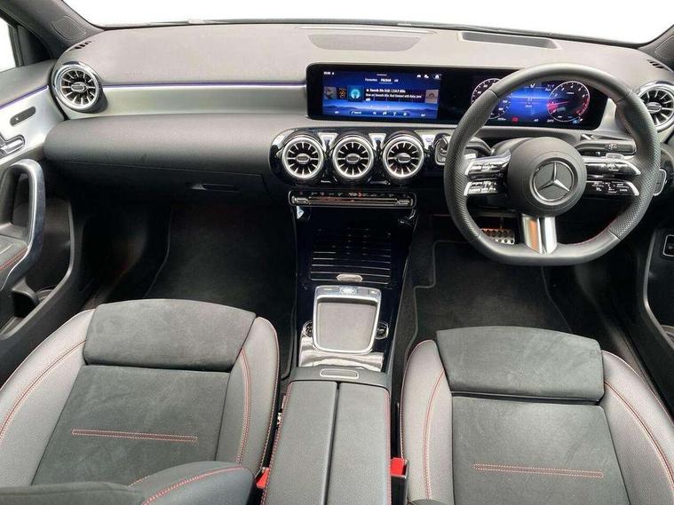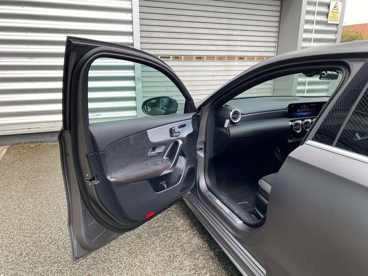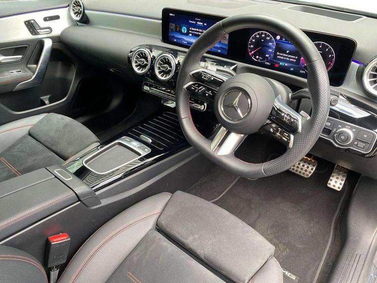 10.25 inch touchscreen central media display, 10.25" Digital instrument cluster display screen, Attention assist, Brake pad wear indicator warning light, Car wash mode, Direct steering, Direction indicators with lane change function, Dual bluetooth interfaces, DYNAMIC SELECT with a choice of driving modes (ECO, Comfort, Sport and Individual), ECO start/stop function, Engine start/stop button, Fingerprint scanner, Fluid level warning indicator for fuel, oil, coolant and washer fluid, Fluorescent jacket for driver, Hard-disk navigation, Head up Display, Hey Mercedes Voice activation, Lamp failure indicator, Mercedes me connect including emergency call system, accident recovery, breakdown management and maintenance, Mercedes me remote services, Outside temperature gauge, Owners manual in English, Pre-installation of private car share, Preinstallation for Mercedes Benz link, Remote boot closing, Service indicator (ASSYST), Smartphone integration with Apple CarPlay and Android auto, Speed sensitive power steering, Traffic sign assist, Trip computer in multifunction display with current consumption indicator, Wireless charging, Lowered comfort suspension, DAB Digital radio, MBUX multimedia system, Mercedes Benz advanced sound system (225 W) with 10 speakers, 1 central speaker, speakers on doors, a tweeter on door, one sub woofer + boost amplifier, 4 Electric Front and Rear windows, Adaptive brake lights, AMG body styling - AMG front apron with front splitter and AMG rear apron and visible exhaust tailpipe trim elements, Body colour bumpers, Body colour door handles with chrome inserts, Body colour side skirt, Chrome beltline strips, Diamond radiator grille with pins in fine star pattern, Electric adjustable and heated door mirrors with integrated LED side indicators, Exhaust system with 2 visible tailpipe trim elements and rear apron, Headlamp assist automatic headlamp activation, Heat insulating dark tinted rear and rear side windows, Heated glass rear windscreen + timer control, LED daytime running lights, LED tail lamp, Multibeam LED headlamps with adaptive highbeam assist and cornering function, Panoramic sliding sunroof, Privacy glass, Radio aerial, Rain sensing windscreen wipers with two sensitivity settings, Rear boot, Rear fog lights, Rear side wing doors, Third brake light featuring LED technology, 3 seat bench in 2nd row, 3 Spoke flat bottom leather multi function steering wheel with perforated leather in grip area, 40:20:40 split folding rear seats, Air conditioning - Two zone thermotronic luxury automatic climate control with display, AMG floor mats, Automatic child seat recognition sensor, Black air vents with surround in silver chrome, Black roof lining, Brushed stainless steel sports pedals with rubber studs, Electrically adjustable front memory seats including lumbar support and backrest inclination, Front centre armrest with stowage, Front seat backs luggage nets, Galvanished gear shift paddles on steering wheel, Height/reach adjustable steering column, Illuminated Mercedes Benz lettering front door sills with changeable cover, Interior lighting - 64 colour Ambient lighting, Interior mirror with reading lamps in black and frameless, ISOFIX and top tether child seat fixing points in two outer rear seats, Rear armrest with 2 cupholders, Seat occupancy sensor for front passenger seat, Single front passenger seat, Sports seats with adjustable head restraints, Stowage compartment in centre console with retractable cover, Sunvisors with illuminated vanity mirrors, Twin front cupholders, Keyless go comfort pack - A Class, Light and sight package - A Class, Mirror package - A Class, Night pack - A Class Sport, Parking pack with 360 degree camera - A Class, Seat comfort pack - A Class, USB pack plus - A Class, Winter pack - A Class, 3 rear 3 point seatbelts, ABS with Brake Assist, Active bonnet, Adaptive brake assist with hold function and hill start assist, Black seatbelts, Bonnet with power domes, Childproof locks manually operated for rear doors and electrically operated for rear power windows, Crash responsive emergency lighting, Driver and passenger head and side airbags, Drivers knee airbag, Dual stage driver/passenger airbags, Electronic parking brake, ESP curve dynamic assist, ESP with ASR, Exit warning, Front and rear seatbelt reminder, Tyre pressure monitoring system, Warning triangle and first aid kit, Window airbags, Alarm system/interior protection/immobiliser, Guard 360 degree vehicle protection, Remote central locking and crash sensor with emergency opening function, Light longitudinal grain aluminium trim, 19" AMG multi-spoke light alloy wheels, aerodynamically optimised, painted in black with high sheen rim flange, Summer tyres, Tirefit sealant kit,