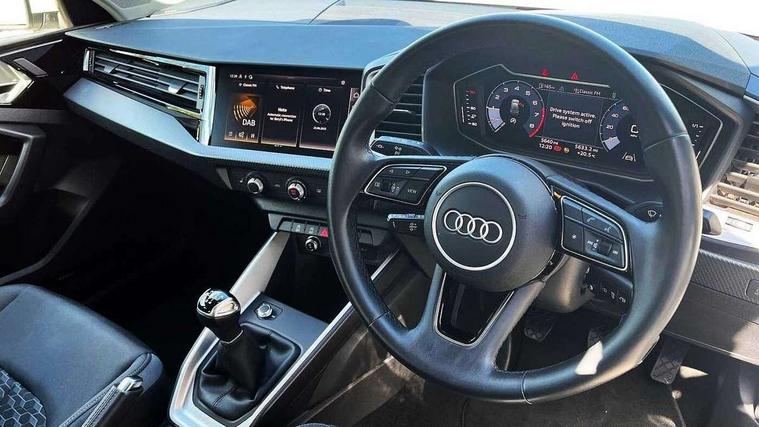 Advanced driver attention and drowsiness monitor, Audi connect emergency call and service, Audi smartphone interface, Bluetooth interface, Camera based traffic sign recognition, Cruise control, Driver's information system, Electromechanical power steering, Lane departure warning system, Service interval indicator, Speed limiter, Start stop system with recuperation, Voice control system, Washer fluid level indicator, Dynamic suspension, 2 x USB type C connection points, DAB Digital radio, Auto dimming rear view mirror, Body coloured bumpers, Body coloured door mirrors, Electric front and rear windows, Electrically adjustable, heated, folding door mirrors with integrated LED side indicator, Front side air inlets in grained matt black and C frame in anthracite black, Headlight cleaning system, Heat insulating glass windscreen and side windows, Heated rear windscreen, High level LED brake light, LED daytime running lights, LED headlights with range control LED rear lights + dynamic rear indicators, Light and rain sensors, Radiator grille and rear diffuser in matt anthracite black, Radiator protective grille frame in matt aluminium silver, Rear fog lights, Rear side wing doors, Rear wiper, Side front spoiler lips in grained matt black, 12V socket in centre console with two cup holders, 3 rear seats with headrests, 3 seat bench in 2nd row, 3 spoke leather multifunction plus steering wheel, 40:60 Split folding rear seat or fully collapsed, Black velour floor mats, Front door sill trims with aluminium inlay, Front head restraints, Front passenger seat, Grey cloth headlining, Height and reach adjustable steering wheel, Interior lighting includes roof module, front and rear reading lights and right luggage compartment lighting, ISOFIX child seat mounting for front passenger and outer rear seats including top tether attachment point of outer rear seats, Leather gear knob with aluminium trim, Leather handbrake grip, Manual height adjustable for driver and front passenger seat, Manually adjustable lumbar support in front seats, Novum cloth upholstery with front sport seats, Luggage compartment pack - A1, Technology pro pack with convenience key - A1, 3x3 point rear seatbelts, Audi pre-sense front with pedestrain and cyclist recognition, Brake assist function, Driver and front passenger airbag with front side and head airbags, Electronic Stability Control including ABS, EBD, ASR and EDL, Front passenger airbag deactivation switch, Hill hold assist, Manual rear child locks, Seatbelt height adjustment for front seats, Seatbelt monitoring, Tyre pressure loss indicator, Warning triangle and first aid kit, Anti theft alarm, Anti theft wheel bolts, Immobiliser, Aluminium trim for control switches, air vents and digital instrument cluster, Black dashboard, Silver grey accent surfaces insert of air vents, interior door handle recesses and centre console in diamond paint finish, Slate grey inlays polygon structure in fine paint finish,