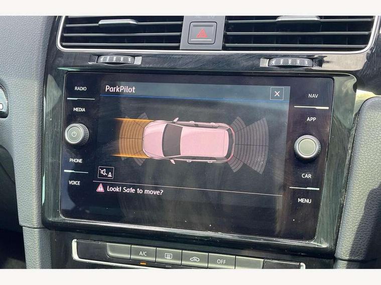 'Lights On' Reminder warning buzzer, 8" touch screen, Adaptive Cruise Control with pedestrian detection and speed limiter, App-Connect, Bluetooth hands free telephone connection, Brake pad wear indicator warning light, Driver alert system, Driver profile selection, Exterior temperature gauge, Front assistant collision mitigation, Instrument cluster in white, Multifunction computer, PAS - speed related, Rev counter, Trip and service interval display, Ultrasonic front and rear optical and audible parking sensors, Warning buzzer and light for front seatbelts unfastened, Diesel particulate filter, Lowered sports suspension, XDS electronic differential lock, CD/MP3/WMA, USB and SD card reader, aux-in, Composition media system, DAB Digital radio, Auto dimming rear view mirror, Automatic coming/leaving home lighting function, Automatic headlights, Black front air intake and radiator grille with chrome insert, Black rear diffuser, Body colour bumpers, Body colour door handles, Body colour door mirrors, Chrome grille surround, Electric front windows, Electric rear windows, Electrically adjustable and heated door mirrors, Heat insulated tinted glass 65% light absorbing from B pillar back, Heated rear windscreen, LED daytime running lights, LED front fog lights with static cornering light function, LED rear lights, Rain sensor, Rear roof spoiler, Rear windscreen washer and wiper with interval delay, 12V socket in luggage compartment, 3 rear headrests, 3 spoke steering wheel, 60/40 split folding rear seat, Bag hook in luggage compartment, Boot lashing points, Cooled glovebox, Courtesy light delay, Cover for storage compartment in centre, Dust/pollen filter, Front + rear carpet mats, Front centre armrest with storage box and rear air vents, Front passenger drawer stowage, Front passenger seat height adjust, Front seat back storage pockets, Grab handles, Height adjustable driver's seat, Height/reach adjust steering wheel, Illuminated vanity mirrors, Isofix preparation for 2 rear child seats, Load through provision with rear centre armrest and cupholders x2, Luggage compartment cover, Luggage compartment lighting, Multifunction leather steering wheel with leather gear knob/handbrake grip, Overhead storage box, Pearl grey headlining, Storage box in luggage compartment, Storage compartments in doors, Sun visors, Variable boot floor, height adjustable and removable, Ambient lighting pack - Golf, Convenience Pack - Golf, Mirror pack - Golf, 3 point height adj front seatbelts + pretensioners, 3 rear 3 point seatbelts, ABS, Automatic post collision braking, Child locks on rear doors, Driver/Front Passenger airbags, Driver/Passenger whiplash optimised head restraints, Drivers knee airbag, Electronic parking brake with auto hold, ESP with EDL + ASR, Front and rear curtain airbags, Front passenger airbag deactivation, Front side airbags, Pre crash system, Tyre pressure monitor, Alarm with interior protection, Electronic engine immobiliser, Remote central locking with 2 remote folding keys, Chrome-plated light switch surround, Piano black centre console, Tumbler decorative inserts, Steel space saver spare wheel,