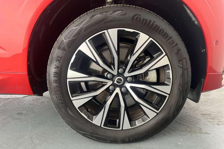 12.3" Progressive Driver Display, 360 degree surround view parking camera with side proximity sensors, 9" centre console touch screen, Adjustable steering wheel force, Bluetooth handsfree system, Driver alert control with lane keeping aid, Driver assistance (pilot assist and adaptive cruise control), Driver awareness - Blind spot information system with steer assist, cross traffic alert with autobrake and rear collision warning and mitigation, Emergency services call system, Front and rear park assist, Google Automotive Services, Oncoming Lane Mitigation, Service interval indicator, Speed limiter, Speed sensitive steering, Trip computer, Volvo on call with App, Wireless/Inductive Mobile Phone Charging, 8 speed automatic transmission with start/stop + manual change functions, Dynamic chassis, DAB Digital radio, Premium Sound by Harman Kardon, dirac unison, dolby pro logic II surround sound, 13 speakers/600W output and fresh air subwoofer, Steering wheel remote infotainment controls, Adaptive brake lights with high level LED brake lights, Auto dimming interior + exterior mirrors, Automatic headlight levelling system, Automatic LED Headlights + Active high beam incorporating daytime running lights, Electric adjustable/heated/auto power folding door mirrors, Electric front+rear windows, Front aluminium tread plates, Heated front windscreen, High gloss black door mirrors and window surround, High gloss black front and rear bumper decoratives, High gloss black mesh front grille with high gloss black surround, Home safe and approach lighting, Integrated roof rails in high gloss black, LED front fog lights, Puddle lights, Rain sensor with automatic windscreen wiper activation, Rear side wing doors, Rear wiper, Roof antenna, Roof spoiler, Tinted windscreen, Visible VIN plate, 12V socket in front tunnel console and luggage compartment, 3 seat bench in 2nd row, 4 Zone electronic climate control, A-pillar parking ticket holder, Air purifier particulate matter (PM) 2.5 filter, B Pillar ventilation, Bright metal luggage threshold, Centre console cupholders and storage, Charcoal floor mats, Front and rear courtesy lights, Front and rear door pocket illumination, Front cupholder illumination, Front footwell illumination, Front reading lights, Front seat cushion extensions, Glovebox compartment with illumination, Head restraints for all seats, Heated front seats, Heated steering wheel, Height/reach adjustable steering column, Illuminated luggage compartment, Illuminated vanity mirrors + ticket holder, ISOFIX attachment on outer rear seats, Load cover, Load protection net, Multi directional lumbar support, Power driver seat with memory + exterior mirrors memory, Power height adjustable passenger seat, Rear armrest with cupholder, Rear footwell and front and rear side step illumination, Rear seat concealed storage, Single front passenger seat, Tailgate illumination and ambient door lighting, Underfloor stowage compartment, Versatile split folding rear seat - 60/40, 5 three point seatbelts, City safety with steering support with Pedestrian + cyclist + large animal detection + front collision warning with full auto brake, Drivers knee airbag, Dual stage driver/passenger airbags, Electronic parking brake with auto hold, First aid kit, Front seats SIPS airbags, Hill descent control - Off-road drive mode, Hill start assist, IC (Inflatable Curtains) - Full Length, Passenger airbag cut-off device, Power child locks on rear doors, Road sign information display, Run off Road Mitigation, Run off Road Protection, Seatbelt reminder and pretensioners, SIPS (Side Impact Protection System), Slippery road and hazard light alert, Stability and Traction Control with Spin control, Engine Drag Control and Corner Traction Control, Tyre pressure monitoring system, Vehicle deceleration control with Anti-lock Brake System, Electronic Brake Distribution and Emergency Brake Assist, Warning triangle, WHIPS whiplash protection system - front, Anti-theft alarm including immobiliser/volume sensor + level sensor, Care key with user defined top speed, Key integrated remote control central locking + fuel flap with deadlocking system and auto open/close power windows, Keyless Drive (includes Keyless Entry and Keyless Start) with Handsfree Tailgate Opening/Closing, Locking wheel nuts, Private locking for tailgate,
