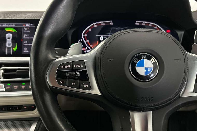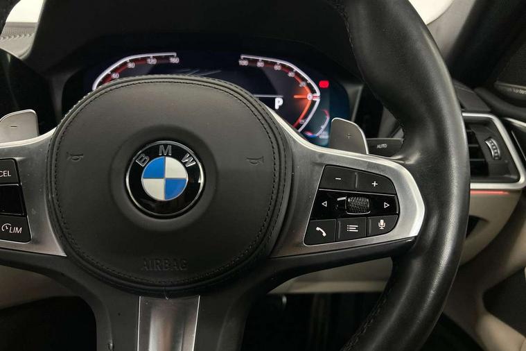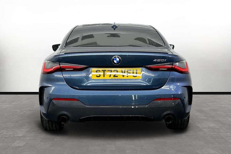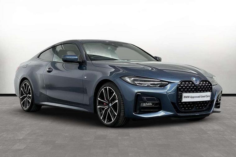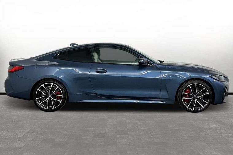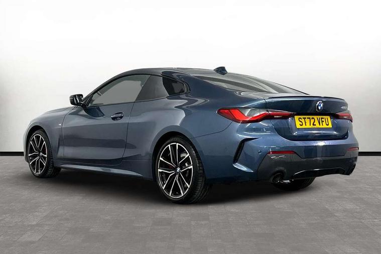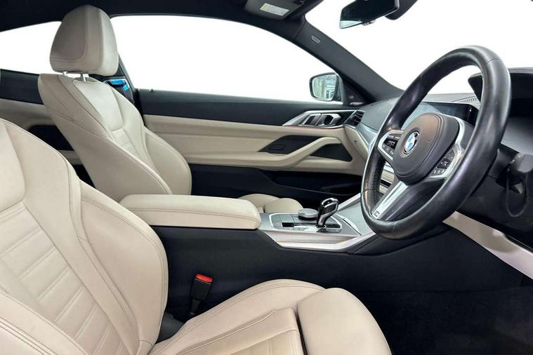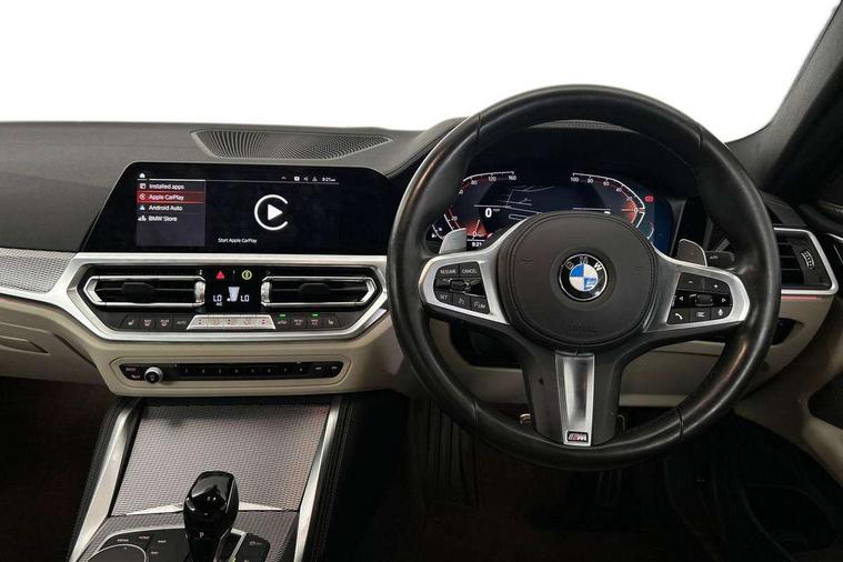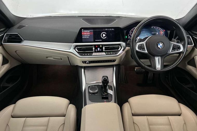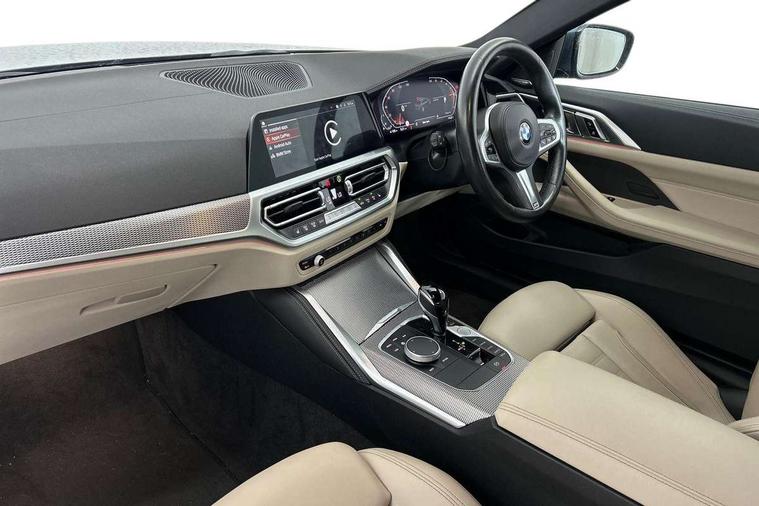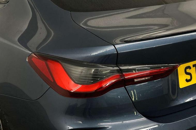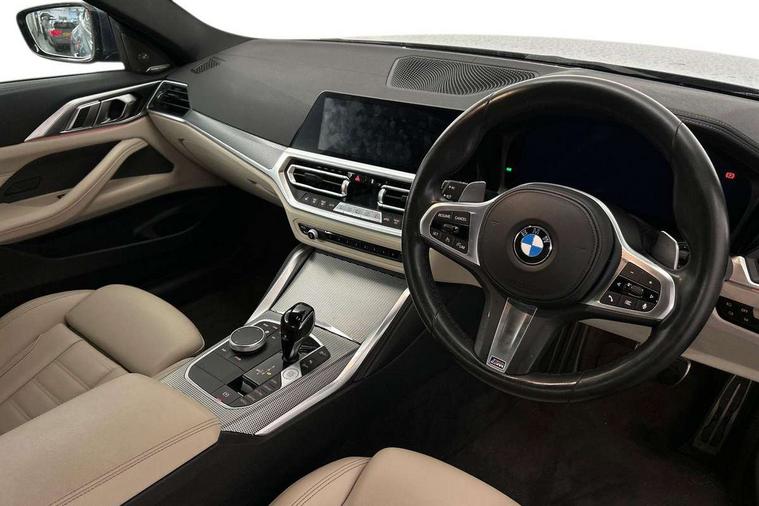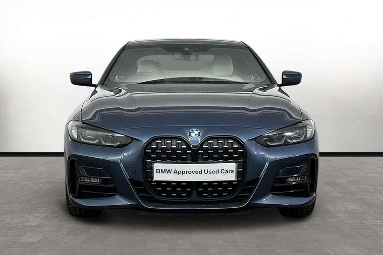 Active guard plus, Attentiveness assist, Auto start-stop, BMW ConnectedDrive online services, BMW iDrive controller on centre console, BMW Live Cockpit Professional Nav with 12.3" instrument display + 10.25" display, Intelligent Voice Assist, BMW OS 7, HDD, 2USB, 4G LTE connect, BMW service history, BMW Teleservices, Brake pad wear indicator in front and rear, Check Control warning system for monitoring of lights and door/luggage compartment open warning, Condition based service, Cruise control with speed limit function, Electric power steering with Servotronic steering optimised at all speed ranges, Gearshift time display in manual mode, Instrument cluster with speedometer with mph readout, tachometer, fuel gauge and oil temperature gauge, Integrated owners handbook, Oil sensor for level and grade, warning by check control system, On board computer - average speed, fuel consumption, outside temp display with acoustic warning, clock/date, service interval, odometer/trip meter, Optimum shift indicator, Run flat indicator, Shifting point display, Touch control functionality for BMW Live Cockpit Professional Nav, Variable sport steering, 8 speed automatic steptronic transmission with gearshift paddles, Balanced 50/50 weight distribution, Double joint spring strut front axle, Double VANOS, Drive performance control - ECO PRO, comfort and sport modes, High precision injection, Low centre of gravity, M sport suspension, Petrol Particulate Filter, Stroke dependent dampers, VALVETRONIC engine management, 2x USB Type C ports in front centre console for charging and data transfer, 2x USB Type C ports in rear centre console for charging, DAB tuner, Electronic service booklet, Acoustic glazing, Automatic headlight beam throw control with load dependent regulating reaction, dynamic compensation of braking dive and acceleration squat, Automatic windscreen wipers and automatic headlight, Automatically dimming electrochromatic rear view mirror, BMW emblem on engine compartment lid and tailgate, BMW kidney grille with mesh grille front side of the nuggets in matt aluminium and frame in chrome high gloss, Body colour fuel filler flap, Body colour roof fin, Brushed aluminium inserts in the front door sill finishers with BMW designation, Door sill strips, Dynamic brake lights, Electric windows - front and rear, with open/close fingertip control, anti trap facility and comfort closing function all round, Exterior mirrors - electrically folding with anti-dazzle, Fading support, Follow me home headlights, Front and rear bumper system, Front apron plastic in body colour, Green tinted heat protection glazing, High gloss shadow line exterior trim, Illuminated bow type door handles in body colour drivers side with door lock, Interior rear view electrochromatic mirror with automatic anti dazzle function, LED daytime running lights, LED front fog lights, LED front indicators, Licence plate panel integrated into front bumper and tailgate, Lightweight engineering, M designation on front side panels, left and right, M rear boot spoiler, Model designation on right side of tailgate, One piece front bumper cover including towing eye cover in body colour, Preparation for high beam assistant, Rear boot, Reversing light, Side frame decorative moulding black matt, Two part LED tailights in L-shape with components in smoked glass, brake light, LED turn indicator and rear fog light, Visible exhaust tailpipe finisher, Visible VIN plate, Welcome lights in interior and door handle area, Widened track and increased camber values for max transverse dynamics, agility and steering precision, Window recess cover black high gloss, Windscreen wipers with integrated heated washing jets, 12V power socket in front centre console, 2 front cupholder in centre console with clamping elements and matt black inlay, 2 Rear seat headrests, 2 seat bench in second row, 3 spoke M sport leather multifunction steering wheel, 3 zone automatic air conditioning, 4 pieces lashing eyelets in luggage compartment, 40:20:40 split folding rear seat and rear centre armrest with two cupholders, Anthracite headlining, Armrest integrated in front and rear door trim + front centre console armrest, BMW ID, Driver seat backrest width adjustment, Four grab handles integrated in roof lining, Front and rear door pockets, Front and rear reading lights, Front sport seats, Heated driver and front passenger seats, Height adjustable front headrests, Height adjustable mechanically and infinitely variable steering column, Illuminated armrest storage compartment, Illuminated glove compartment with separate small compartment, Make-up mirror lights, Single front passenger seat, Storage compartment in rear centre console, Sunvisors with illuminated vanity mirrors and ticket pocket, Toolkit located in luggage compartment, Velour front floor mats, Vernasca leather upholstery, Ambient lighting pack - 4 Series, Connected professional pack - 4 Series, M sport exterior styling pack - 4 Series, 2 x 3-point rear seatbelts, Battery safety cut-off, BMW emergency call, Brake energy regeneration, Braking pre-tensioning, Child seat ISOFIX attachment for the two outer rear seats, Coasting in idle in ECO PRO mode, Cornering brake control (CBC), Crash sensor activating of airbags, Unlocking doors, hazard warning lights, fuel cut off, interior lighting+activation of safety battery terminal clamp, Driver and front passenger side airbags, integrated in the door side seat backrest bolsters for all seat variants, Driver/Front Passenger airbags, Dry braking, Dynamic brake control, Dynamic stability control + (DSC+) - Anti-lock Braking System (ABS) with brake assist and cornering brake control + Automatic Stability Control (ASC), Dynamic Traction Control - DTC, Electric parking brake including automatic hold function and automatic release of the parking brake when driving off, Electronic differential lock control (EDLC), Front and rear ventilated brake disc, Front passenger manual airbag deactivation, Hea