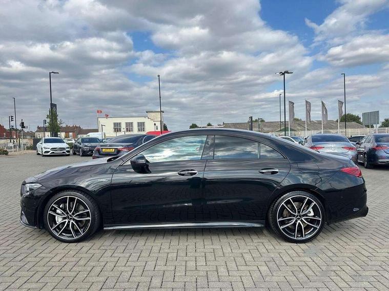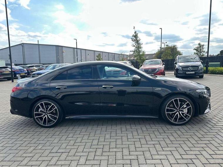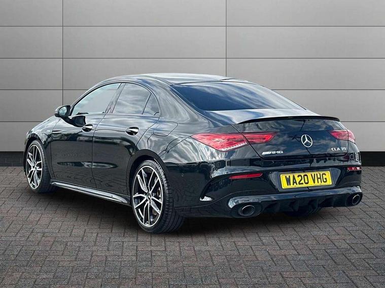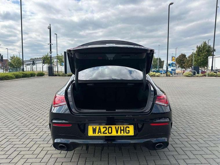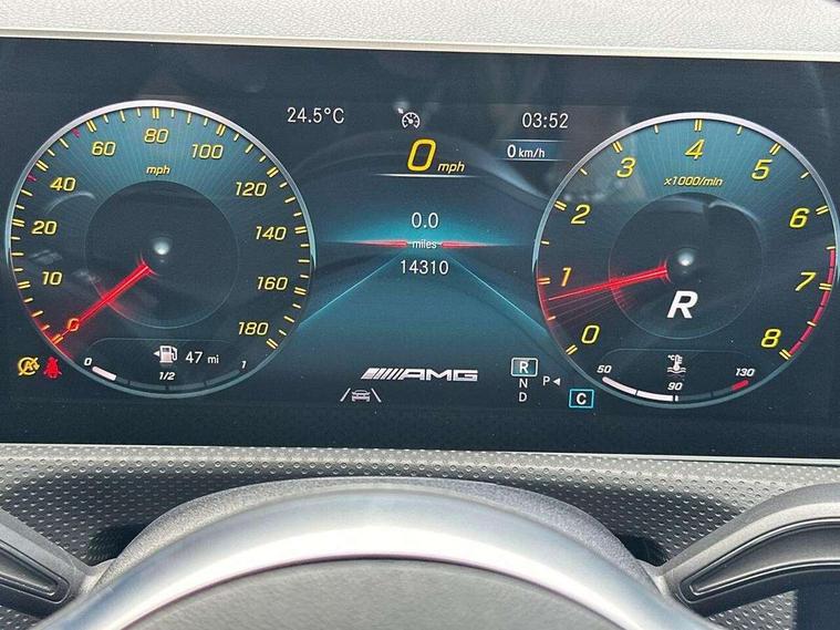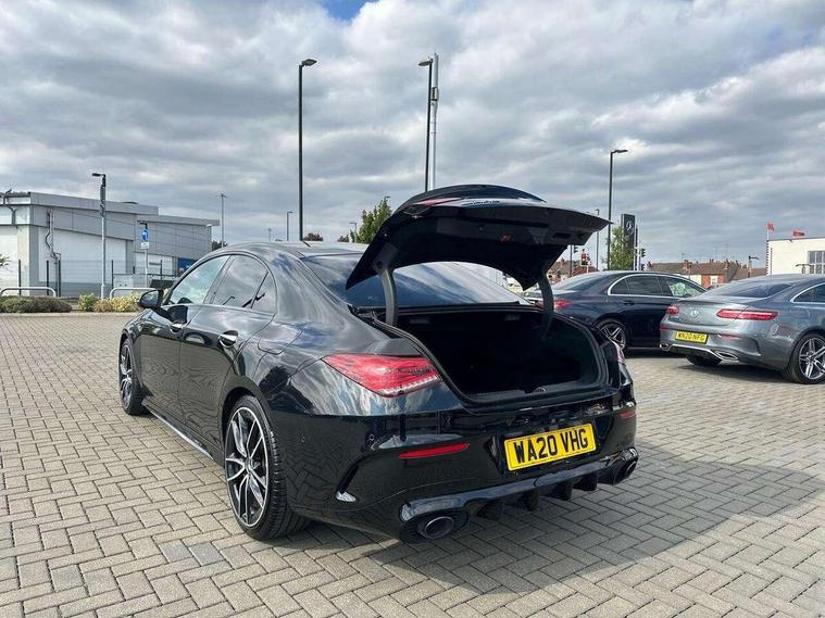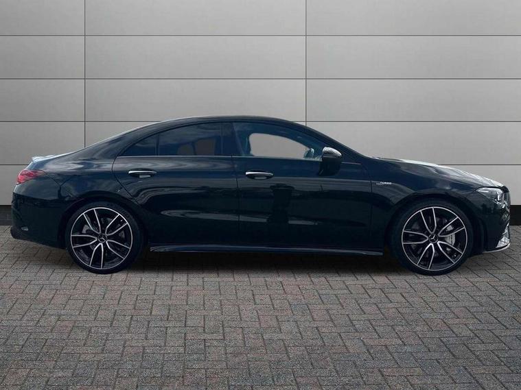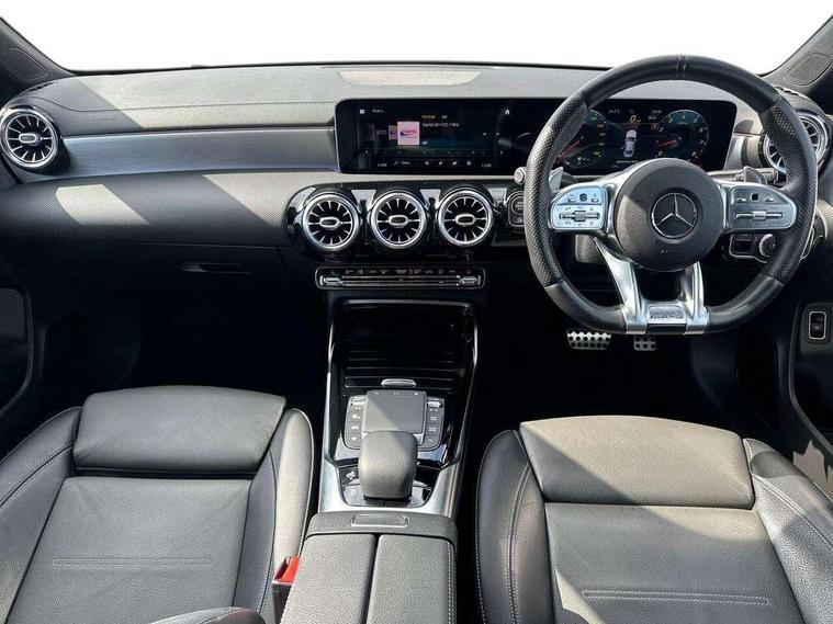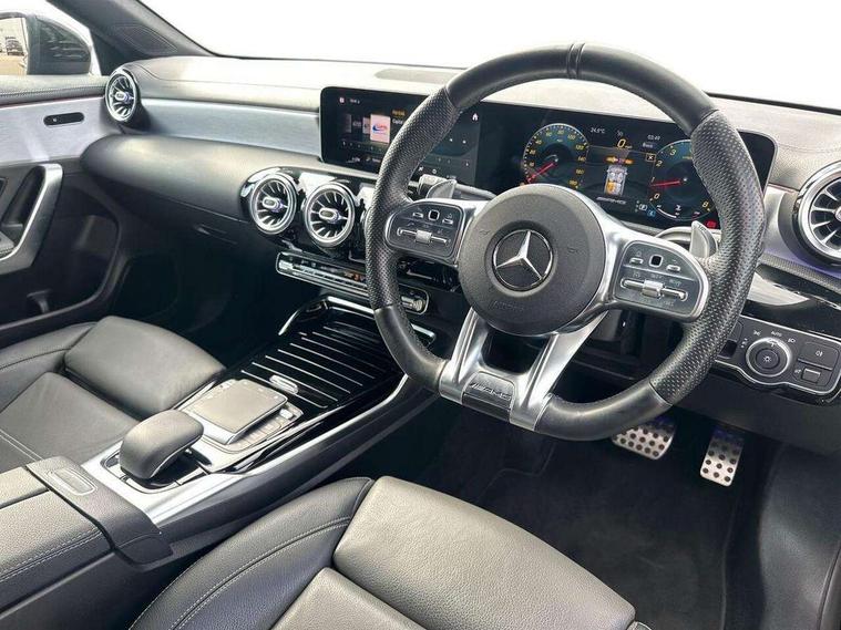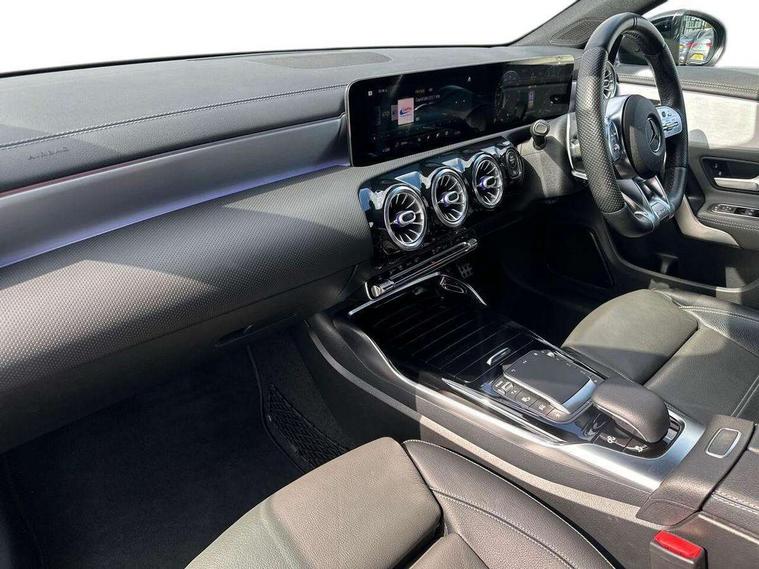 10.25 inch Instrument display with digital cockpit, 10.25 inch touchscreen central media display, Active lane keeping assist, Attention assist - Monitors steering behaviour and long journey fatigue, Bluetooth connection, Car wash mode, Cruise control with limiter, Digital instrument cluster with three AMG display styles and AMG menu, Direct steer system with speed sensitive power steering, DYNAMIC SELECT with driving programs (Slippery, Comfort, Sport, Sport+ and Individual), ECO start/stop function, Fluid level warning indicator for fuel, oil, coolant and washer fluid, Hard-disk navigation, Hey Mercedes Voice activation, Lamp failure indicator, MBUX augmented reality for navigation, Mercedes me connect including emergency call system, accident recovery, breakdown and maintenance management, Outside temperature gauge, Owners manual and service booklet in English, Pre-installation for Vehicle Monitoring, Pre-installation for Vehicle Setup, Pre-installation of private car share, Preinstallation for Mercedes Benz link, Radio aerial integrated into front and rear windshields, Service indicator (ASSYST), Smartphone integration with Apple CarPlay and Android auto, Speed limit assist, Trip computer in multifunction display with current consumption indicator, Wireless charging, 7G-DCT 7 speed automatic transmission, AMG suspension, Rear axle multi-link, DAB digital radio tuner, MBUX multimedia system with DAB digital radio and touchpad including satellite navigation, Mercedes Benz advanced sound system (225 W) with 10 speakers, 1 central speaker, speakers on doors, a tweeter on door, one sub woofer + boost amplifier, USB (type C) ports (2) in stowage compartment and 1 in front of centre console, Adaptive brake lights, AMG body styling with AMG front apron and rear apron and visible exhaust tailpipe in chrome trim elements, AMG bodystyling side skirts, AMG Front apron with flics as air deflector elements on the outer air intakes, AMG radiator grille with twin blade lamella and AMG Lettering, AMG Rear apron with specific diffuser look with four vertical fins and two round chrome plated tailpipe trim elements with a diameter of 90 mm, AMG Sports exhaust system with two round tailpipes measuring 90 mm in diameter attached in rear apron, AMG lettering plus ribbing on the inside of the, Automatically controlled exhaust flap, Beltline strips in High gloss Black, Body colour bumpers, Body colour door handles, Chrome weather strip, Electric windows, Electrically adjustable and heated door mirrors with integrated LED indicators, Front splitter and trim elements on the louvres in the outer air inlets in silver chrome, Front wings with TURBO 4MATIC lettering, Headlamp assist automatic headlamp activation, Heated glass rear windscreen + timer control, High level LED third brake light, Interior mirror with black reading lamps and frameless, LED high performance headlamps with integrated LED daytime running lights, LED tail lamp, Privacy glass with dark tinting on rear side windows and rear window, Rain sensing windscreen wipers with two sensitivity settings, Rear fog lamp, Window line trim strip in high gloss black, 40:20:40 split folding rear seat backrests, Air conditioning - Two zone thermotronic luxury automatic climate control with display, Air vents with surround in silver chrome, AMG Performance steering wheel in nappa leather, Automatic child seat recognition sensor, Black roof lining, Brushed stainless steel sports pedals with rubber studs, Floor mats with stitched AMG lettering, Front centre armrest with stowage, Heated front seats, Illuminated glove compartment stowage, Illuminated Mercedes benz door sills with Mercedes Benz lettering, Interior lighting - 64 colour Ambient lighting, Luggage net on driver/front passenger seat backrest, Manually adjustable front seats, Manually height and reach adjustable steering column, Rear armrest with two integral cup holders for drinks, Rear head restraints, Silver coloured aluminium gear shift paddles on steering wheel, Sport seats with fixed head restraints, Stowage compartment in centre console with retractable cover, Sunvisors with illuminated vanity mirrors, Touchpad on center console, Twin front cupholders, Two outer rear seat isofix and top tether child seat fixing points, AMG Night package - CLA 35/45, Keyless go pack - CLA, Light and sight pack - CLA, Mirror pack - CLA, Parking package - CLA, Seat comfort pack - CLA, Active bonnet pedestrain safety measure which detects an impact and raises bonnet by 65mm, Active brake assist includes forward collision warning system with autonomous braking, Adaptive brake assist with hold function and hill start assist, Anti-lock braking system (ABS), Black seat belts, Bonnet with power domes, Brake pad wear warning indicator, Childproof locks manually operated for rear doors and electrically operated for rear power windows, Crash responsive emergency lighting, Driver and front passenger head and sidebags, Driver and front passenger windowbags, Drivers knee airbag, Dual stage driver and front passenger airbags, Electric parking brake, Electronic stability programme with acceleration skid control, ESP curve dynamic assist, Front and rear seatbelt reminder, Front brake calipers with AMG lettering, Front passenger seat occupancy sensor, Perforated front brake discs, Three point rear seat belts, Tyre pressure monitoring system, Warning triangle and first aid kit, Remote central locking and crash sensor with emergency opening function, Urban guard vehicle protection system with immobiliser and interior protection, Light aluminium with longitudinal grain interior trim, 19" AMG multi-spoke high gloss black painted light alloy wheels with high sheen finish, Summer tyres, Tirefit tyre sealant kit, Wheel arches wider for AMG wheels,