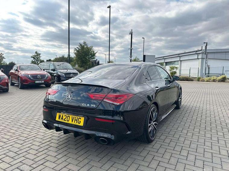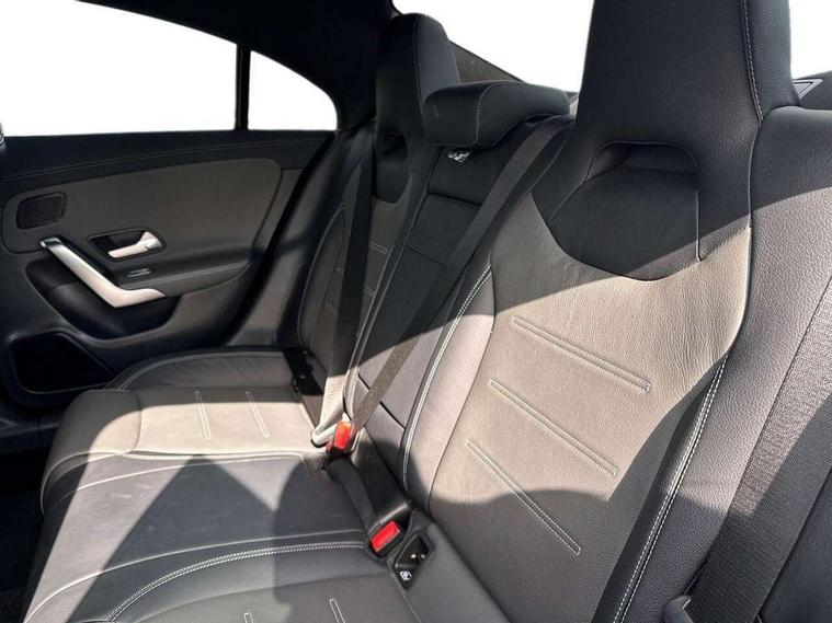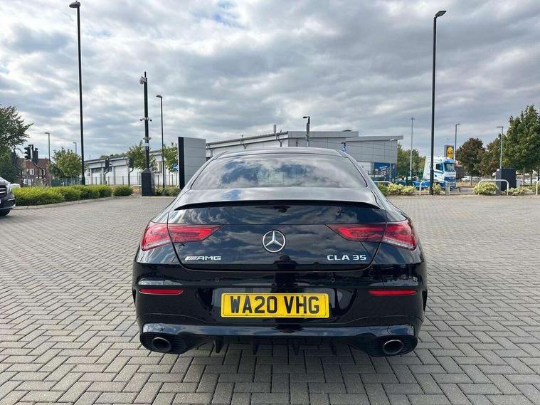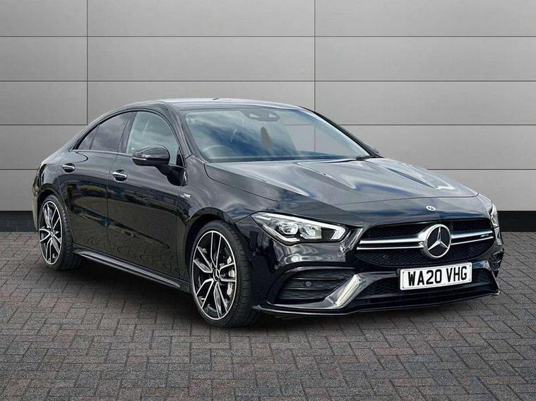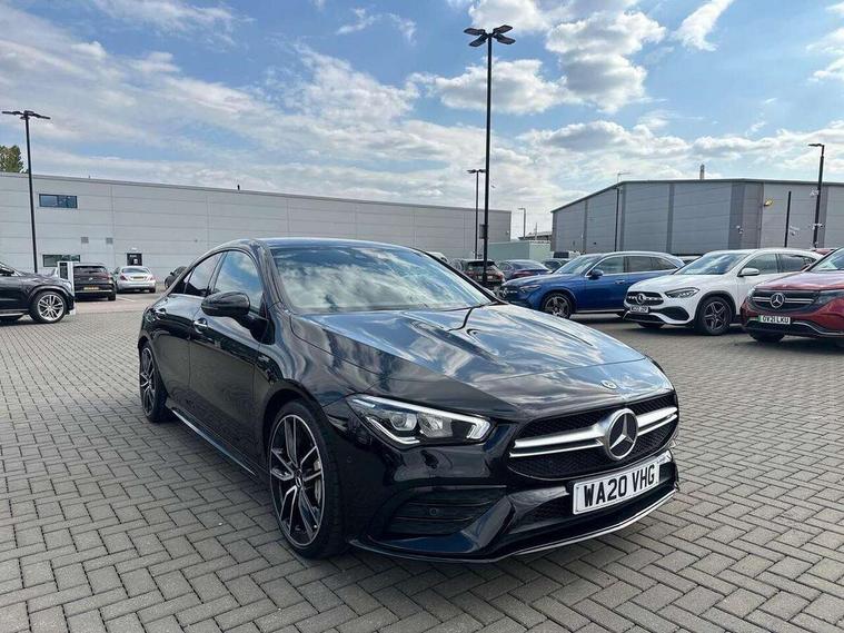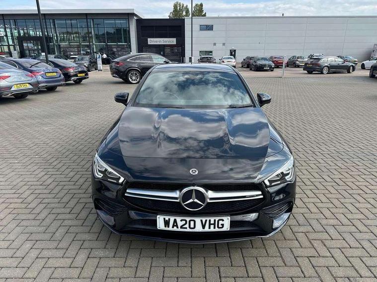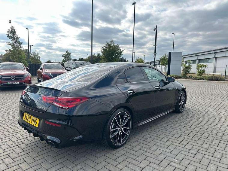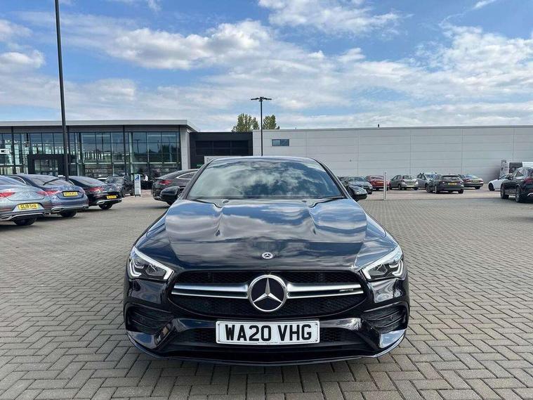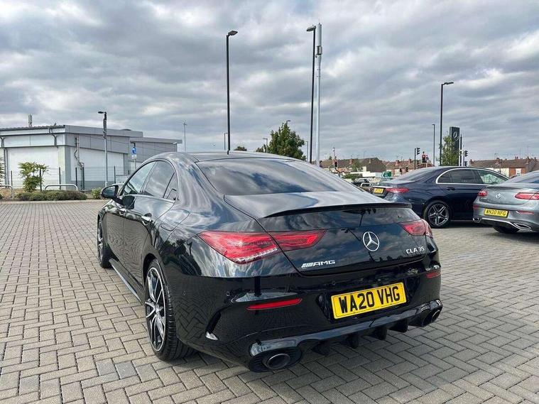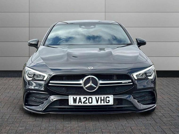 10.25 inch Instrument display with digital cockpit, 10.25 inch touchscreen central media display, Active lane keeping assist, Attention assist - Monitors steering behaviour and long journey fatigue, Bluetooth connection, Car wash mode, Cruise control with limiter, Digital instrument cluster with three AMG display styles and AMG menu, Direct steer system with speed sensitive power steering, DYNAMIC SELECT with driving programs (Slippery, Comfort, Sport, Sport+ and Individual), ECO start/stop function, Fluid level warning indicator for fuel, oil, coolant and washer fluid, Hard-disk navigation, Hey Mercedes Voice activation, Lamp failure indicator, MBUX augmented reality for navigation, Mercedes me connect including emergency call system, accident recovery, breakdown and maintenance management, Outside temperature gauge, Owners manual and service booklet in English, Pre-installation for Vehicle Monitoring, Pre-installation for Vehicle Setup, Pre-installation of private car share, Preinstallation for Mercedes Benz link, Radio aerial integrated into front and rear windshields, Service indicator (ASSYST), Smartphone integration with Apple CarPlay and Android auto, Speed limit assist, Trip computer in multifunction display with current consumption indicator, Wireless charging, 7G-DCT 7 speed automatic transmission, AMG suspension, Rear axle multi-link, DAB digital radio tuner, MBUX multimedia system with DAB digital radio and touchpad including satellite navigation, Mercedes Benz advanced sound system (225 W) with 10 speakers, 1 central speaker, speakers on doors, a tweeter on door, one sub woofer + boost amplifier, USB (type C) ports (2) in stowage compartment and 1 in front of centre console, Adaptive brake lights, AMG body styling with AMG front apron and rear apron and visible exhaust tailpipe in chrome trim elements, AMG bodystyling side skirts, AMG Front apron with flics as air deflector elements on the outer air intakes, AMG radiator grille with twin blade lamella and AMG Lettering, AMG Rear apron with specific diffuser look with four vertical fins and two round chrome plated tailpipe trim elements with a diameter of 90 mm, AMG Sports exhaust system with two round tailpipes measuring 90 mm in diameter attached in rear apron, AMG lettering plus ribbing on the inside of the, Automatically controlled exhaust flap, Beltline strips in High gloss Black, Body colour bumpers, Body colour door handles, Chrome weather strip, Electric windows, Electrically adjustable and heated door mirrors with integrated LED indicators, Front splitter and trim elements on the louvres in the outer air inlets in silver chrome, Front wings with TURBO 4MATIC lettering, Headlamp assist automatic headlamp activation, Heated glass rear windscreen + timer control, High level LED third brake light, Interior mirror with black reading lamps and frameless, LED high performance headlamps with integrated LED daytime running lights, LED tail lamp, Privacy glass with dark tinting on rear side windows and rear window, Rain sensing windscreen wipers with two sensitivity settings, Rear fog lamp, Window line trim strip in high gloss black, 40:20:40 split folding rear seat backrests, Air conditioning - Two zone thermotronic luxury automatic climate control with display, Air vents with surround in silver chrome, AMG Performance steering wheel in nappa leather, Automatic child seat recognition sensor, Black roof lining, Brushed stainless steel sports pedals with rubber studs, Floor mats with stitched AMG lettering, Front centre armrest with stowage, Heated front seats, Illuminated glove compartment stowage, Illuminated Mercedes benz door sills with Mercedes Benz lettering, Interior lighting - 64 colour Ambient lighting, Luggage net on driver/front passenger seat backrest, Manually adjustable front seats, Manually height and reach adjustable steering column, Rear armrest with two integral cup holders for drinks, Rear head restraints, Silver coloured aluminium gear shift paddles on steering wheel, Sport seats with fixed head restraints, Stowage compartment in centre console with retractable cover, Sunvisors with illuminated vanity mirrors, Touchpad on center console, Twin front cupholders, Two outer rear seat isofix and top tether child seat fixing points, AMG Night package - CLA 35/45, Keyless go pack - CLA, Light and sight pack - CLA, Mirror pack - CLA, Parking package - CLA, Seat comfort pack - CLA, Active bonnet pedestrain safety measure which detects an impact and raises bonnet by 65mm, Active brake assist includes forward collision warning system with autonomous braking, Adaptive brake assist with hold function and hill start assist, Anti-lock braking system (ABS), Black seat belts, Bonnet with power domes, Brake pad wear warning indicator, Childproof locks manually operated for rear doors and electrically operated for rear power windows, Crash responsive emergency lighting, Driver and front passenger head and sidebags, Driver and front passenger windowbags, Drivers knee airbag, Dual stage driver and front passenger airbags, Electric parking brake, Electronic stability programme with acceleration skid control, ESP curve dynamic assist, Front and rear seatbelt reminder, Front brake calipers with AMG lettering, Front passenger seat occupancy sensor, Perforated front brake discs, Three point rear seat belts, Tyre pressure monitoring system, Warning triangle and first aid kit, Remote central locking and crash sensor with emergency opening function, Urban guard vehicle protection system with immobiliser and interior protection, Light aluminium with longitudinal grain interior trim, 19" AMG multi-spoke high gloss black painted light alloy wheels with high sheen finish, Summer tyres, Tirefit tyre sealant kit, Wheel arches wider for AMG wheels,