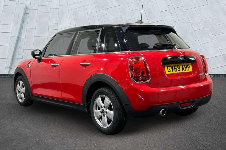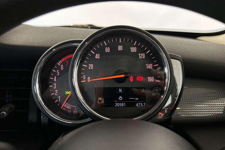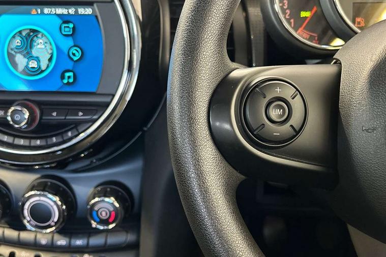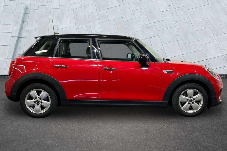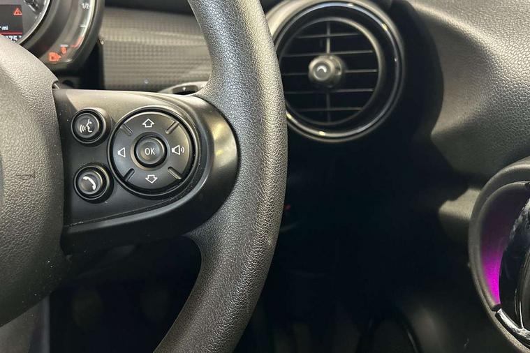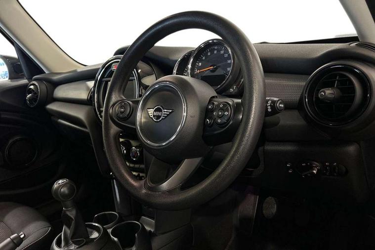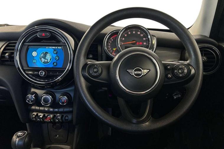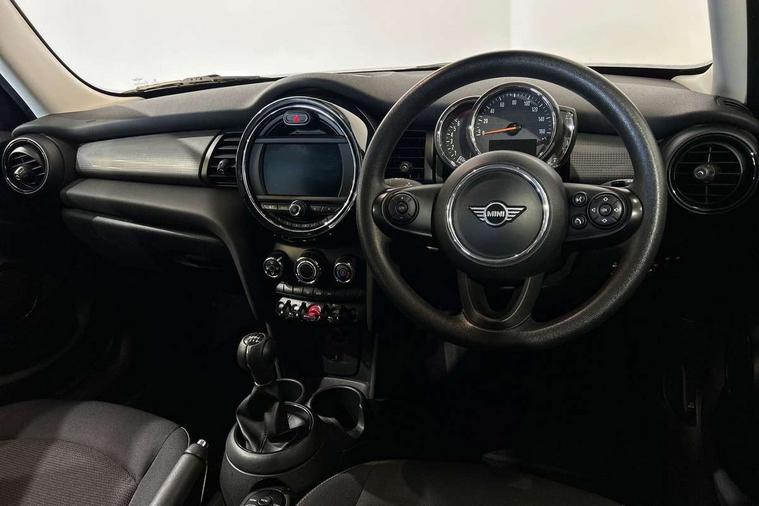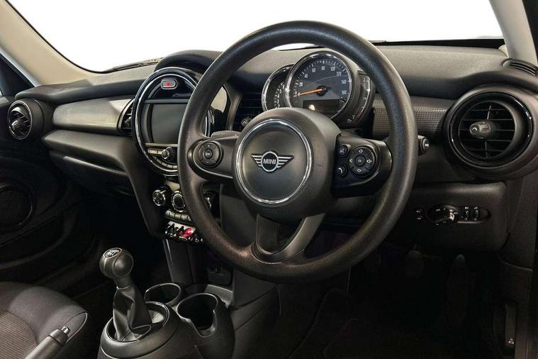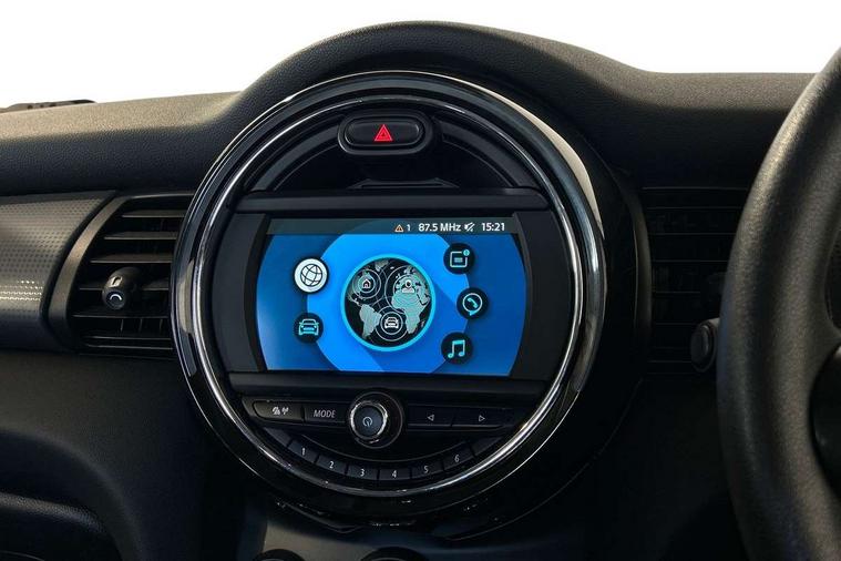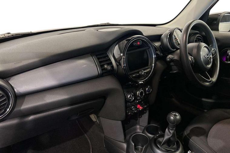 Automatic start/stop function with brake energy recuperation, Compatible mobile phone bluetooth with audio streaming, Electro-mechanical speed dependant steering assistance, Instrument cluster, Mini E-call, MINI TeleServices, On board computer, Service interval indicator, Double Vanos system, Fully variable valve control, High precision injection, 6.5" touchscreen with LED ring, FM tuner and DAB digital radio, Automatic headlight activation switch, Body colour fuel filler cap, Chrome border high gloss black slats radiator grille, Dynamic brake lights, Electric front+rear windows, Heated rear window, Heated windscreen washer jets, LED headlight with closed ring and daytime driving lights, Left exhaust tailpipe with chrome finisher, Metal door sill strips with MINI imprint, Model logo Cooper on right of tailgate, Rain sensor window wipers, Rear fog lights, Rear LED lights with union jack design, Rear window wiper, Side scuttle panel with integrated indicator, Sun/heat protection glass, White indicator lenses, 12V Accessory socket in centre console, 4 lashing eyes in luggage compartment, 60/40 split folding rear seat, Chrome interior highlights, Colour line - Carbon black, Cupholders, Front and rear head restraints, Front and rear isofix with front passenger airbag deactivation, Glove compartment, Height and length steering column adjustment, Interior lighting with 12 basic colours selectable via toggle switch in roof, Leather gearshift lever and handbrake gaiters, LED reading lights, vanity mirror lights, front foot well light and spotlight on front seats, Manual air conditioning, Mechanical seat adjustment, driver seat height adjust, forward/back and front seats backrest, Mini logo projection on floor from drivers exterior mirror, Multifunction steering wheel, Satellite grey headlining, Storage compartments in doors, Sunvisors with vanity mirrors, 3 point seatbelts on all five seats, 6 Airbags - front, side, head and seat belt tensioners, Anti-lock braking system (ABS), DSC - Dynamic Stability Control, Front and rear disc brakes, Hill start assist, Single tone fanfare horn, Tyre pressure monitoring system, Alarm system with tilt sensor, monitoring doors, bonnet interior and tailgate, Electronic vehicle immobiliser, Start/stop toggle with keyless go, Tool kit,