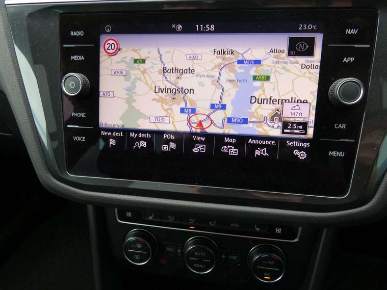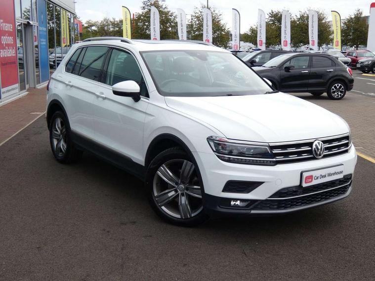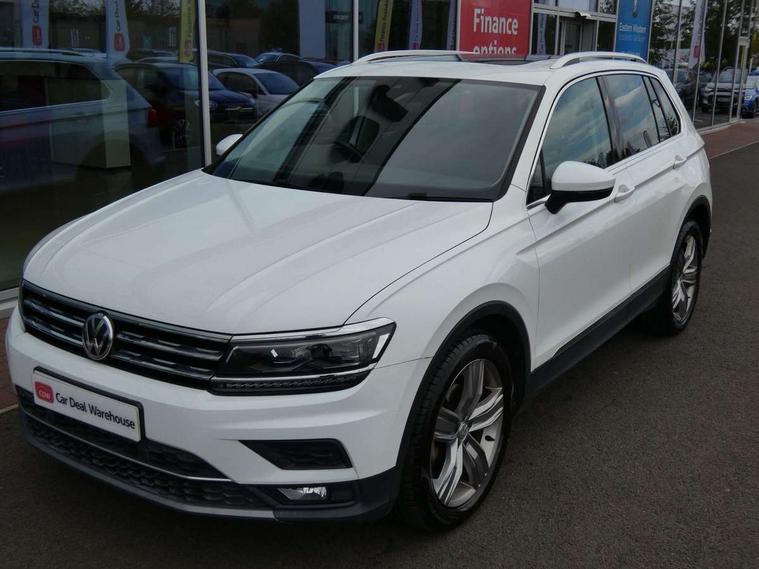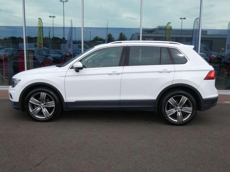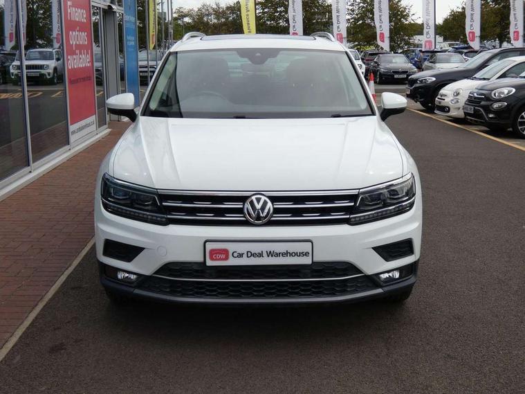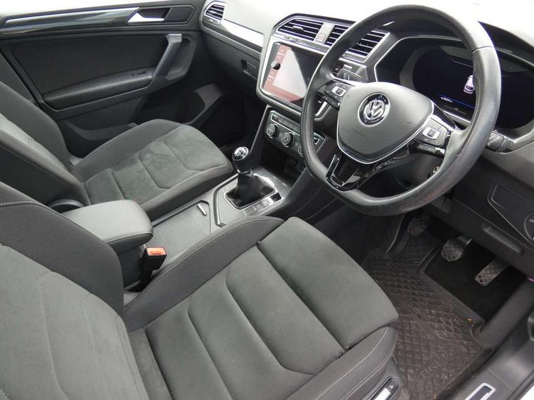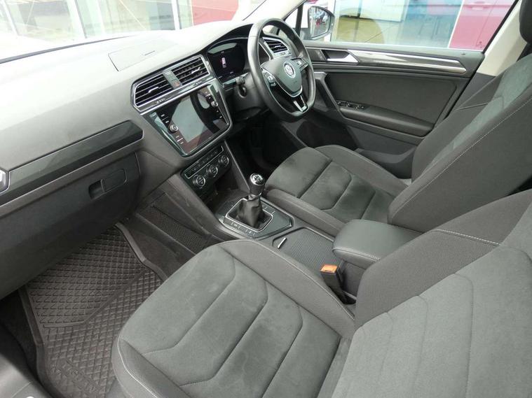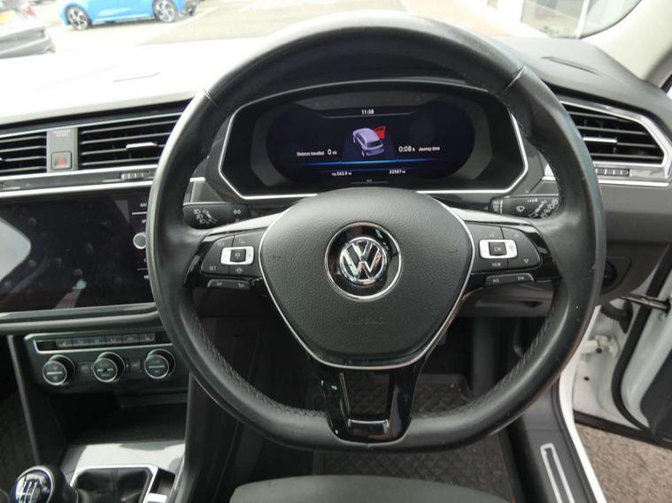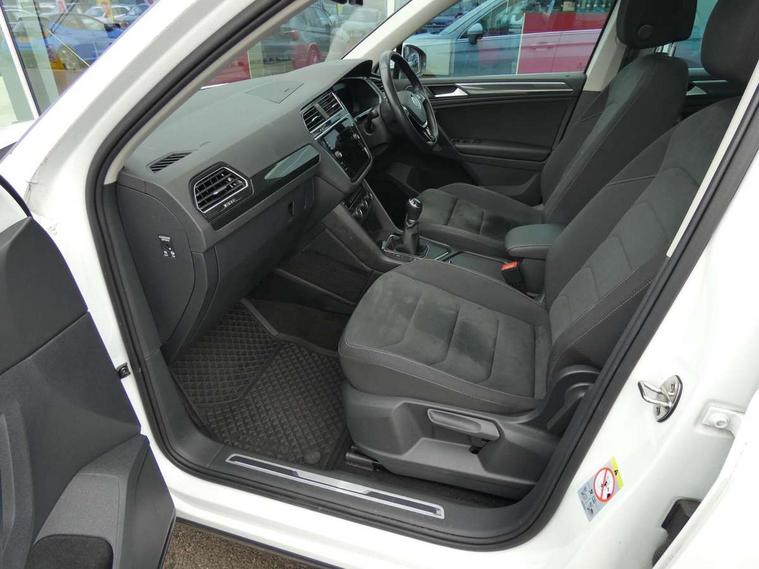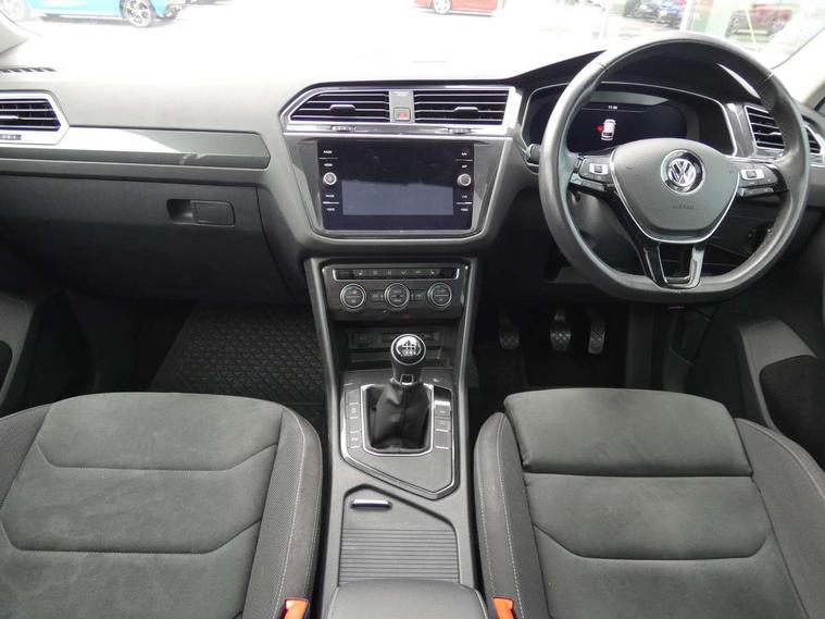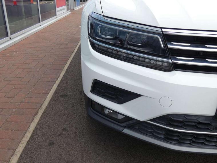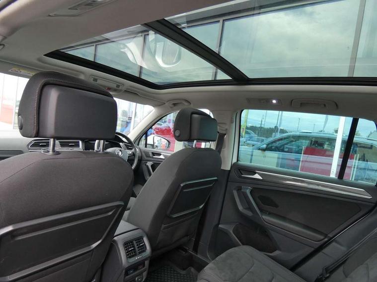 Active information display, Adaptive cruise control, App-Connect, Bluetooth phone integration system, Car-Net Security and Service, Distance control assist, Driver profile selection, Fatigue detection system, Front assist, radar sensor controlled distance monitor, city emergency braking + predictive pedestrian protection, Instrument cluster, Lane assist, Low washer fluid warning light, Multifunction colour display, Outside temperature display, Service interval indicator, Speed limiter, Start/Stop function, Warning lights, Diesel particulate filter, Misfuel prevention device for diesel engine, XDS electronic differential lock, 2x USB sockets in front, 4 X 20 watt output, DAB Digital radio, MP3 compatible single CD player, SD card slot, Simultaneous pairing of 2 compatible mobile devices, SMS functionality - read, compose and send SMS messages using touch-screen display, Title and cover art display, 3D effect cherry red LED rear tail lights, Auto dimming interior mirror, Automatic activation of hazard warning lights, Black door protector with chrome inserts, Body colour door handles, Body colour door mirrors, Body coloured bumpers, Chrome side body trim, Chrome side window surrounds, Chrome trimmed radiator grille, Coming/leaving home lighting function, Dusk sensor + auto driving lights, Electric folding door mirrors, Electric heated + adjustable door mirrors, Electric panoramic sunroof with sunblind, Front air intake with chrome strip, Front and rear electric windows, Halogen clear headlights with integrated indicators and range adjustable, Heated rear window, High level 3rd brake light, LED headlights with dynamic light assist daytime running lights and cornering front fog lights, LED rear number plate lights, Rain sensor windscreen wipers, Rear windscreen washer and wiper with interval delay, Side door sills with chrome inserts, Side skirts and rear bumper with chrome insert, Silver rear diffuser trim, Silver roof rails, Silver under body guard, Tinted windows (B pillar backwards), Windscreen wipers/ intermittent wipe + 4 position delay, 12V Accessory socket in centre console, 3 rear headrests, 3 zone climate control, 4 load lashing points, 40:20:40 split folding rear seats, Bag hook in luggage compartment, Driver + front passenger lumbar support, Foldable passenger seatback, Front + rear carpet mats, Front centre armrest with 12v socket, Front centre armrest with storage + rear 2 air vents + cupholders, Front seat back storage pockets, Front seatback folding tables, Height/reach adjust steering wheel, Illuminated driver/passenger vanity mirrors, Illuminated scuff plates, Instrument lighting white adjustable panel illumination, Interior light with delay, Isofix Preparation 2 Rear child seats, Leather gear knob, Load through provision with 2 cupholders when folded, Lockable cooled glovebox, Luggage compartment lighting, Luggage compartment side storage, Map pockets on front seats, Passenger seat height adjuster, Passenger underseat drawer, Rear cupholders, Removable luggage cover, Sliding/reclining rear seats, Storage compartment in driver's door, Storage compartment in passenger's door, Storage compartment in rear doors, Storage tray on dashboard, Sunglasses storage, Variable boot floor, Ambient lighting pack - Tiguan, Winter pack - Tiguan/Tiguan Allspace, 3 rear 3 point seatbelts, ABS+EBD+Brake assist, Active bonnet, Active pedestrian safety system, Curtain airbags, Driver/Front Passenger airbags, Driver/Passenger whiplash optimised head restraints, Drivers knee airbag, DTC - Drag torque control, Electronic parking brake with auto hold, ESP with EDL + ASR, First aid kit, Front side airbags, Front ventilated disc brakes and rear disc brakes, Head airbag system, Height adjustable front 3 point seatbelts + pretensioners, Hill hold control, Passenger airbag deactivate switch, Passenger knee airbag, Proactive preventive occupant protection, Rear side airbags, Rigid safety cell with front and rear crumple zones, Seatbelt warning lamp and buzzer, Two tone horn, Warning triangle, Alarm with interior protection, Electronic engine immobiliser, Remote central locking with 2 remote folding keys, Chrome door trim inserts, Piano black interior trim, Steel space saver spare wheel,