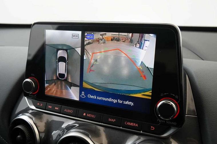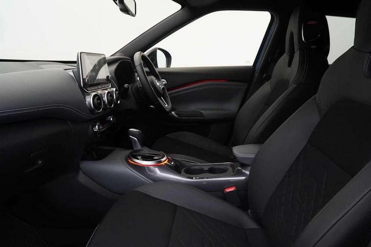 7" full colour TFT screen combimeter, Apple CarPlay and Google Android auto, Drive modes select (Eco, normal and sport), Emergency and breakdown call, Front parking sensor, Idle start/stop system, Intelligent lane intervention, Lane departure warning system, Nissan connect 8" touch screen entertainment system, Nissan connect nav with TomTom traffic, Nissan connect services and Wifi connection, Outside temperature sensor, Power Steering, Rear parking sensor, Traffic sign recognition, Trip computer, Voice recognition, Gasoline particulate filter, 10 Bose speakers 6 speakers and 2 headrest speakers for driver/passenger seats, Bluetooth system, USB, Aux-in and 12V socket, Bose personal sound stage control, DAB Digital radio, Rear console USB port, Auto dimming interior rear view mirror, Auto headlights, Automatic hazard signal with emergency stop signal, Body colour bumpers, Body colour door handles, Electrically adjustable door mirrors with integrated indicators, Follow me home headlights, Front and rear electric window with one touch driver window, Heated and auto folding door mirrors, High beam assist, LED daytime running lights, LED front fog lights, LED headlamps, LED rear fog lamp, LED rear lamps, Rain sensor windscreen wipers, Rear privacy glass, Rear side wing doors, Rear wiper, Thermaclear heated windscreen, Three blink turn signal, 3 height adjustable rear headrests, 3 seat bench in 2nd row, 60/40 split folding rear seat, Automatic climate control, Card holder on driver sunvisor, Door ambient lighting, Driver and passenger sliding and reclining seats, Driver seat back pocket, Driver side rear coat hanger, Driver/passenger sunvisors and vanity mirrors, Front and rear cabin lights, Front armrest, Front door pockets with bottle holders, Front head restraints, Front passenger isofix child seat anchorage point, Front/rear passenger grab handles, Gear console ambient circle lighting, Grey synthetic leather kneepad, Heated front seats, Height adjustable driver's seat, Height adjustable passenger seat, Internal chrome door handles, Leather gearshift knob, Leather steering wheel, Luggage board, Luggage space lighting, Monoform sporty seats, Multifunction steering wheel, Passenger seat back pocket, Rear door bottle holders, Single front passenger seat, Steering wheel mounted gearshift paddles, Synthetic leather upholstery, Telescopic steering wheel adjustment, Two cupholders in front centre console, Two rear isofix child seat anchorage points with top tether, Welcome light and console tray ambient lighting, ProPilot pack - Juke, ABS with EBD and brake assist, Active ride control, Active Trace Control, Driver and passenger airbags, Driver and passenger side airbags, Electric handbrake with auto hold function, Electronic Stability Programme (ESP), Front and rear curtain airbags, Height adjustable seatbelts, Hill start assist, Intelligent emergency braking with pedestrian and cyclist recognition, Rear door child safety locks, Seatbelt reminder for driver/front passenger and rear seats, Single tone horn, Three 3 point rear seatbelts, Traction control, Tyre pressure monitoring system, VDC Dynamic Vehicle Control, Ventilated rear brake discs, Alarm, Immobiliser, Intelligent key and start push button with walk away lock and approach unlock functions, Remote central locking,