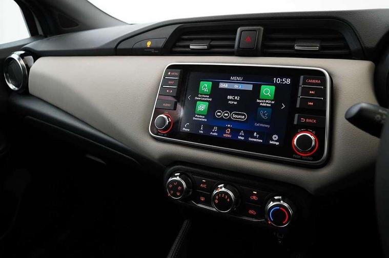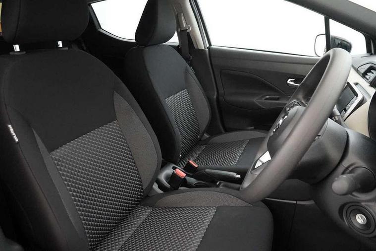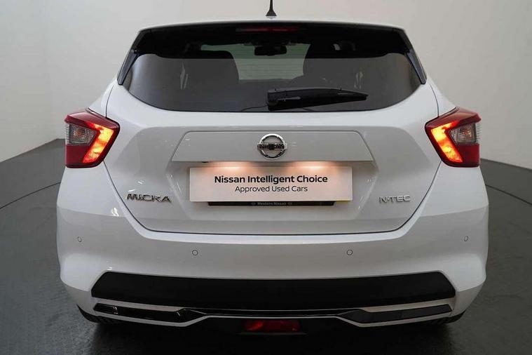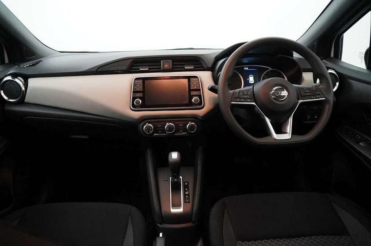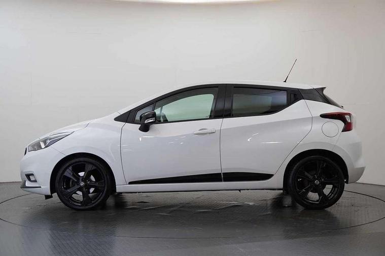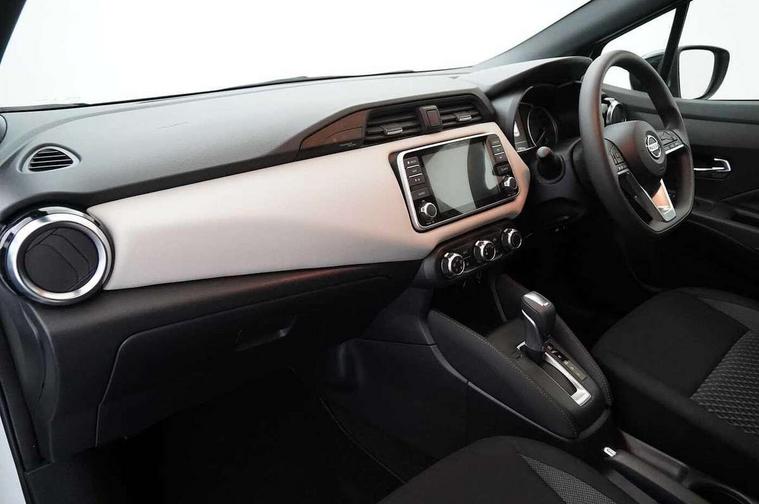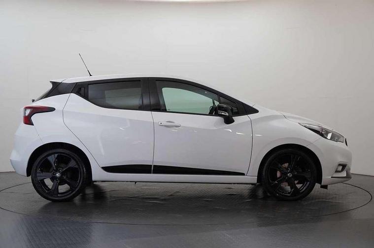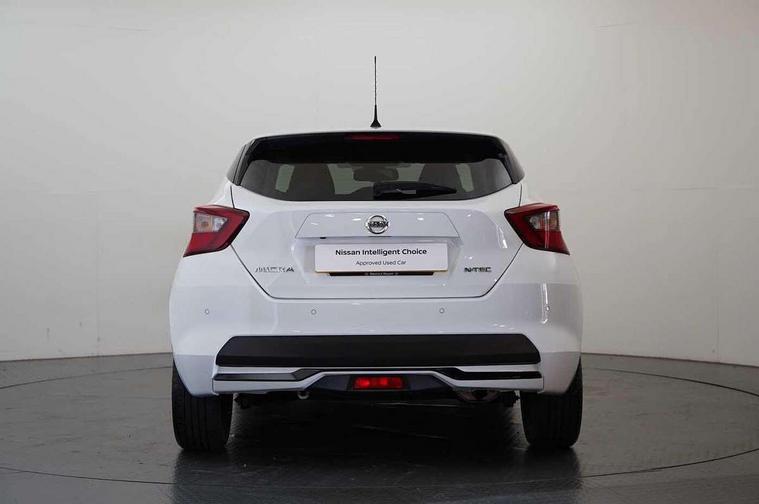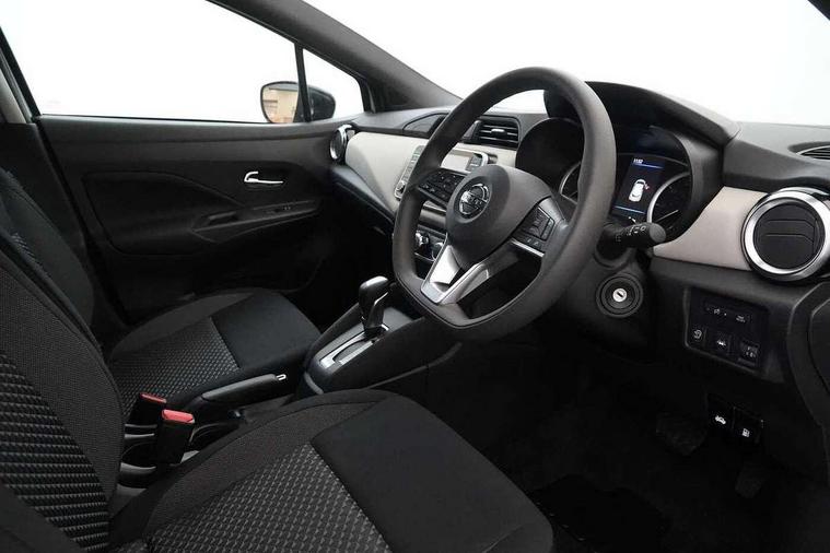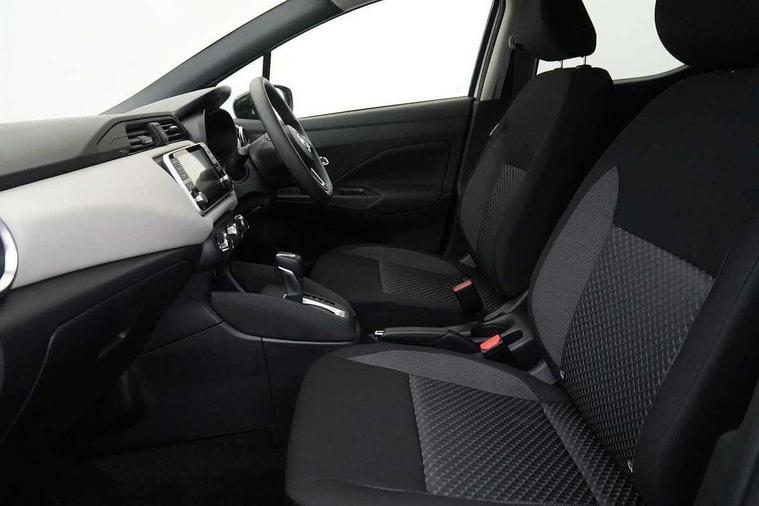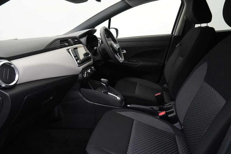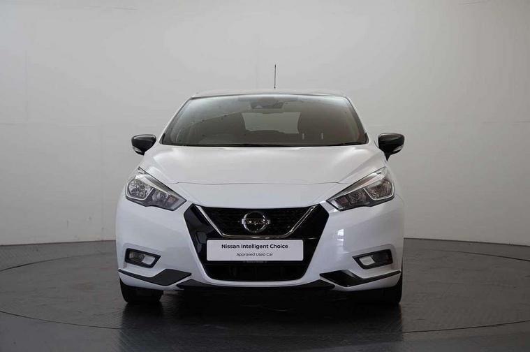 Adjustable speed limiter, Advanced drive assist display 5'' TFT coloured screen, Bluetooth system, Cruise control, Lane departure prevention, Lane departure warning system, Nissan Connect touchscreen navigation and Entertainment system, Outside temperature gauge, Power assist steering, Rear parking sensors and rear view camera, Service interval indicator, Smartphone integration with Apple CarPlay and Android auto, Stop/start system, Tomtom connected services, Traffic sign recognition, Trip computer, 4 speakers, Audio system with MP3, Aux-in socket, DAB Digital radio, Steering wheel mounted audio controls, USB/iPod connection, 4 pocket halogen headlights with signature finisher, Antenna, Automatic activation of hazard warning lights, Automatic headlights with dusk sensor, Body colour front door handles, Concealed rear door handles, Door mirror integrated indicators, Electrically adjustable door mirrors, Front fog lights, High beam assist, High mounted stop lamp, Jacknife key type x1, LED signature daytime running lights, N-Tec badge, Power front windows, Rain sensor windscreen wipers, Rear privacy glass, Rear roof spoiler, Rear wiper, Rear wiper with reverse link, 12V power point front, 2 height adjustable rear headrests, 3 cupholders, 60/40 split folding rear seat, Boot compartment cover, Boot light, Casual cloth upholstery, Chrome interior door handles, Driver's seat manual height adjust, Driver/passenger sunvisors and vanity mirrors, Front and rear door pockets with bottle holders, Front console storage box, Gear shift indicator, Grey PVC front door pads, Height adjustable front headrests with satin sliver decoration, Height adjustable steering wheel, Illuminated electric window switch, Isofix front passenger and rear seat preparation, Luggage compartment lighting, Manual air conditioning, Map reading lamp, Parcel shelf, Passenger seat back pocket, Reclining front seats, Satin silver accents on steering wheel, Satin silver air vents, Satin silver decoration on gear knob, Soft knee pad with stitching, Soft touch upper IP with grey PC Insert, Tilt/telescopic adjustable steering wheel, Gloss black personalisation exterior pack - Micra, ABS+EBD+Brake assist, Crash sensor, Driver/Front Passenger airbags, ESP + ASR traction control + CSV understeer control, Forward emergency braking, Front and rear curtain airbags, Front side airbags, Height adjustable front seatbelts with pre-tensioners and load limiters, Hill start assist, Intelligent emergency braking with pedestrian recognition, Passenger airbag deactivation system, Rear seatbelts with pre-tensioners and load limiters, Seatbelt warning, Three 3 point rear seatbelts, Tyre pressure monitoring system, Warning triangle and first aid kit, Anti-theft immobiliser, Remote central locking, 17" Black alloy wheels, Tyre repair kit,
