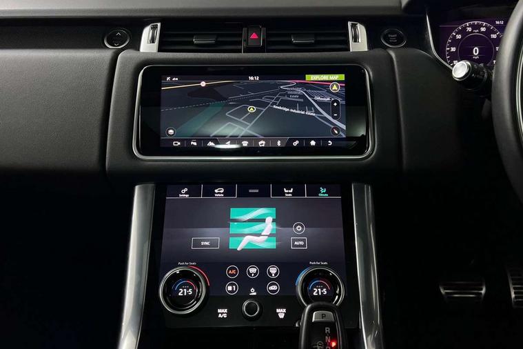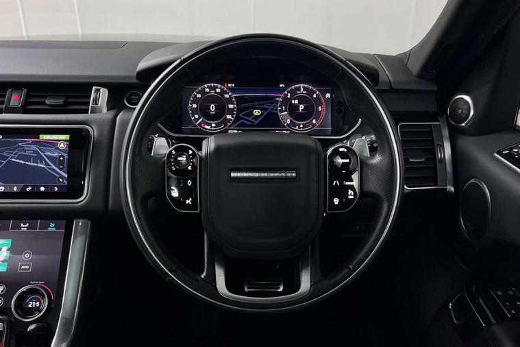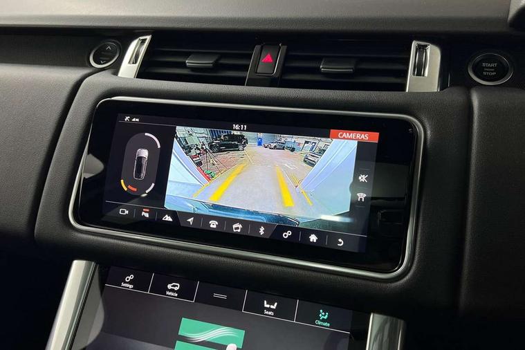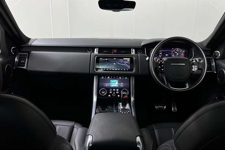 All Terrain Info Centre, Android Auto, Apple car play, Bluetooth connectivity, Electric power assisted steering (EPAS), Incontrol apps in vehicle touchscreen, Interactive Driver display instrument cluster, Mist sensor, Navigation pro system with 10" touch screen, app interface and media storage, Pro services and wifi hotspot, Push button start, Remote premium - Upgraded Incontrol remote app including remote climate control (engine dependent), remote lock + Unlock and remote beep + flash, TFT Virtual Instrument Panel, Touch pro duo system, Trip computer, Gradient release control (GRC), Bluetooth audio streaming, DAB Radio (Digital Audio Broadcasting), Incontrol protect - SOS emergency call with automatic collision detection, optimised assistance call and Incontrol remote app essential, USB/aux input socket, Acoustic front and toughened rear side glass, Acoustic laminated front windows, Adaptive brake lights, Auto dimming interior rear view mirror, Automatic headlights, Body coloured bumpers, Body coloured door mirrors, Centre high mounted stop light, Electric windows with one touch open/close and anti trap, Electrical towing preparation, Engine cover, Follow me home lighting, Front and rear recovery eyes, Front fog lights, Headlight power wash, Heated rear window, Heated windscreen includes heated washer jets, LED rear lamps, Privacy glass (Tinted glass rear of B pillar), Rain sensing windscreen wipers, Rear fog lights, Rear side wing doors, Rear wash/wipe, Remote window closing, Side repeater indicators in mirror, Sport Badge in silver, Standard bonnet, Trailer stability assist, 2 way active front head restraints, 2 way rear head restraints, 3 seat bench in 2nd row, 60/40 load through rear seats, Auto air recirculation, Bright metal foot pedals, Centre console with armrest, Climate control memory, Customer configurable single point entry, Driver's footrest, Front and rear cupholders, Front door storage space, Front map lights, Front seat back map pockets, Front stowage pocket, Front/rear passenger grab handles, Heated steering wheel, Isofix child seat preparation, Leather steering wheel with Atlas inserts, Loadspace light, Loadspace mounting provisions, Lockable glovebox, Multifunction steering wheel, Pollen filter, Power socket, Reach/rake electric adjustable steering column + entry/exit tilt away, Rear centre armrest, Rear ISOFIX, Roller blind loadspace cover, Satin chrome gearshift paddles, Single front passenger seat, Three 12V accessory power outlets, Smartphone pack - Range Rover Sport, 3 point seatbelts on all seats, Anti-lock braking system (ABS), Brake pre-fill technology, Cornering brake control (CBC), Curtain airbags, Customer configurable autolock, DSC - Dynamic Stability Control, Dual stage driver/passenger airbags, EBD - Electronic brakeforce distribution, Electric parking brake, Electronic traction control, Emergency braking includes city, urban AEB and pedestrian, Front seatbelt pretensioners, Gradient acceleration control, Grey anodised brake calipers, Height adjustable front seatbelts, Hill descent control, Hill launch assist, Low traction launch, Passenger seat occupant detector with front airbags, Power operated child locks, Roll stability control, Seatbelt warning, TPMS (Tyre pressure monitoring system), Immobiliser, Intrusion sensor, Keyless entry, Locking wheel nuts, Perimetric and volumetric anti theft alarm, Remote locking, Grand black veneer,