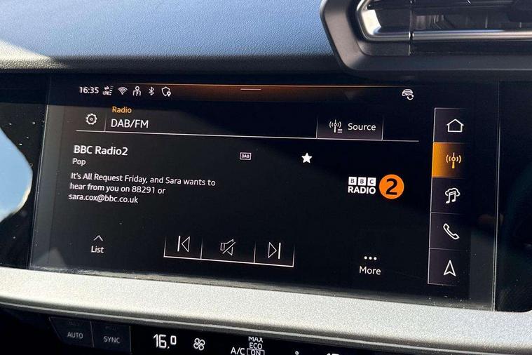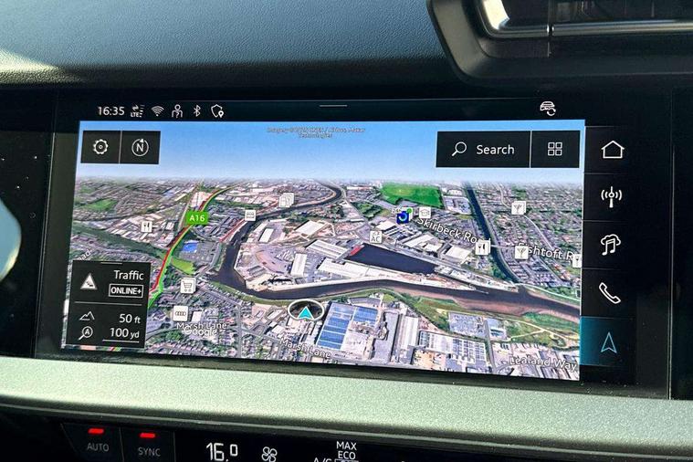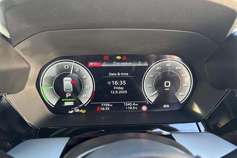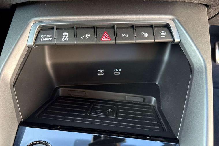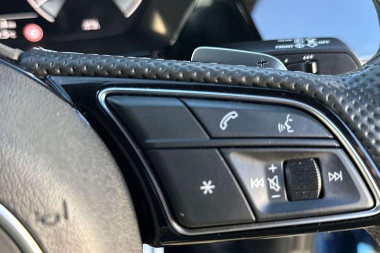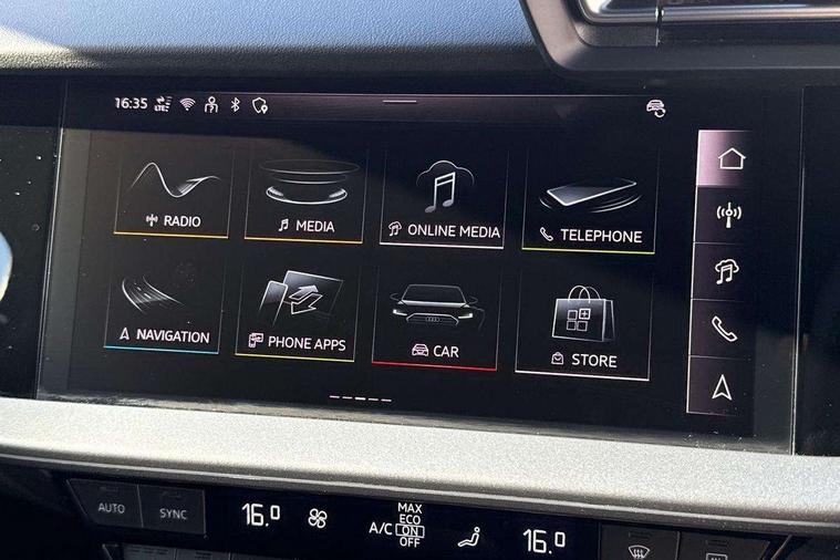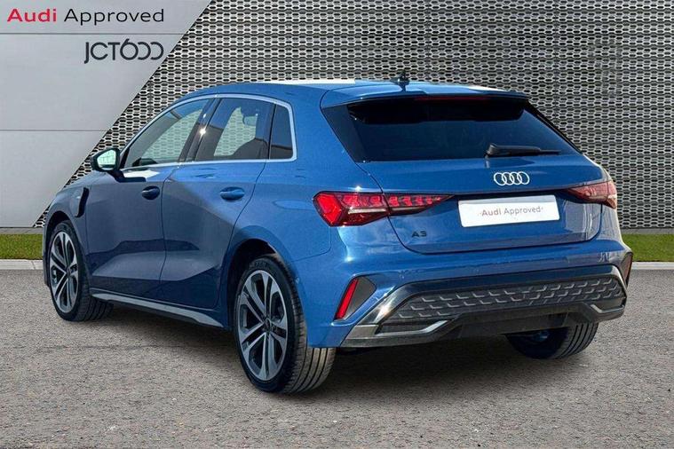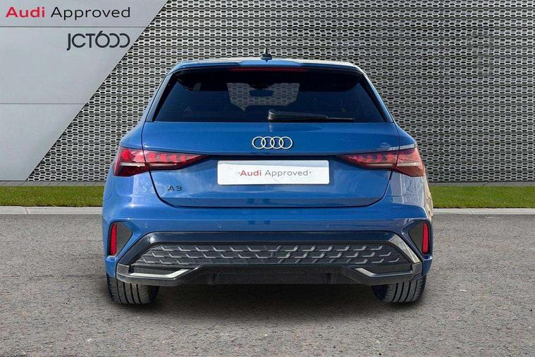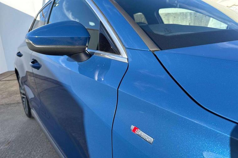 Adjustable speed limiter, Audi drive select, Audi smartphone interface with app store includes wireless Apple carplay, Android auto and Amazon alexa integration, Audi virtual cockpit plus - 12.3" full HD resolution dynamic digital instrument cluster, Automatic start/stop system with recuperation, Bluetooth interface, Camera based traffic sign recognition, Collision avoidance assistant, Cruise control, Distraction and Fatigue warning, e-Call (emergency call), Electromechanical power speed sensitive steering, Lane departure warning system, MMI Navigation Plus with high resolution 10.1" colour touch screen display, Park Assist with parking system Plus, Service indicator, Trip computer, Voice control system with natural language interaction, 3 pin 10 amp domestic charging cable, CCS socket for DC charging, Charging cable for public charging, mode 3 (type 2), up to 22 kW (AC), Compact charging system, Industrial connector CEE 32 A, 230 V, length 1.6 m, Standard suspension, Type 2 socket for AC charging, Audi Phonebox light with wireless charging, Audi sound system - 10 loudspeakers including centre loudspeaker and subwoofer, DAB Digital radio, USB ports with charging function in the rear, Acoustic glass windscreen, Aluminium window trim, Auto dimming frameless rear view mirror, Body colour exterior mirrors, Chrome exhaust tailpipes, Electrically adjustable/heated/folding/auto dimming door mirrors with integrated LED indications + kerb view function for passenger side, Exterior model badging, Front and rear side air inlets in grained matt black with dark liquid chrome frame, Front electric windows, Front radiator grill in high gloss dark chrome, Heat insulating glass windscreen, Illuminated door sills with aluminium inserts at the front with S logo, LED 3rd brake light, LED daytime running lights, LED headlights with LED rear lights and dynamic rear indicators, Light and rain sensors, Privacy glass - dark tinted rear window, rear door and side windows, Rear diffuser and grill in grained matt black with inlay in dark liquid chrome, Rear electric windows, Rear side wing doors, Rear wiper, S line bumpers, S roof spoiler, Side S line emblems on front wings, Side sill trim in dark liquid chrome, 12V socket and storage compartment in front centre console, 3 seat bench in 2nd row, 3 spoke flat bottomed leather multifunction sport steering wheel with gear shift paddles, 3-zone deluxe automatic air conditioning, 4 way electrically adjustable lumbar support for driver and front passenger, 40/20/40 split folding rear seat bench, Black cloth headlining, Convenience auxiliary air conditioning, Front and rear centre armrest in artificial leather, Front and rear centre armrest in artificial leather with contrasting stitching on armrests and instrument panel, Front and rear headrests, Front/rear floor mats, Heated front seats, Height and reach adjustable steering wheel, Manual boot compartment lid, Manually adjustable front seats, Rear cup holders, S badging on the steering wheel, Seat side bolsters, Single front passenger seat, Stainless steel pedals and front footrest in black, Twin leather upholstery with front sports seats S embossed logo, Aluminium interior elements pack - A3 Sportback, Multi-coloured LED interior lighting package - A3, 3x3 point rear seat belts, Acoustic vehicle alerting system, Driver and front passenger airbag with passenger airbag deactivation, Electronic Stabilisation Control (ESC) including ABS, ASR and EDL, First aid kit with warning triangle and 2 safety vests, Front side airbags with head airbags and interaction airbag, Hill hold assist, Pre-sense front with pedestrian and cyclist detection, Seatbelt monitoring, Tyre pressure loss indicator, Anti theft alarm, Anti-theft wheel bolts, Electronically operated child locks, Immobiliser, Remote central locking with safelock, Dash & door Inlay in dark aluminium Spectrum, Tyre repair kit,