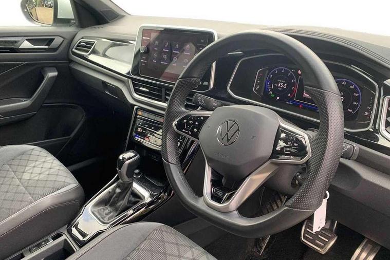 10.25" Digital cockpit pro, Bluetooth mobile phone interface, Driver alert system with fatigue detection, Driver tips and journey analysis, Emergency call service, Lane keeping system Lane Assist, Modified key software - reduce switch off time for key status change to Long no motion, Online services, Park assist including front and rear parking sensors, Service interval indicator, Tailgate/trunk lid release from outside, Think blue trainer driver tips and journey analysis, Warning sound and light for front seatbelts unfastened, Wireless app connect, Battery regeneration during braking, Start/stop function with battery regeneration, Diversity antenna for FM reception, Front and rear 6 speakers, Music playback - MP3, WMA and AAC files, Premium USB cable in choice of either Apple or Android smartphone compatibility, SD card slot, Simultaneous pairing of 2 compatible mobile devices, Title and cover art display, We Connect and We Connect Plus functionality, 3rd brake light, Auto dimming interior rear view mirror, Automatic hazard lights activation under emergency braking, Automatic headlight control with LED separate daytime running lights with coming/leaving home function, Extended roof spoiler, Exterior mirrors aspherical on driver side, convex on front passenger side, External USB type C socket and charging sockets, Front windscreen wiper with intermittent wipe and 4 position delay, Heated rear window, LED Plus headlamps, LED rear combination lamps, LED rear number plate lights, LED tail lamp rear comination lamps, Power windows with comfort operation and circuit breaker, R-Line design body coloured bumpers, Rain sensor, Rear exhaust tailpipe, Rear fog light on one side and reversing lights on both sides, Rear side wing doors, Rear wash/wipe with intermittent wipe setting, Remote electrically foldable door mirrors, puddle lights and reverse activated passenger's door mirror, 12V power socket in centre console, 3 rear head restraints, 3 seat bench in 2nd row, 4 load lashing points in luggage compartment, Air care climatronic air conditoning system with active combination filter and 2-zone temperature control, Black roof lining, Chrome plated radiator grille inserts, air vent surrounds and light switch surrounds, Door and side trim panel with leatherette insert, Drawer under drivers seat, Front + rear carpet mats, Front centre armrest, Front cupholders x 2, Front footwell illumination, Front reading light, Front scuff plates with R logo, Instrument lighting, white adjustable panel illumination, Interior ambient lighting and surround lighting, Interior light delay, Isofix child seat preparation, Leather gearshift handle, Load-through provision with cup holder when folded down ('Unsplit rear seat bench, split folding backrest, with centre armrest), Luggage compartment lighting, Single front passenger seat, Stainless steel pedals, Storage compartment in left and right luggage area, Storage compartment in rear doors, Storage compartments in driver and front passenger doors, Sunvisors with illuminated vanity mirrors, Variable boot floor, height adjustable and removable, Driver assistance pack without proactive passenger protection - T-Roc, 3 point height adj front seatbelts + pretensioners, 3 point seatbelts in outer rear with ECE label, ABS, Child locks on rear doors, Driver and front passenger airbag with front passenger airbag deactivation, Driver and front passenger safety-optimised head restraints, Drivers seatbelt reminder, Electronic parking brake, Electronic Stability Control (ESC) inc EDL (Electronic Differential Lock) and ASR (Traction Control), Front and rear passengers curtain airbag system including front side airbags, Front assist with city emergency braking and pedestrian monitoring, Front seat side impact airbags, Hill start assist, Predictive pedestrian protection, Rear disc brakes, Single tone horn, Tyre pressure loss indicator, Volkswagen roadside assistance, Alarm with interior protection, Anti-theft alarm system with interior monitoring, backup horn, and towing protection, Remote central locking with SAFELOCK, radio remote control with 2 remote control folding keys, Trims for alloy wheels,
