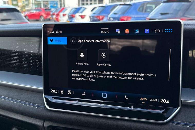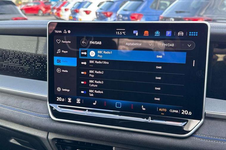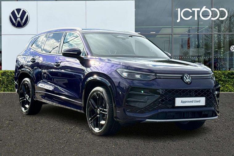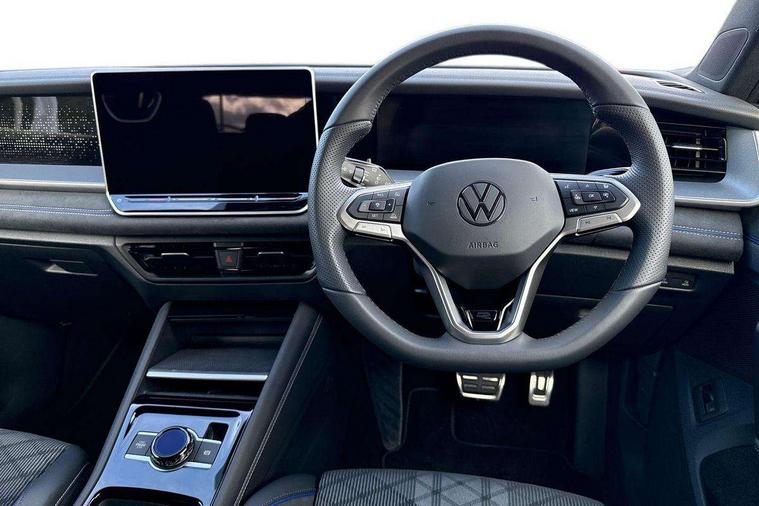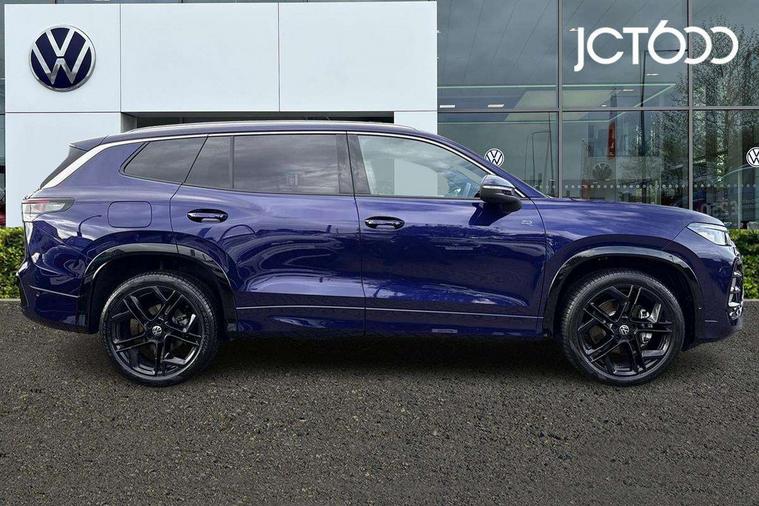 Adaptive cruise control (ACC), Digital Cockpit Pro - 10.25" high resolution dash display screen with customisable menus and information, Driver alert system, Driver attention monitoring system, Dynamic road sign display, E-Sim card for online connectivity, eCall emergency call system, Lane change system, Side assist, Rear traffic alert and Exit warning system, Multifunction front facing camera, Oncoming vehicle braking when turning including swerve support, Start/stop system with regenerative braking, Voice activation spoken voice commands for telephone and navigation system, Warning signal and warning light for front and rear seatbelts not fastened, Wireless App-Connect, Front wheel drive, Digital radio reception (DAB), Diversity antenna for FM reception, Air intake with Chrome trim, Auto dimming interior rear view mirror, Automatic headlight control system, Body colour door handles, Chrome moldings on the side windows, Coming/leaving home lighting function, Dynamic headlight range control with dynamic cornering light, Exterior mirrors convex on the left and aspherical on the right, Heat insulating glass in side and rear windows, Illuminated Volkswagen logo rear with animation, Laminated safety glass winshield, heat insulating, LED 3rd brake light, LED separate signature day time running light, Puddle lights, Rain sensor windscreen wipers, Rear fog light on one side, reversing light on both sides, Rear side wing doors, Rear wiper, Reverse activated passenger's door mirror, Surround lighting with welcome light, Volkswagen logo in front, illuminated lighting animation with wake up/goodbye scenario and illuminated door handles, 10 colour interior ambient lighting, 12V outlet in center console rear and in luggage compartment, 3 rear headrests, 3 rear seat bench in 2nd row, backrest split folding with centre armrest and 2 seats in 3rd row of seats, Black roof lining, Brushed stainless steel pedals, Carpet mats, front and rear, Centre console with illuminated storage compartment with sliding cover and two drinks holders, Chrome elements on the mirror switch and power window switches and door pulls, Door and side trim panel insert in Art velour, Flat luggage compartment floor, Front centre armrest, Front scuff plates in alumium, ISOFIX anchors for child seats on outer rear seats and front passenger seat compatible with i-Size, Mechanical rear seat release, Power adjustable lumbar support in front, Single front passenger seat, Sports comfort seats in front, Sun visors with illuminated vanity mirrors, 3 Point seat belts in front with pretensioners, 3 point seatbelts in outer rear with ECE label, Autonomous emergency braking front assist with pedestrian and cyclist monitoring, Driver and front passenger airbag with front passenger airbag deactivation, Electronic parking brake with auto hold, First aid kit with warning triangle and safety vest, Front and rear curtain airbags, Front and rear side airbags, Front centre airbag, Front disc brakes, Hill start assist, Rear disc brakes, Two tone horn, Decorative material set R-Line, Interior door handle in matte chrome,