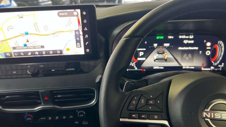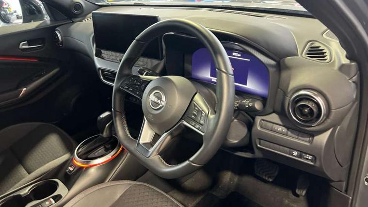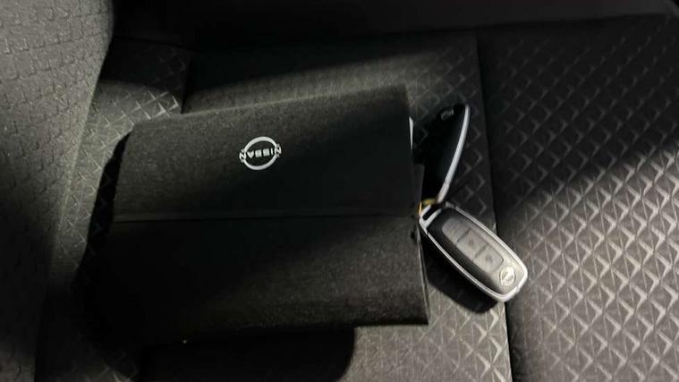 12.3" full colour TFT screen combimeter, Drive modes select (Eco, normal and sport), Emergency and breakdown call, Front parking sensor, Idle start/stop system, Intelligent driver alert system, Intelligent lane intervention, Lane departure warning system, Nissan connect 12.3" touch screen entertainment system, Nissan connect nav with TomTom traffic, Nissan connect services and Wifi connection, Outside temperature sensor, Power Steering, Rear parking sensor, Stop/start button, Traffic sign recognition, Trip computer, Voice recognition, Wireless Apple CarPlay and Google Android auto, Wireless Smartphone charger, 2 X Rear console USB port, 6 speakers, Bluetooth system, USB, Aux-in and 12V socket, DAB Digital radio, Auto dimming frameless rear view mirror, Automatic hazard signal with emergency stop signal, Body colour door handles, Electrically adjustable door mirrors with integrated indicators, Follow me home headlights, Front and rear electric window with one touch driver window, Heated and auto folding door mirrors, High beam assist, LED 3rd brake light, LED daytime running lights, LED headlamps, LED rear fog lamp, LED rear lamps, One touch passenger window, Rain sensor windscreen wipers, Rear privacy glass, Rear side wing doors, Rear wiper, Roof spoiler, Shark fin roof antenna in solid Black, Three blink turn signal, 3 height adjustable rear headrests, 3 seat bench in 2nd row, 60/40 split folding rear seat, Automatic climate control, Card holder on driver sunvisor, Cloth/Synthetic leather with melange fabric inserts, Driver side rear coat hanger, Driver/passenger sunvisors and vanity mirrors, Front and rear cabin lights, Front armrest, Front door pockets with bottle holders, Front head restraints, Front/rear passenger grab handles, Height adjustable driver's seat, Internal chrome door handles, Leather gearshift knob, Leather steering wheel, Luggage board, Luggage space lighting, Monoform sporty seats, Multifunction steering wheel, Rear door bottle holders, Single front passenger seat, Steering wheel mounted gearshift paddles, Synthetic leather kneepad, Telescopic steering wheel adjustment, Two cupholders in front centre console, Two rear isofix child seat anchorage points with top tether, Welcome light and console tray ambient lighting, ABS with EBD and brake assist, Active ride control, Active Trace Control, Driver and passenger airbags, Driver and passenger side airbags, Electric handbrake with auto hold function, Electronic Stability Programme (ESP), Front and rear curtain airbags, Height adjustable seatbelts, Hill start assist, Intelligent emergency braking with pedestrian and cyclist recognition, Rear door child safety locks, Seatbelt reminder for driver/front passenger and rear seats, Three 3 point rear seatbelts, Traction control, Tyre pressure monitoring system, VDC Dynamic Vehicle Control, Alarm, Immobiliser, Intelligent key and start push button with walk away lock and approach unlock functions, Remote central locking, 17" Alloy wheels,