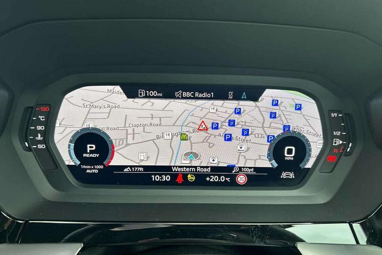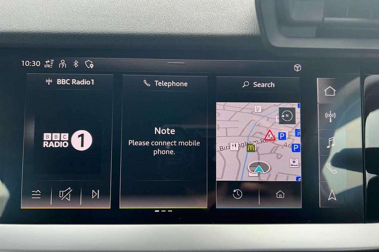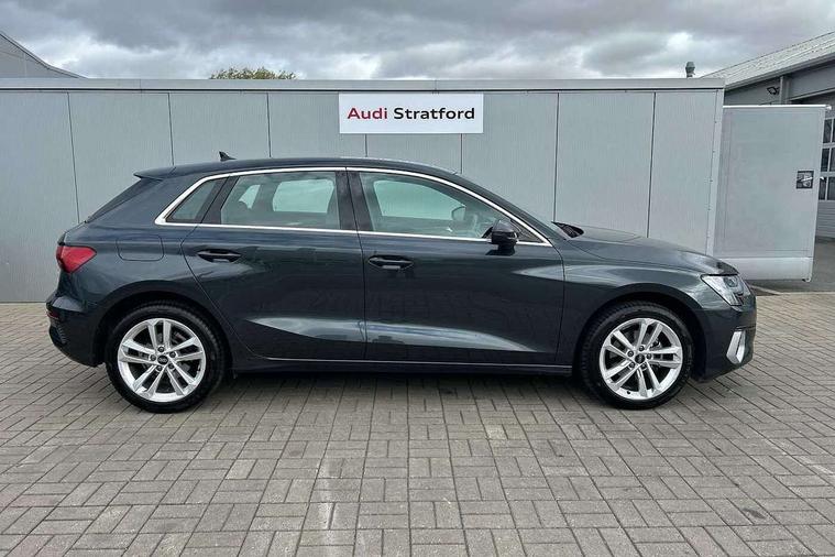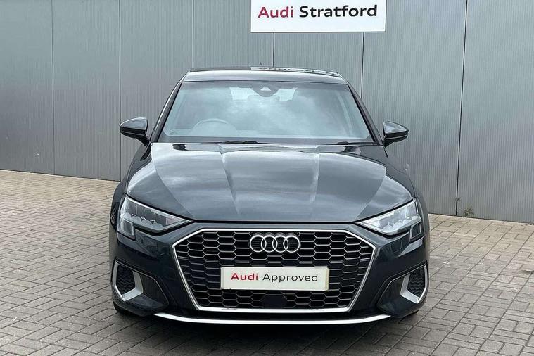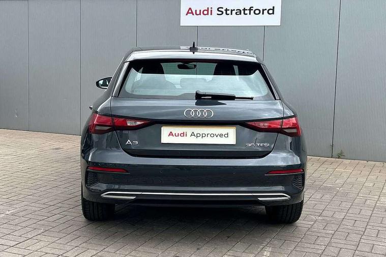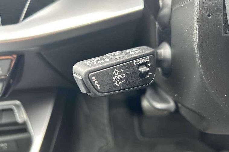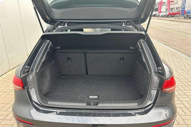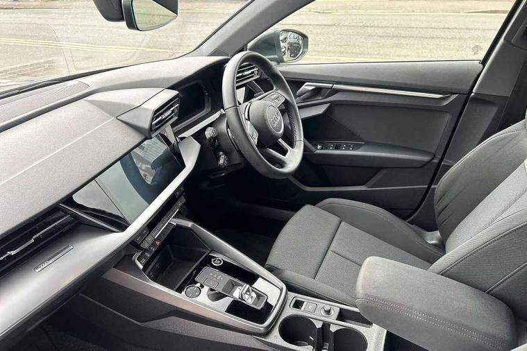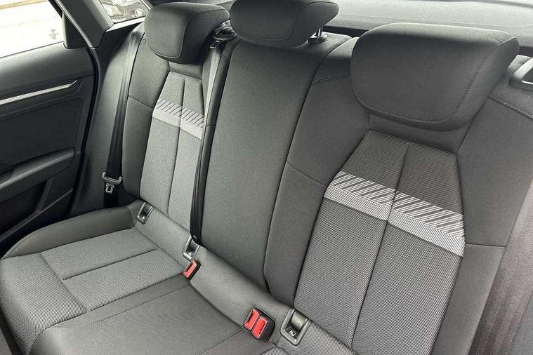 Audi drive select (Auto, Comfort, Dynamic and Individual), Audi smartphone interface, Audi Virtual Cockpit - 10.25" digital and colour instrument cluster, Automatic start/stop system with recuperation, Bluetooth interface, Camera based traffic sign recognition, Collision avoidance assistant, e-Call (emergency call), Electromechanical power speed sensitive steering, Lane departure warning system, MMI Navigation Plus with high resolution 10.1" colour touch screen display, Service indicator, Trip computer, Voice control system with natural language interaction, Standard suspension, 2xUSB-C connection with data and charging functions, 6 passive loudspeakers, DAB Digital radio, 3rd brake light, Acoustic glass windscreen, Aluminium window trim, Auto dimming frameless rear view mirror, Body colour exterior mirrors, Body colour roof spoiler, Electrically adjustable/heated/folding/auto dimming door mirrors with integrated LED indications + kerb view function for passenger side, Front electric windows, LED daytime running lights, LED headlights and halogen rear lights, Light and rain sensors, Rear electric windows, Rear side wing doors, Rear window, rear door windows and rear side windows in clear glass, Rear wiper, 12V socket and storage compartment in front centre console, 3 seat bench in 2nd row, 3 spoke leather multifunction steering wheel with paddle shift, 4 way electrically adjustable lumbar support for driver and front passenger, 60/40 split folding rear seat bench, Dual zone electronic climate control, Front and rear headrests, Front centre armrest, Front door sill trims with aluminium inlay, Front/rear floor mats, Height and reach adjustable steering wheel, Interior lighting - Front and rear roof module including reading lights, glove compartment light and right hand side, Interior lighting - glove compartment light and right hand side, Luggage compartment floor covering, Manual boot compartment lid, Manually adjustable front seats, Routine cloth upholstery with front sports seats, Seat side bolsters, Single front passenger seat, Steel grey cloth headlining, Aluminium interior elements pack - A3 Sportback, LED interior lighting pack - A3 Sportback, Sport styling pack - A3 Sportback, 3x3 point rear seat belts, Driver and front passenger airbag with passenger airbag deactivation, Electronic Stabilisation Control (ESC) including ABS, ASR and EDL, First aid kit with warning triangle and 2 safety vests, Front side airbags with head airbags and interaction airbag, Pre-sense front with pedestrian and cyclist detection, Seatbelt monitoring, Tyre pressure loss indicator, Anti theft alarm, Anti-theft wheel bolts, Electronically operated child locks, Immobiliser, Remote control central locking, Inlays with silk effect paint in platinum grey,