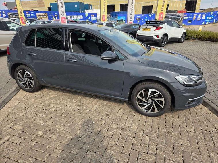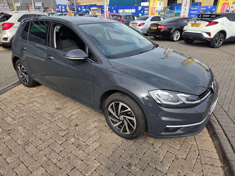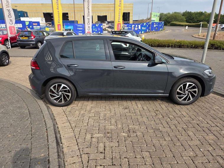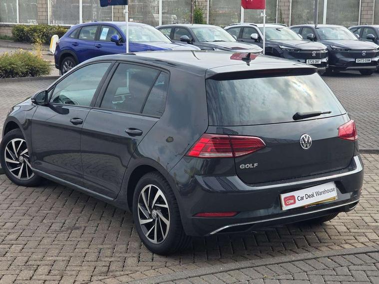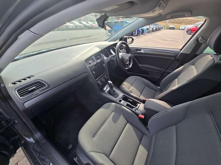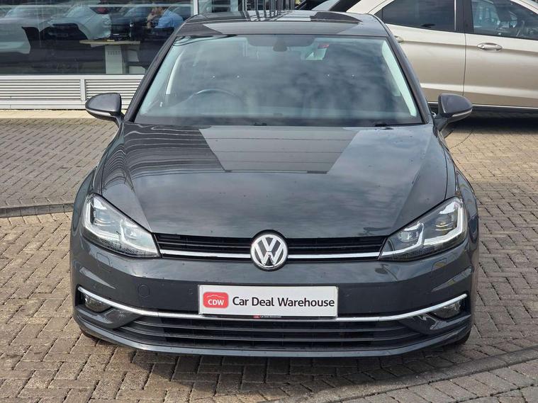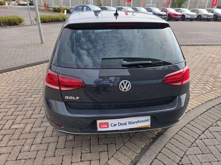 'Lights On' Reminder warning buzzer, ACC - Adaptive cruise control with front assist, forward collision warning, distance monitoring, city emergency brake and speed limiter, Bluetooth telephone and audio connection for compatible devices, Brake pad wear indicator warning light, Driver alert system, Driving Mode Selection with four preset modes - Eco, normal, sport or individual modes, Instrument cluster in white, Multifunction computer with visual gear change recommendation for fuel consumption, Power assisted speed sensitive electro-mechanical steering, Push tank flap, Speed limit display, Speedo, rev counter, electronic odometer, trip, service interval display, exterior temperature and fuel gauge, Stop/start system, Think blue trainer driver tips and journey analysis, Warning buzzer and light for front seatbelts unfastened, We Connect Go Dongle, Battery regeneration during braking, XDS electronic differential lock, Composition media system, DAB Digital radio receiver, Driver Personalisation profile selection, MP3/WMA compatability, Multi device interface (MDI) with USB connection, Personalisation 1.1 profile for media, Premium USB cable in choice of either Apple or Android smartphone compatibility, SMS Functionality, Title and cover art display, 4 X 20W output, USB connection and socket, USB and SD card connectivity, Auto dimming rear view mirror, Black front air intake and radiator grille with chrome insert, Black rear diffuser, Body colour bumpers, Body colour door handles, Body colour door mirrors with integrated indicators, Dusk sensor + automatic driving lights, Electric front windows, Electric rear windows, Electrically adjustable and heated door mirrors, Fully galvanised body, Heated rear windscreen, Hidden exhaust pipe, High level 3rd brake light incorporating LED Technology, LED front fog lights with static cornering light function, Range adjustable headlights via infotainment system with LED daytime running lights, Rear fog lamp, Rear number plate lights incorporating LED technology, Rear tinted glass 65% light absorbing from B pillar backwards, Rear window aerial, Rear window wash/wipe with intermittent wipe, Reflectors in all doors, Remote electrically foldable door mirrors, door mirror puddle lights and reverse activated kerb-view adjustment on passengers door mirror, Tailgate with integrated rear roof spoiler, Windscreen wipers/ intermittent wipe + 4 position delay, 12V socket in luggage compartment, 3 rear headrests, 4 load lashing points in luggage compartment, 60/40 split folding rear seat backrest, Auto fold down lever in rear seat backrest, Bag hook in luggage compartment x 2, Black decorative sleeve on gear handles, Cooled glovebox, Cover for storage compartment in centre, Cupholder cover, Dust/pollen filter, Front and rear reading lights X 2, Front centre armrest with storage compartment and two rear air vents, Front seat back storage pockets, Grab handles front x 2, rear x 2 with integrated coat hooks, Height and reach adjustable steering wheel, Illuminated vanity mirrors, Instrument lighting white adjustable panel illumination, Interior light delay, Isofix preparation for 2 rear child seats, Load through provision with rear centre armrest and cupholders x2, Luggage compartment lighting, Overhead storage box, Passenger underseat drawer, Pearl grey headlining, Storage box in luggage compartment, Storage compartment in roof console with cover, Storage compartments in centre console, Storage compartments in front doors, Storage compartments in rear doors, Stowable luggage compartment cover, Sun visors, Variable boot floor, height adjustable and removable, Convenience Pack - Golf, Light and Sight pack - Golf, Mirror pack - Golf, 3 rear three point seatbelts, Airbags - Driver's and front passenger's, curtain airbag, Driver's knee, front side impact and passenger's airbag deactivation switch, Anti-lock Braking System (ABS) with Hydraulic Brake Assist (HBA), Automatic post collision braking system, Child locks on rear doors, Driver/Passenger optimised head restraints, Electronic parking brake with auto hold, Electronic stability control (ESC) including Electronic differential lock (EDL) and ASR (Traction control) with deactivation via infotainment system, Front ventilated disc brakes and rear disc brakes, Pre crash preventive occupant protection, Three point height adjustable front seatbelts with tensioners, Tyre pressure loss indicator, Alarm with interior protection and deactivation via infotainment system, Electronic engine immobiliser, Brushed dark silver decorative inserts in dash and door panels, Chrome plated air vent surround, Chrome-plated light switch surround, Polar night black decorative inserts in centre console, Steel space saver spare wheel,