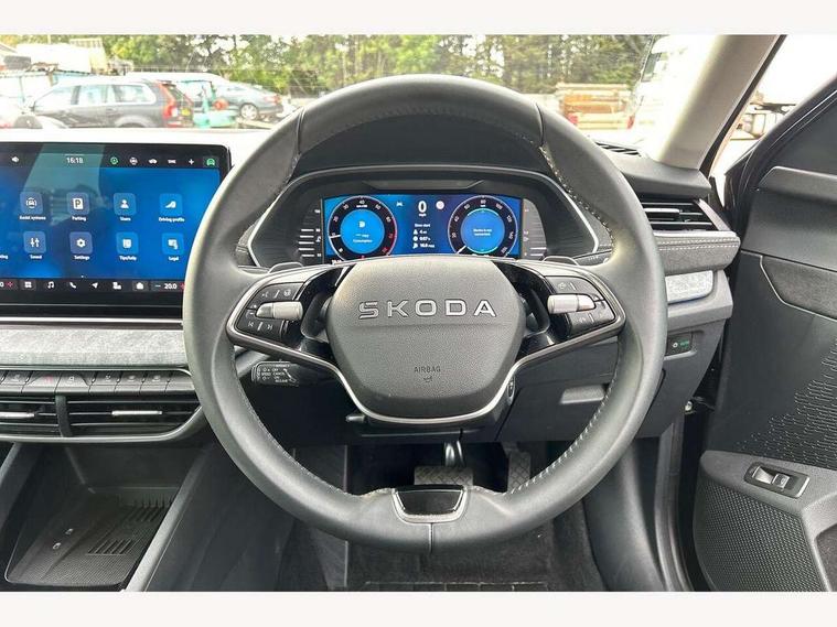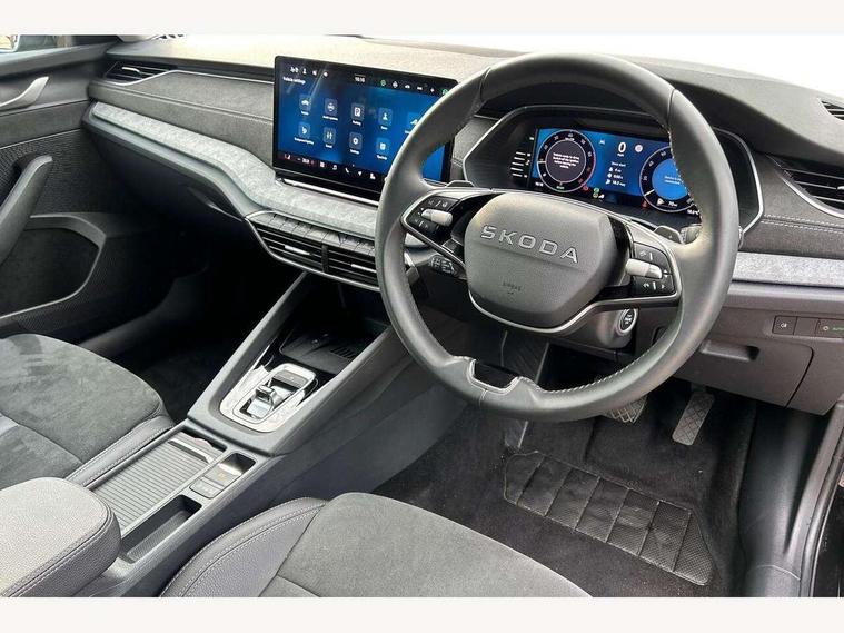 1x USB Typc C port in rear view mirror, 4x USB Type C ports - 2x in front centre console and 2x in rear (45W), Drive mode selection, Driver fatigue sensor, eCall emergency system, Electro-mechanical power steering, Front assist system, Traffic jam assist, Traffic sign recognition, Turn Assist, Virtual Cockpit - 10.25" digital display, Voice control system, Wireless charging (15W) with cooling function, Wireless SmartLink for Apple CarPlay and Android Auto, 13" touchscreen display with navigation, DAB Digital radio, Aero front windscreen wipers with intermittent function, Auto dimming rear view mirror, Body colour bumpers, Body colour door mirrors and handles, Chrome grille surround, Chrome strip in lower front bumper, Chrome window surrounds, Electric front and rear windows, Heated rear windscreen, High level third brake light, Ice scraper in fuel cap, LED daytime running lights, LED Headlights, Logo projection in front doors, Rain and light sensors, Rear fog light on one side, Rear privacy glass, Rear side wing doors, 12 volt socket in boot, 3 rear headrests, 3 seat bench in 2nd row, 4 foldable roof handles, Boot net programme, Front head restraints, Heated front seats, Illuminated glovebox, Interior door handles in dark chrome, Jumbo Box storage, Luggage compartment lighting x2 lights, Mechanical rear seat release from boot, Parcel shelf - folding, Single front passenger seat, Steering wheel in black leather with black stitching, Storage compartments in left and right of boot, Sun visors with mirrors, Sunglasses storage, Ticket holder, Umbrella in door panel, Unsplit rear bench seat, split folding backrest with centre armrest with cupholder, Comfort package - Octavia, 3x3 point rear seat belts, Alarm with interior monitoring, tilt sensor and back up horn, Curtain airbags and front side airbags, Driver and front passenger airbags, Drivers knee airbag, Electronic parking brake, ESC including ABS, EBV, MSR, ASR, EDS, HBA, DSR, Front central airbag, Hill hold assist, ISOFIX on front passenger seat and outer rear seats, Passenger airbag deactivate switch, Three point seat belts in front and rear, Two tone horn, Tyre pressure monitor, Visual and acoustic seat belt reminder, Warning reflectors in front door, Anti-theft wheel bolts, Keyless start/stop, Remote central locking, Chrome air vent surrounds,