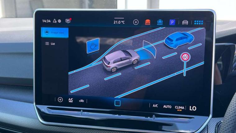 Activated carbon canister, Adaptive cruise control (ACC), Advanced driver attention and drowsiness monitor, Dynamic road sign display, Dynamic steering, E-Sim card for online connectivity, eCall emergency call system, Multi-color Digital cockpit pro, selection of different info profile possible, Multifunction front facing camera for distance control, Navigation system, Oncoming vehicle braking when turning including swerve support, Preparation for light assist system, Speed limiter, Speedo, rev counter, electronic odometer, trip, service interval display, exterior temperature and fuel gauge, Traffic jam assist, Voice enhancer and voice control, Warning signal and warning light for front and rear seatbelts not fastened, We connect plus preparation, We connect preparation, Wireless app connect, Petrol Particulate Filter, Start-stop system with battery regeneration (recuperation - energy recovery during braking), XDS electronic differential lock for improved traction and handling, 2 USB C ports in front, 2 USB charging sockets on the centre console in the rear charging capacity upto 45W, Comfort telephony + wireless charging, without wireless aerial connection, Digital radio reception (DAB), Diversity antenna for FM reception, Gaming platform via car app, Infotainment system with 12.9" display, Mobile phone interface with inductive charging feature, 3rd brake light, Auto headlights, Automatic headlamp activation with Coming home and Leaving home feature, Body colored bumpers in R-Line style, Body colour door handles, Exterior ambient lighting with illuminated door handles, Exterior mirrors convex on the left and aspherical on the right, Front and rear electric windows, Heat insulating windshield made of laminated glass, LED daytime running lights, Rear exhaust tailpipe, Rear fog light on one side and reversing lights on both sides, Rear side wing doors, Rear windscreen washer and wiper with interval delay, Remote electrically foldable door mirrors, puddle lights and reverse activated passenger's door mirror, Welcome light with surround lighting, 12V socket in front centre console, 12V socket in luggage compartment, 3 rear head restraints, 3 seat bench in 2nd row, Ambient lighting with 30 colour including LED light unit in front footwell with selectable light colour, Brushed stainless steel pedals, Carpet mats, front and rear, Chrome plated radiator grille inserts, air vent surrounds and light switch surrounds, Front centre armrest, Integrated front head restraints, ISOFIX anchors for child seats on outer rear bench seats and on front passanger seat compatible for i-Size, Leather gearshift handle, Luggage compartment lighting, Premium sports seats in front, Rear cupholder and loadthough, Single front passenger seat, Soul black instrument panel, Split folding backrest with centre armrest and unsplit rear seat bench, Storm grey roof lining, Sun visors with illuminated vanity mirrors, 3 point height adj front seatbelts + pretensioners, 3 rear three point seatbelts, ABS, Autonomous emergency braking front assist with pedestrian and cyclist monitoring, Child locks on rear doors, Driver and front passenger airbag with front passenger airbag deactivation, Electronic parking brake with auto hold, ESC (Electronic Stability Control), Extended pedestrian protection measures, Rear disc brakes, Two tone horn, Tyre pressure loss indicator, Volkswagen roadside assistance, Anti theft wheel bolts, Preparation for alcohol interlock, Decorative inserts carbon grey for dashboard and front door trim panels,