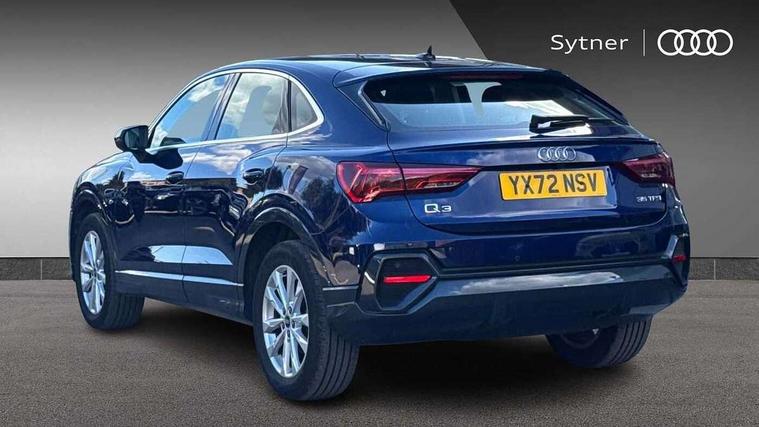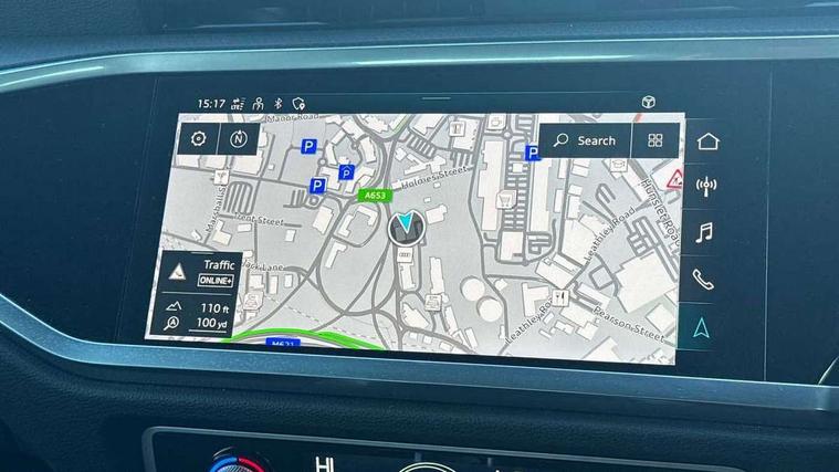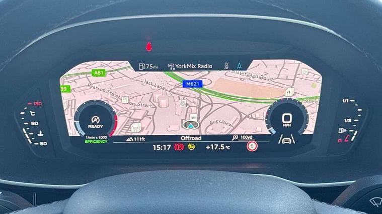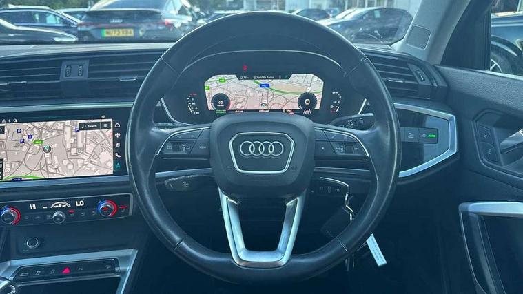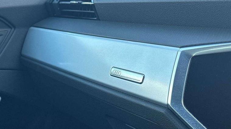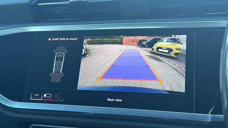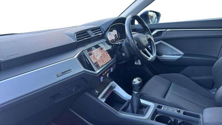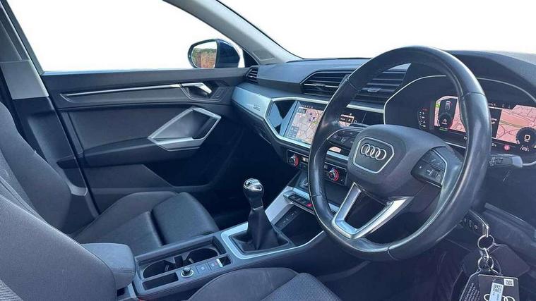 Audi drive select, Audi lane departure warning, Audi Virtual Cockpit - 10.25" display, Bluetooth interface, Camera based traffic sign recognition, Cruise control + speed limiter, Legal emergency call, MMI Navigation Plus with high resolution 10.1 inch touchscreen colour display, Power operated tailgate, Progressive steering, Rear parking sensors, Service interval indicator, Smartphone interface includes wireless Apple carplay/Android Auto, Start stop system with recuperation, Voice control system with natural language interaction, Sports suspension, 2 USB-C ports with charge and data functions, 6 passive loudspeakers, DAB digital radio module, Acoustic windscreen, Aluminium window trim, Auto dimming frameless rear view mirror, Bumpers and underbody protection in contrasting manhattan grey paint finish, Diffuser grille in grained matt black, Diffuser trim in manhattan grey metallic, Door sill trims with illuminated aluminium inlay, Electrically folding, adjustable and heated door mirrors with integrated LED side indicators and kerb view function for passenger side, Front and rear electric windows, Front fog lights, Front side air inlets in Manhattan grey metallic, Grille surround in aluminium silver matt, High gloss black finish B and C pillars, Honeycomb design radiator grille in matt titanium black, LED headlights with LED daytime running lights, LED rear lights, LED third brake light, Rain and light sensors, Rear side wing doors, Rear wiper, Variable front intermittent wipers, 12V socket in rear centre console, 3 seat bench in 2nd row, 3 spoke multi-function leather steering wheel, 40:20:40 folding with manual adjustment for 60:40 forwards/backwards position and backrest angle, Dual zone electronic climate control, Front and rear floor mats, Front and rear headrests, Front and rear roof module including reading lights, Front centre armrest, Glove compartment lighting, Height and reach adjustable steering wheel, ISOFIX child seat mounting for front passenger with airbag deactivation and outer rear seat including top tether attachment point for outer rear seats, Luggage compartment light right in white, Luggage compartment sill protection in stainless steel, Lunar silver cloth headlining, Manual front seats with height adjustment, Single front passenger seat, Non smoking pack - Q3, 3x3 point rear seatbelts, 6 airbags - Driver, front passenger, curtain and side windows, Audi pre-sense front with pedestrain and cyclist recognition, Electromechanical parking brake, Electronic stabilisation control including ABS, ASR and EDL, Front seatbelt reminder, Hill descent control, Hill hold assist, Manual child lock in rear doors, Pre sense basic, Seatbelt monitoring, Tyre pressure warning, Warning triangle and first aid kit, Anti theft alarm, Anti theft wheel bolts, Immobiliser, Remote central locking, Black dashboard, Detail dashboard around MMI touch colour display in glass look, black with surround in aluminium look, Micrometallic silver inlay,