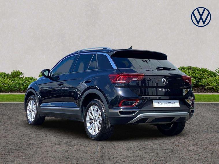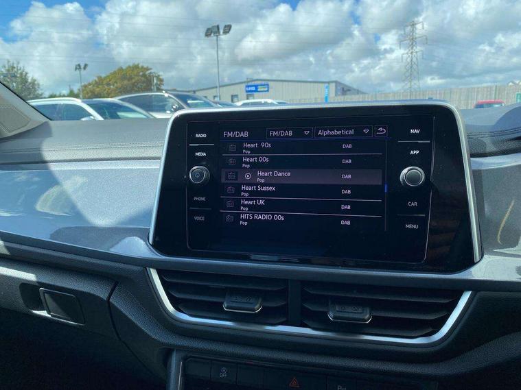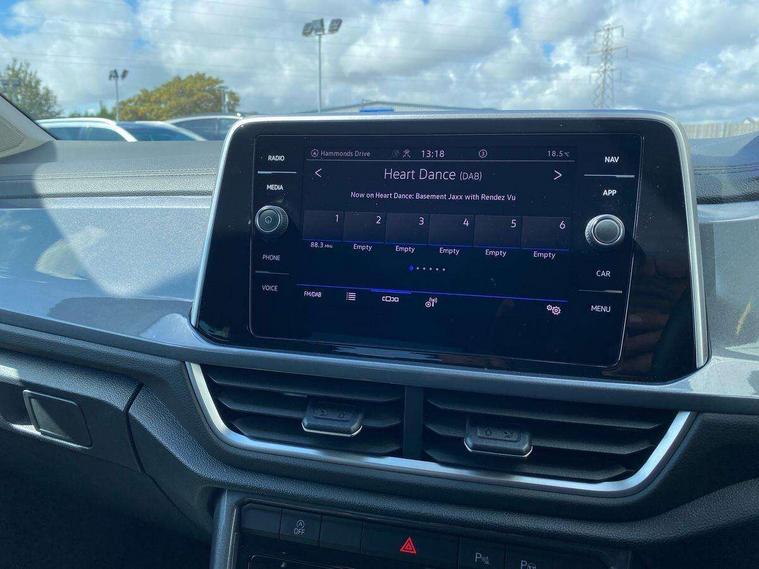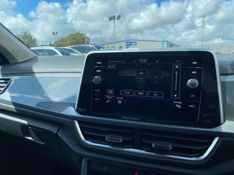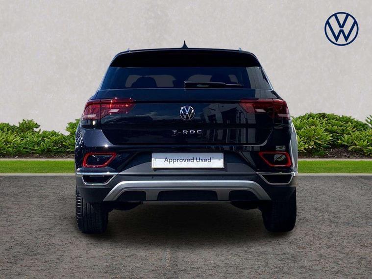 10.25" Digital cockpit pro, Advanced driver attention and drowsiness monitor, Emergency call service, Lane keeping system Lane Assist, Mobile phone interface, Modified key software - reduce switch off time for key status change to Long no motion, Online services, Park assist including front and rear parking sensors, Power assisted speed sensitive steering, Service interval indicator, Tailgate/trunk lid release from outside, Think blue trainer driver tips and journey analysis, Warning sound and light for front seatbelts unfastened, Wireless app connect, Wireless Smartphone charger, Battery regeneration during braking, Start/stop function with battery regeneration, DAB Digital radio, Diversity antenna for FM reception, Front and rear 6 speakers, Music playback - MP3, WMA and AAC files, Premium USB cable in choice of either Apple or Android smartphone compatibility, SD card slot, Simultaneous pairing of 2 compatible mobile devices, Title and cover art display, We Connect and We Connect Plus functionality, Auto dimming interior rear view mirror, Automatic hazard lights activation under emergency braking, Automatic headlight control with LED separate daytime running lights with coming/leaving home function, Body colour sports bumpers with silver metallic underbody fascia, Dynamic headlight range control with self adjusting whilst driving, Electrically adjustable and heated door mirrors, Extended roof spoiler, Exterior mirrors aspherical on driver side, convex on front passenger side, External USB type C socket and charging sockets, Front windscreen wiper with intermittent wipe and 4 position delay, Heated rear window, LED 3rd brake light, LED rear combination lamps, LED rear number plate lights, Light mode for poor weather, rain, fog or snow, Power windows with comfort operation and circuit breaker, Rain sensor, Rear exhaust tailpipe, Rear fog light on one side and reversing lights on both sides, Rear side wing doors, Rear wash/wipe with intermittent wipe setting, Remote electrically foldable door mirrors, puddle lights and reverse activated passenger's door mirror, 12V power socket in centre console, 3 rear head restraints, 3 seat bench in 2nd row, 4 load lashing points in luggage compartment, Air care climatronic air conditoning system with active combination filter and 2-zone temperature control, Chrome plated radiator grille inserts, air vent surrounds and light switch surrounds, Door and side trim panel with leatherette insert, Drawer under drivers seat, Front + rear carpet mats, Front centre armrest, Front comfort sports seats, Front cupholders x 2, Front footwell illumination, Front seat back storage pockets, Glove compartment door with light, Instrument lighting, white adjustable panel illumination, Interior ambient lighting and surround lighting, Interior light delay, Isofix child seat preparation, Leather gearshift handle, LED interior light with switch off delay/dimmer and 2 front/rear LED reading lights, Load-through provision with cup holder when folded down ('Unsplit rear seat bench, split folding backrest, with centre armrest), Luggage compartment lighting, Non-folding front passenger seat backrest, Single front passenger seat, Storage compartment in left and right luggage area, Storage compartment in rear doors, Storage compartments in driver and front passenger doors, Sunvisors with illuminated vanity mirrors, Variable boot floor, height adjustable and removable, Driver assistance pack without proactive passenger protection - T-Roc, 3 point height adj front seatbelts + pretensioners, 3 point seatbelts in outer rear with ECE label, ABS, Child locks on rear doors, City emergency braking and pedestrian monitoring, Driver and front passenger airbag with front passenger airbag deactivation, Driver and front passenger safety-optimised head restraints, Drivers seatbelt reminder, Electronic parking brake, Electronic Stability Control (ESC) inc EDL (Electronic Differential Lock) and ASR (Traction Control), Front and rear passengers curtain airbag system including front side airbags, Predictive pedestrian protection, Rear disc brakes, Two tone horn, Tyre pressure loss indicator, Volkswagen roadside assistance, Trims for alloy wheels,