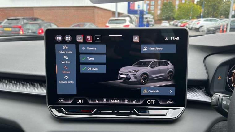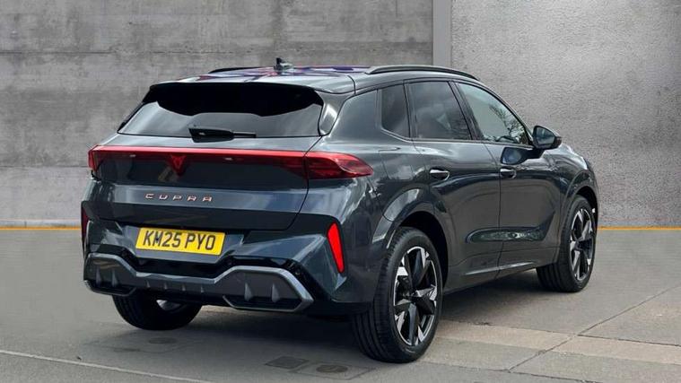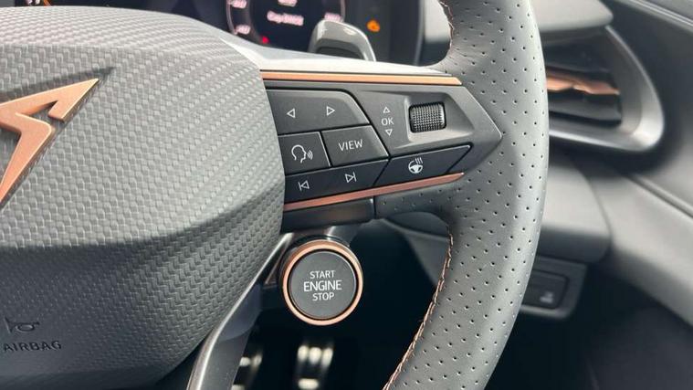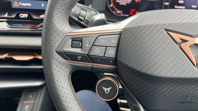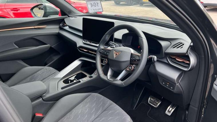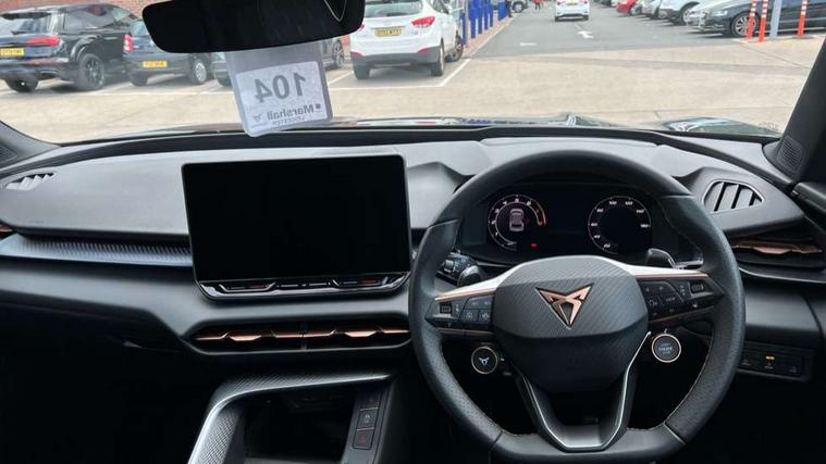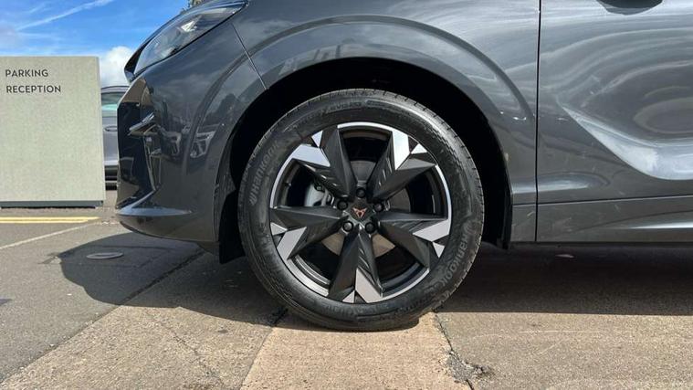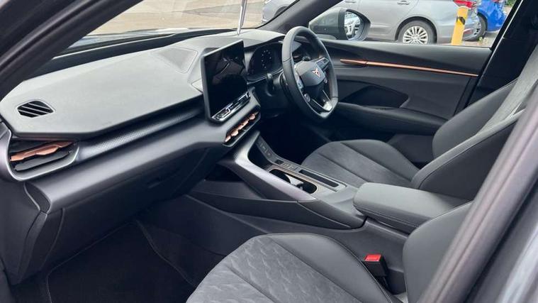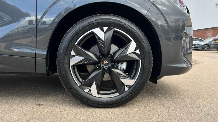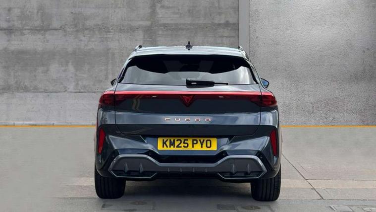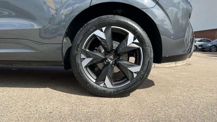 10.25" digital cockpit and configurable dashboard, Adaptive cruise control with follow-to-stop and speed limiter, Advanced driver alert system, Advanced lane assist with semi-automatic vehicle control in a medical emergency and traffic jam assist, Driving profile selection and conventional shock absorber, Dynamic road sign display, E-call, Electric tailgate with virtual pedal, Emergency steering support with turn assist, Four x USB Type C ports (2 in front and 2 in rear), Front and rear parking sensors, Front assist (Forward collision warning with automatic braking) with multifunction camera and front cross traffic assist, Head up Display, Intelligent park assist, Media system with Nav - 12.9" touch display, voice control, full link phone (wired/wireless), DAB and Steering wheel mounted controls, Rear traffic assist, Side and exit assist, Speed sensitive power steering, Start/stop system with regenerative braking, Top view camera (front camera, rear camera, 2 side cameras), Wireless phone charger, Auto dimming rear view mirror, Black roof rails, CUPRA 3D rear lights with ceremony & swiping indicator and illuminated logo, Dark tinted rear windows, Daytime running lights with automatic headlight control and Coming and Leaving home function, Door mirrors with memory function and lowing function on passenger mirror, Dynamic headlight range control, Electric front/rear windows, Electrically adjustable, heated and folding door mirrors, Front fog lamps with cornering function, Heat reflecting windscreen, High beam assist, LED headlamps with signature "CUPRA LED", Rain sensing wipers, Rear fog light on one side, back up light on both sides, Rear side wing doors, Rear wash/wipe, Third brake light, Welcome lights (within exterior mirror housing), 3 seat bench in 2nd row, Black roof lining, Cupra sports pedals, Dinamica cloth upholstery, Driver seat memory function, Electrically adjustable front seats including lumbar support, Front and rear head restraints, Front and rear reading lights X 4, Front centre armrest, Heated front seats, Heated leather wrapped multi function sports steering wheel with tiptronic, Illuminated interior front door sills, Isofix, Operating voltage 12V, Single front passenger seat, Smart wraparound interior lighting, Sunvisors with illuminated mirror, Three zone climate control with control panel in rear, Unsplit rear seat bench, split folding backrest, with centre armrest, Variable luggage/load compartment floor, 3 point seatbelts in front with pretensioner and electric height adjustment, 3 point seatbelts on all rear seats, Brake control system - ESC and brake booster, Child proof door locks, Driver and front passenger airbags, Electronic parking brake, Front and rear disc brakes, Front interaction airbag, Front passenger airbag deactivation switch, Front side airbags with curtain airbags, Pre-crash front and rear seat belt tensioner, window closure and hazard lights, Tyre pressure monitoring system, Visual and acoustic seat belt reminder, electric contact in front and rear, Anti theft alarm, Keyless locking and starting system with keyless access, Locking wheel bolts, Black decorative trims, Chrome interior detailing, 19" Spectrum exclusive machine alloy wheels, Tool kit,