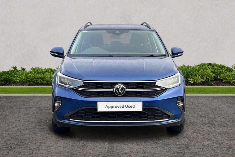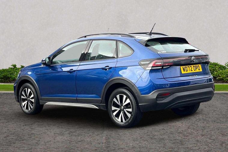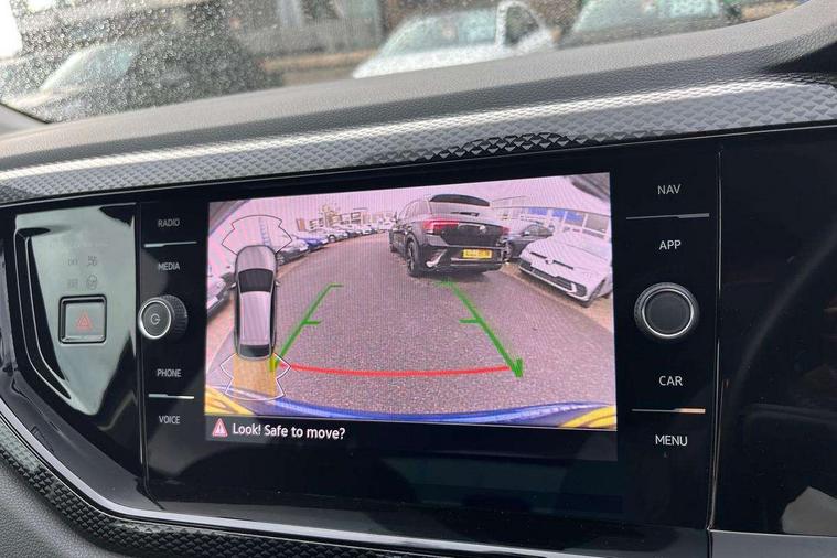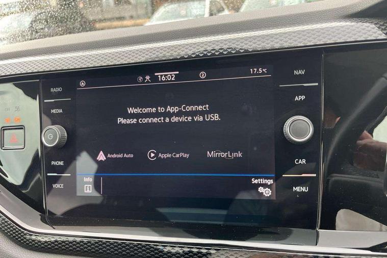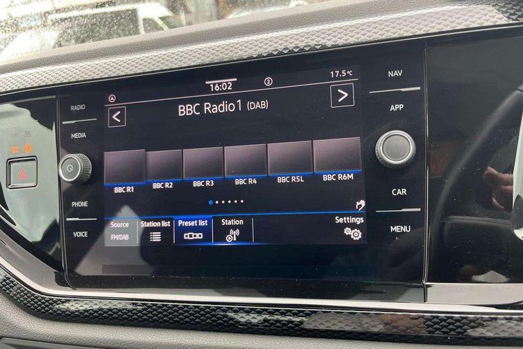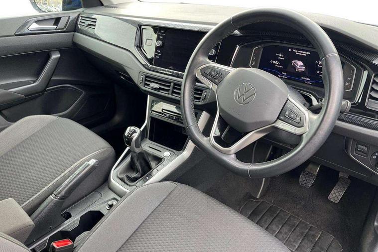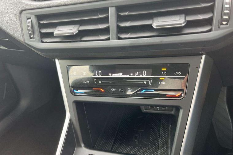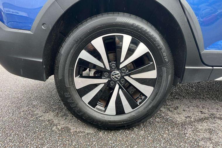 Driver alert system, e-Call (emergency call), Power Steering, Travel assist including emergency assist, Washer fluid level indicator, Wireless Charging including Bluetooth, Start-stop system with battery regeneration (recuperation - energy recovery during braking), WeConnect plus, Ambient lighting with logo projection, Aspherical driver's exterior mirror, Auto headlights, Body coloured bumpers, Body coloured exterior mirror housings and door handles, Electric windows, External USB type C socket and charging sockets, Front fog lamps with cornering function, Headlight range control, Heat insulating glass windscreen, LED headlamps, LED rear combination lamp, LED third brake light, Left convex exterior mirror, Power folding adjustable/heated exterior mirrors and front passenger exterior mirror lowering function, Rear fog light on one side, reversing light on both sides, Rear side wing doors, Rear wash/wipe with intermittent wipe setting, 'Slash/ Austin' Cloth upholstery, 12V socket in centre console, 2 front reading lights, 3 rear head restraints, 3 seat bench in 2nd row, Black carpets, Child seat anchor for child seat system i-Size, 2x top tether and child seat anchor in front on front passenger side, Door and side trim panels in titan black, Driver and front passenger seat height adjustment, Front centre armrest, Handbrake lever handle in leather, Height and reach adjustable steering wheel, Leather trimmed gear knob, Leather wrapped multifunction steering wheel, Luggage compartment floor, Luggage compartment light, Lumbar support for driver's and front passengers seat, Seat covers in titanium black, Single front passenger seat, Split folding backrest with centre armrest and unsplit rear seat bench, Storage compartment under front seats, Sun visors with illuminated vanity mirrors, Chrome Package - Taigo, Drivers assistance pack - Taigo, Light and Sight pack including High beam assist - Taigo, 2 x 3-point seatbelts/outer rear seats with ECE label, 3-point seat belts in front with pretensioner and height adjustment, 3-point seatbelt for centre rear seat, Driver and front passenger airbags with front passenger airbag de-activation, front side and curtain airbags, Driver and front passenger safety-optimised head restraints, Electronic stability control, Extended and predictive pedestrian/ cyclist protection, Front and rear disc brakes, Front curtain and side airbags with center airbag, Hill start assist, Manual rear child locks, Single tone horn, Tyre pressure loss indicator, Anti-theft alarm system with interior monitoring, backup horn, and towing protection, Anti-theft wheel bolts, Lava stone black gloss/matt decorative inserts in dash and front door panels, Low rolling resistance tyres,