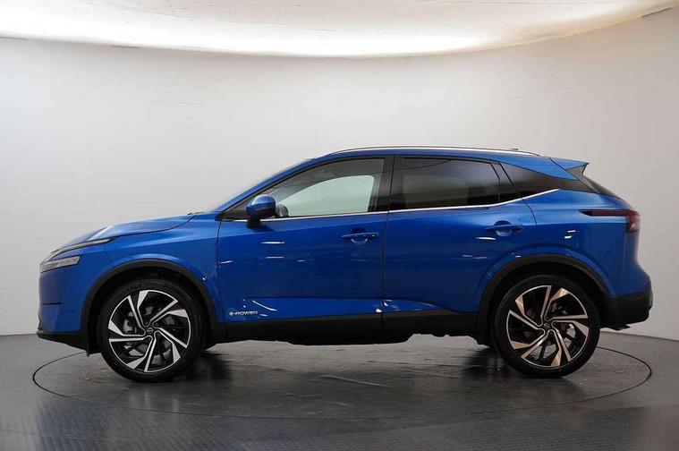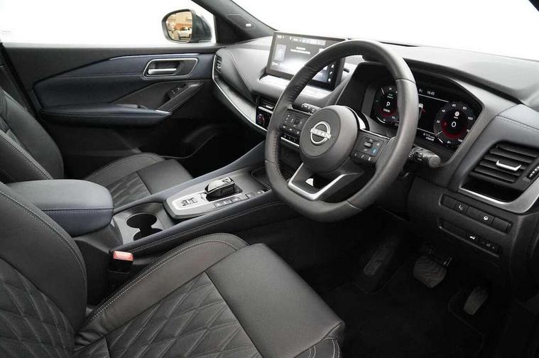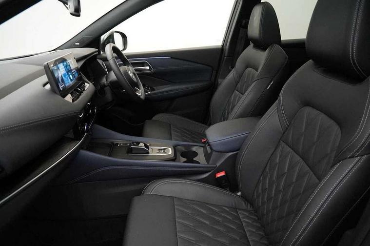 Advanced windscreen head up display, Blind spot warning, Drive modes (sport, normal, eco), e-Pedal step, Electric speed sensitive power steering, Emergency and breakdown call, Front and rear parking sensors, Full Digital 12.3" TFT Digital Combimeter, Google maps services - search, weather, 3D maps and Google street view, Hands free power tailgate, Idle stop/start system, Intelligent around view monitor, Intelligent Cruise control (ICC), Intelligent driver alert system, Intelligent forward collision warning, Intelligent lane intervention, Lane departure prevention, Lane departure warning system, Lane keep assist, Moving object detection, Nissan connect 12.3 inch touchscreen infotainment system, Nissan connect navigation, Pro pilot park assist, Push button starter, Rear cross traffic alert, Rear view camera, Remote control services - door locks, lights, horn and car locator, Telematics - notifications and connectivity services, TomTom live traffic services, Traffic sign recognition with legal speed adjustment, Trip computer, Virtual personal assistant and firmware over the air capability, Wireless Apple CarPlay and wired Android Auto, Wireless charging pad, 10 Bose speakers - 2 tweeters, 6 high and medium frequency door speakers and 2 in subwoofer, AM/FM audio system with DAB, Bluetooth audio streaming, Bose acoustimass bass box, Digital amplifier, Front USB connections (Type-A and Type-C), Rear USB charging only ports (Type-A and Type-C), Auto dimming rear view mirror, Auto rear wiper when reversing, Automatic hazard signal with emergency stop signal, Body colour mirror caps, Body coloured door handles, Bodyside mouldings, Chrome side window finisher, Door handle with button, Door mirror memory, e-POWER badging, Electric auto folding door mirrors, Electrically adjustable and heated door mirrors with LED turn indicator, Follow me home headlights, Front and rear LED turning signals, Headlights auto levelling system, Intelligent auto headlights, LED 3rd brake light, LED daytime running lights, LED front fog lights, LED headlights with adaptive driving beam, LED rear lights, One touch front and rear electric windows with remote opening and closing, Privacy glass, Rear bumper with graphite insert, Rear reversing light (bulb lighting), Rear roof spoiler, Rear side wing doors, Rear styling plate, Reverse tilting door mirrors, Shark fin antenna, Splash free rain sensing wipers, Super UV and infrared cut glass, Thermaclear heated windscreen, Three blink turn signal, 12v power socket in dashboard and luggage, 2x Rear coat hooks, 3 bench rear seats in 2nd row, 3 rear headrests, 4 folding assist grip, 6 Luggage hooks - 4 on floor, 2 on side, 60/40 split folding rear seat bench, Ambient lighting around centre console, Ambient lighting in front doors, Centre console storage tray, Chrome interior door handles, Dark black/blueish PVC wrapping, Dark headlining, Driver and front passenger sunvisors with illuminated vanity mirrors, Driver seat back pocket, Dual zone automatic climate control with pollen filter, e-POWER shifter, Electric 4-way lumbar support for drivers seat, Electric adjustable 4 way lumbar support for passenger seat, Electrically adjustable driver seat with massage and memory functions, Front and rear door storage, Front centre console and armrest, Front cupholders x 2, Front door with bottle holders, Glovebox with light, Hard trunk cover, Heated front seats, Heated steering wheel, Height adjustable driver's seat, Height adjustable front headrests, Height adjustable passenger seat, Leather steering wheel, Luggage board system, Luggage space lighting, Manually adjustable passenger (slide recline + lifter), Multifunction steering wheel, Passenger seat back pocket, Quilted premium leather upholstery, Rear armrest with 2 cupholders, Rear door bottle holders, Single front passenger seat, Soft PVC kneepad, Steering wheel switches, Tilt/telescopic adjustable steering wheel, Two rear isofix child seat anchorage points with top tether, Welcome light and doors with console tray ambient lighting, Glass roof pack with roof rails - Qashqai, 3x3 point rear seatbelt pretensioners + load limiters, ABS with EBD and brake assist, Active brake limited slip, Auto hold function, Child locks on rear doors, Curtain and front side, far side airbags, Driver and passenger airbags, Driver, passenger and 2nd row rear seat belt reminder, Electronic parking brake, Front seatbelt pretensioners + load limiters, Height adjustable front seatbelts, Hill start assist, Intelligent blind spot intervention, Intelligent front emergency braking with pedestrian, cyclist recognition and junction assist, Intelligent rear automatic braking, Tyre pressure monitoring system, Vehicle dynamic control, Advance intelligent key with driver memory storage (seats, mirrors, audio), Capless fuel filler, Engine immobiliser, Remote central door locking with deadlocking, Thatcham Cat.1 alarm, Interior instrumental panel C finisher, 20" Diamond cut alloy wheels, Tyre puncture repair kit,