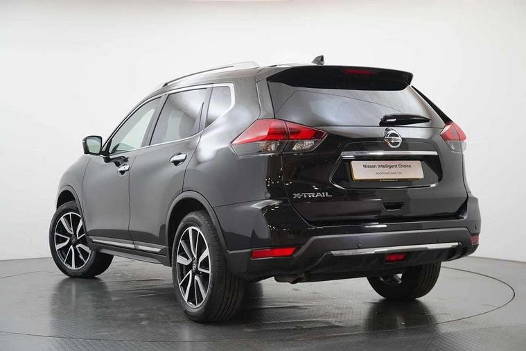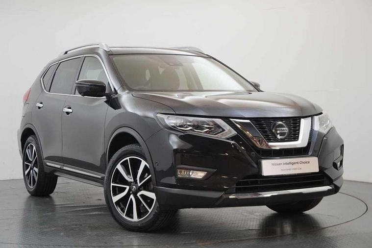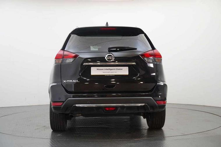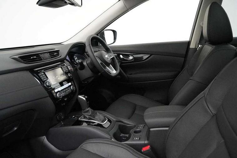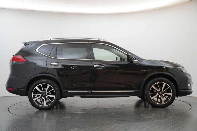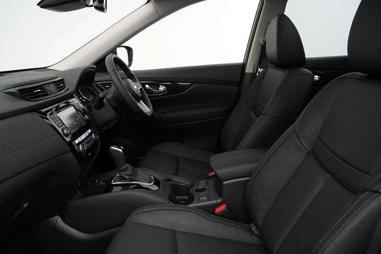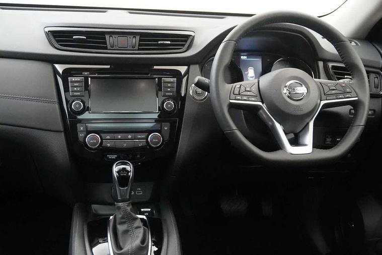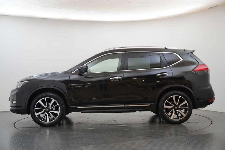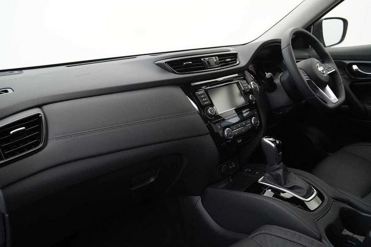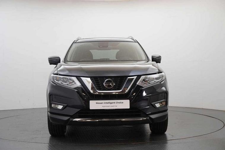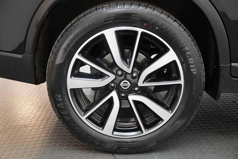 5" TFT driver information centre, Automatic tailgate opening, Blind spot monitoring, Bluetooth phone integration system, Cruise control + speed limiter, Driver attention alert system, Front and rear parking sensors, Intelligent around view monitor, Intelligent parking assist, Lane departure warning system, Moving object detection, Nissan connect evo 7" touchscreen navigation and entertainment system, PAS, Push button start, Rear cross traffic alert, Traffic sign recognition, Trip computer, Nissan chassis control (intelligent ride control, intelligent trace control, intelligent engine brake), DAB Digital radio, Radio/CD, Smartphone apps, Steering wheel mounted audio controls, USB/aux input socket, Adaptive front lighting system, Anti dazzle rear view mirror, Automatic headlights, Automatic rain sensing wipers, Black honeycomb front grille, Body colour door mirrors, Chrome door handles, Chrome side mouldings, Chrome window surround, Electric folding door mirrors, Electric heated door mirrors, Front and rear electric windows, Front fog lights, LED daytime running lights, LED Headlights, Panoramic sunroof with one touch shade, Rear privacy glass, Satin silver roof rails, Shark fin roof aerial, 3 rear headrests, 60/40 split rear bench seat, Centre console storage box/armrest, Configurable luggage board system, Driver's electric lumbar adjustment, Dual zone climate control, Electric adjustable front seats including height adjust, Front and rear door pockets with bottle holders, Front cupholders, Front/rear armrests, Heated front seats, Heated rear seats, Height adjustable front headrests, Individual rear reading lights, Isofix child seat attachment, Leather D shaped steering wheel, Leather steering wheel and gear knob, Pollen filter, Tilt/telescopic adjustable steering wheel, 3 point seatbelts on all seats, 6 airbags - Driver, front passenger, curtain and side airbags, ABS, Child locks on rear doors, EBD + Brake Assist, Electric parking brake, ESP + traction control, Intelligent emergency braking with pedestrian recognition, Seatbelt warning, Tyre pressure monitoring system, Immobiliser, Intelligent Key, Remote central locking, Thatcham Cat.1 alarm, Full size spare wheel,