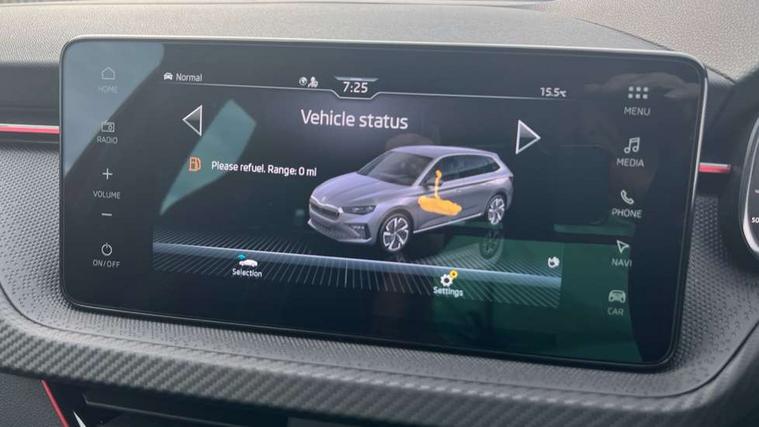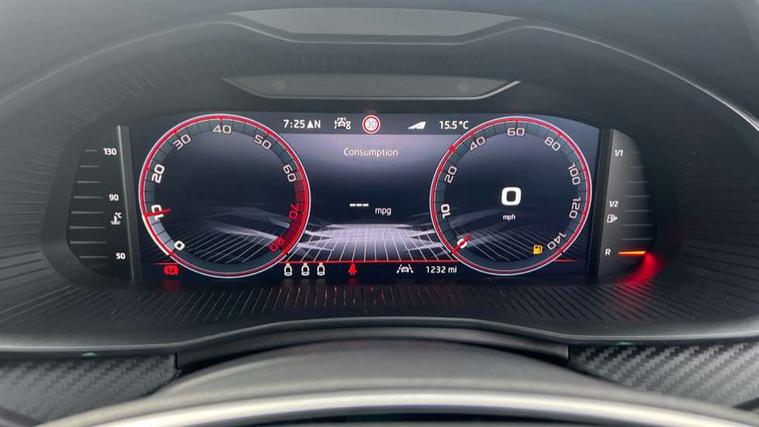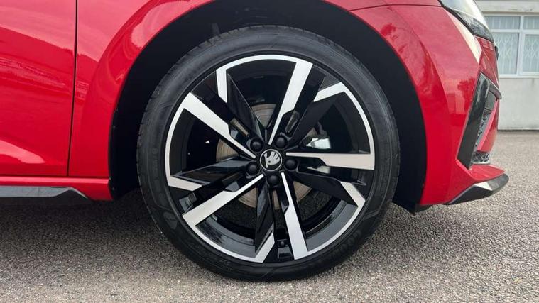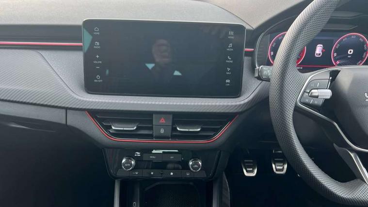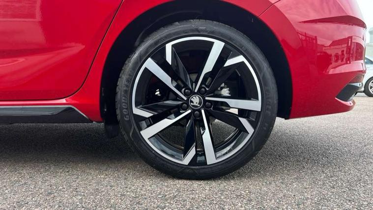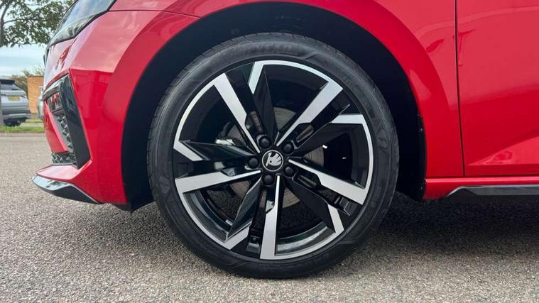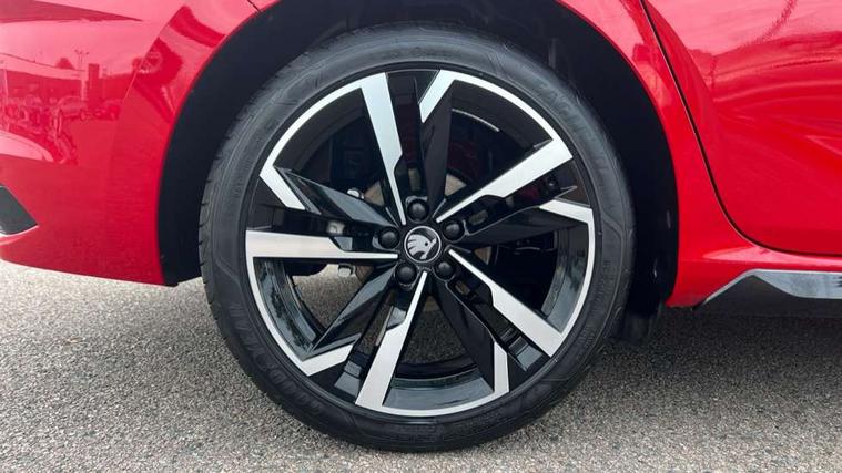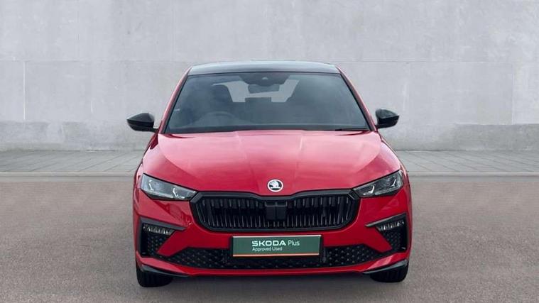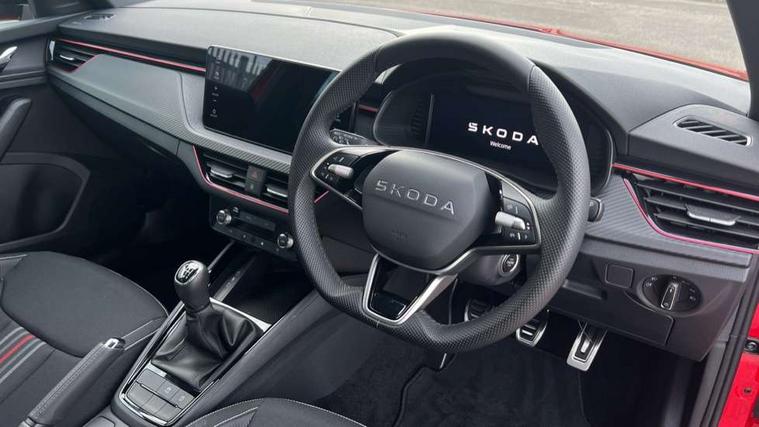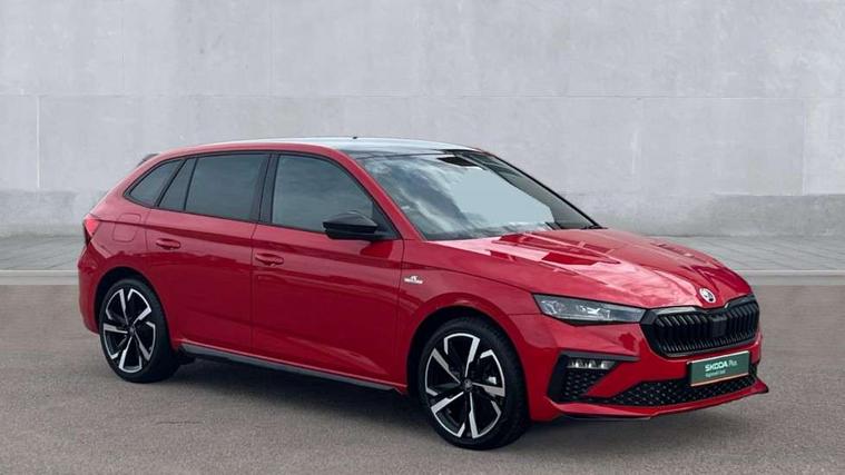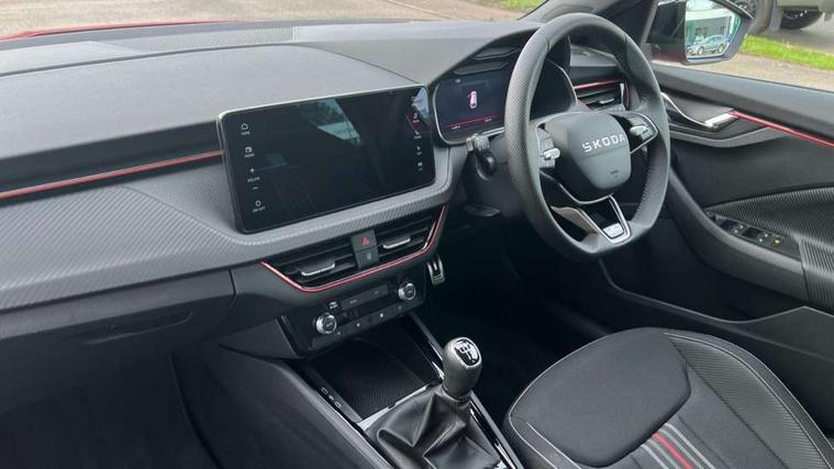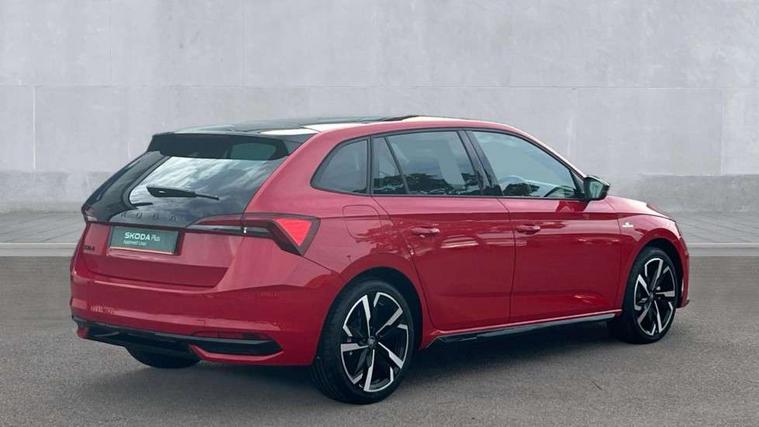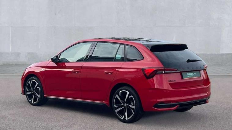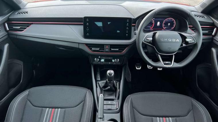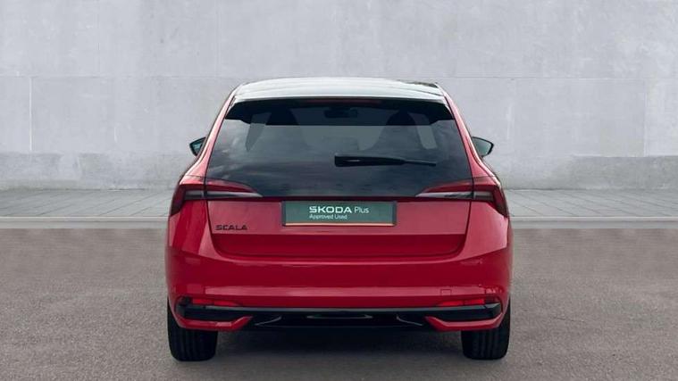 Advanced driver attention and drowsiness monitor, Bluetooth, e-Call (emergency call), Front assist system, PAS, Rear parking sensors, Speed limiter, Tailgate, Traffic sign recognition, Virtual Cockpit - 10.25" digital display, Voice control system, Wireless smartlink, 4 USB C ports, 8 Speakers, 9.2" Skoda navigation display, DAB radio, Auto dimming rear view mirror, Automatic headlamp activation with Coming home and Leaving home feature, Automatic high/low beam, Automatic intermittent wipers, Black door mirrors, Black lettering on boot lid, Black radiator grille, Black rear diffuser, Black roof spoiler, Body colour bumpers, Body colour door handles, Chrome moulding around grille, Extended tailgate glass, Front and rear electric windows, Heated rear window, LED 3rd brake light, LED brake lights, LED daytime running lights, LED high beam, LED low beam, Light sensors, Monte carlo plaque, Panoramic glass roof, Privacy glass, Rear LED fog light, Rear side wing doors, Rear wiper, Tinted windows, 12V socket in luggage compartment, 3 seat bench in 2nd row, Aluminium pedals, Ambient lighting in white/red, Black / White armrest stitching, Black ceiling, Black roof headlining, Cargo elements, Chrome inner door handles, Door inserts in art.leather carbon, Driver and passenger sun visors with vanity mirror, Dual zone climate control, Front and rear roof lights, Front centre armrest, Front head restraints, Height adjustable driver seat, Height adjustable passenger seat, Ice scraper, Illuminated glove compartment, Inner circulation control with pollen filter, ISOFIX for front passenger seat, Isofix preparation for back seats, Leather gearknob and handbrake lever, Luggage net under rear parcel shelf, Manual lumbar support for front seats, Monte carlo cloth upholstery, Net package and top tether hooks in boot space, Pocket on the back of both front seats, incl. mobile phone pockets, Rear centre armrest, Red hotstamping, Single front passenger seat, Sport seats, Textile floor mats, Third rear headrest, Ticket holder, Top tether for front passenger seat, Umbrella in driver's door, Light and view plus pack - Scala, 3x3 point rear seatbelts, ABS, Child locks, Curtain airbags and front side airbags, Disc brakes, Driver and front passenger airbags, ESP, Hill hold control, Manual leather parking brake, One tone horn, Passenger airbag switch off function, Seatbelt reminder for driver and front passenger, Tyre pressure monitoring system, Anti theft alarm system with interior monitoring, backup horn and towing protection, Anti-theft wheel bolts, Remote central locking with 2 remote folding keys, SAFE function for remote central locking, Carbon effect decorative inserts, 18" Ursa black diamond cut alloy wheels,