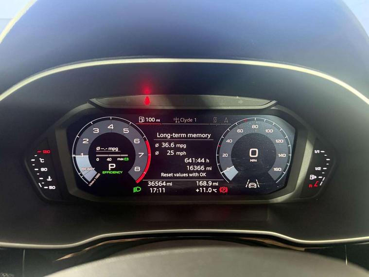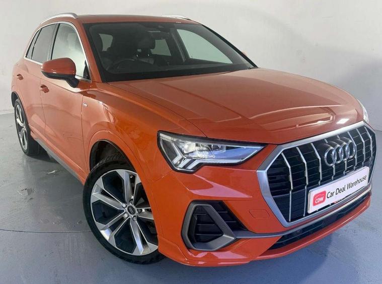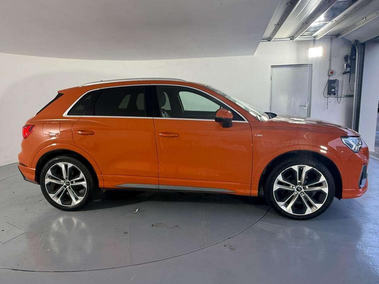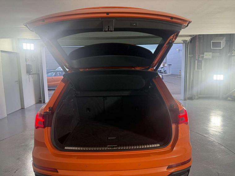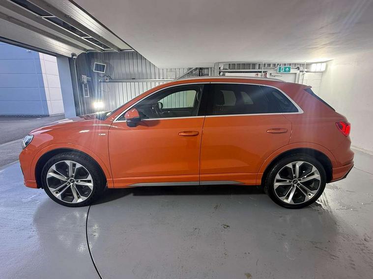 Audi connect safety and service (e-call), Audi drive select, Audi lane departure warning, Audi side assist, Audi smartphone interface, Audi Virtual Cockpit - 10.25" display, Bluetooth interface, MMI navigation plus with MMI touch, Power opening/closing tailgate, Progressive steering, Service interval indicator, Stop/start system, Voice control system, DAB digital radio module, Acoustic windscreen, Aluminium roof rails, Aluminium window trim, Auto dimming rear view mirror, Body colour door mirrors, Body coloured bumpers, Diffuser in matt Platinum grey, Electrically adjustable and heated door mirrors with integrated LED side indicators, Front and rear electric windows, Front fog lights, Front side air inlets in matt platinum grey, Front spoiler blade in matt platinum grey, Grille vertical bars in aluminium silver/Matt, High gloss black finish B and C pillars, Privacy glass, Rain and light sensors, Rear diffuser strip in selenite silver, S Line badge on wings, S Line front and rear bumpers, Side skirt insert in matt Platinium grey, Titanium black radiator grille, 12V socket in rear centre console, 40:20:40 split folding rear bench seat, Adjustable rear seat bench/backrest with centre armrest and cupholder, Aluminium door sill trims, Black cloth headlining, Dual zone climate control, Front and rear black floor mats with contrast stitching in rock grey, Front and rear headrests, Front centre armrest with storage compartment and angle adjustment, Illuminated door sill trims with S logo, ISOFIX child seat mounting and Top Tether with front passenger airbag deactivation, Perforated leather gearknob, Stainless steel luggage compartment sill finisher, Stainless steel pedals, Non smoking pack - Q3, 3x3 point rear seatbelts, 6 airbags - Driver, front passenger, curtain and side windows, Audi pre-sense front with pedestrain and cyclist recognition, Electronic stabilisation control including ABS, ASR and EDL, Hill hold assist, Pre sense basic, Seatbelt monitoring, Tyre pressure warning, Warning triangle and first aid kit, Anti theft alarm, Anti theft wheel bolts, Remote central locking, Dark matt brushed aluminium inlay, MMI touch colour display in gloss black with aluminium surround,