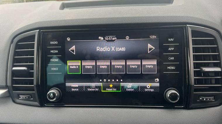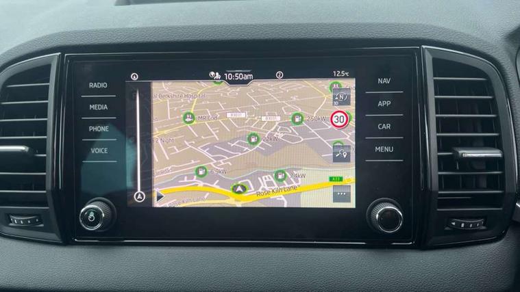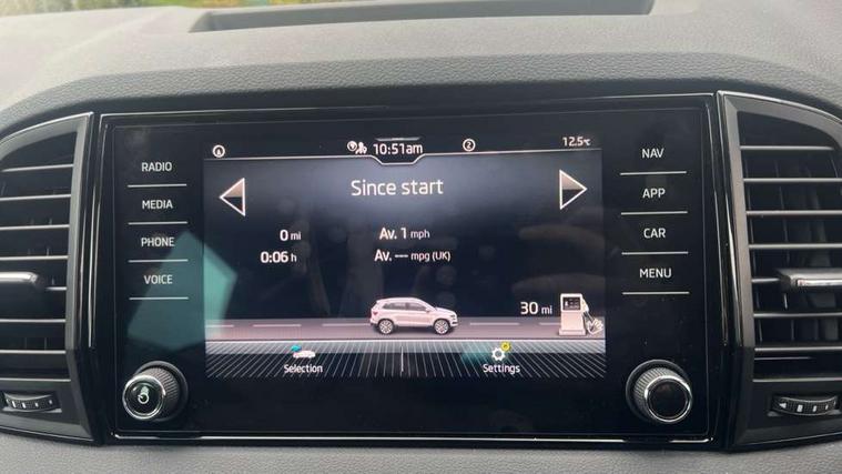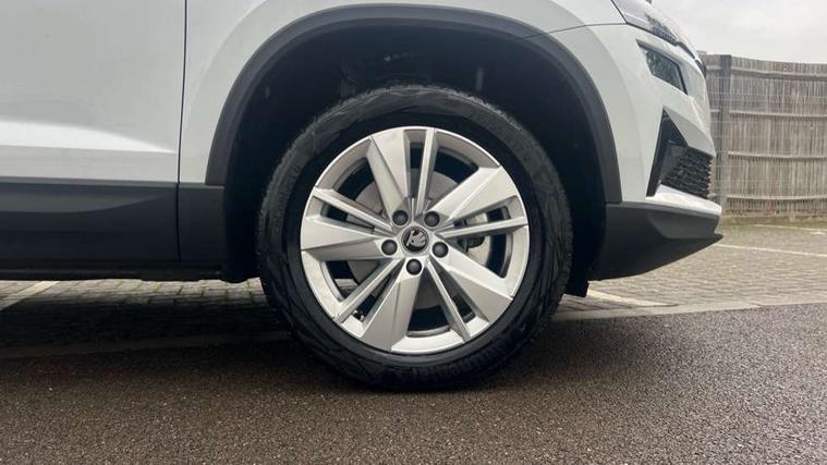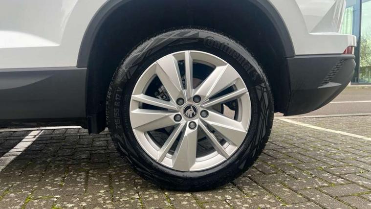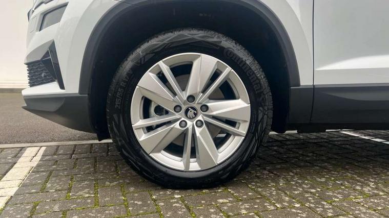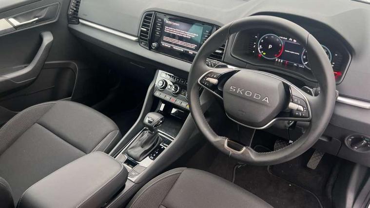 Advanced driver attention and drowsiness monitor, Amundsen navigation system with 8" touchscreen display and integrated WLAN and web radio, Electro-mechanical PAS, Emergency services call system, Lane assist, Outside temperature gauge, Sensor for driver assistance systems, Service interval indicator, SmartLink wireless for Apple and wired for Android, Start/stop system with regenerative braking, Traffic sign recognition, USB C Port x 2 in front centre console, Virtual Cockpit - 10.25" digital display, Wireless smartphone charging, 8 Speakers, DAB radio with Bluetooth, USB connection, Acoustic glass, Aero front windscreen wipers with intermittent function, Auto dimming rear view mirror with light and rain sensors, Black electric window control buttons, Body colour door mirrors and handles, Electric front and rear windows with child proof lock, Electrically adjustable heated folding and auto dimming door mirrors, Front fog lights, Headlight range control, Heated rear windscreen, LED daytime running lights, LED Headlights, LED rear lights with high functionality welcome effect and dynamic indicators, Light assistant (coming/leaving home/tunnel light), Plastic scuff plates in door apertures, Privacy glass, Rear side wing doors, Rear window wiper with washer system and intermittent control, Safety reflectors on front doors, Third brake light, Unique dark chrome design logo on alloy wheels, 1.5 litre bottle holders in driver and front passenger door panels, 12V socket in boot, 12v socket in front centre armrest with storage compartment and rear air vents, 2 spoke leather heated multifunction steering wheel with DSG paddles, 2 x Tablet holder, 3 rear height adjustable headrests, 3 seat bench in 2nd row, 4 foldable roof handles with rear coat hooks, Black floor carpet, Cargo elements in boot, Chrome inner door handles, Driver/front passenger reading lights, Foldable hooks in the boot, Folding tables on the front seat backrests, Front head restraints, Height adjustable driver and passenger seat, Height adjustable front three point seats belts with tensioners, Height/reach adjust steering wheel, Ice scraper, Illuminated glovebox, Illuminated luggage compartment, Interior noise suppression, Isofix child seat preparation for front passenger seat, Isofix child seat preparation outer rear, Loft fabric upholstery, Manual lumbar support for front seats, Pearl grey interior ceiling, Pen holder, Pollen filter, Rear boot cover, Rear package tray, Rear reading lights, Rubbish bin door, Safety vest holder, Single front passenger seat, Skoda lettering on steering wheel, Storage box in upper central dashboard closed, Sunvisors with illuminated vanity mirrors, Textile floor mats, Ticket holder, Umbrella under passenger seat, Under passenger seat storage compartment, Non Smokers pack, Parking pack - Karoq, Winter pack with heated front seats - Karoq, Automatic door unlocking in case of crash, Automatic fuel cut off in case of crash, Driver airbag, Electronic parking brake with auto hold function, Emergency rear braking signal, ESC (incl. ABS+MSR+ASR+EDS+HBA+DSR+RBS+MKB), Front assist, Front side airbags, Head airbags, Hill hold control, Knee airbags, Passenger airbag with switch-off function, Pedestrian monitor, Power operated child safety locks, Seatbelt reminder signalisation and pretensioner for all seats, Three point seatbelts rear, Two tone horn, Tyre pressure monitor, Alarm with interior monitoring, back up horn and tilt sensor with safe function, Electronic engine immobiliser, Keyless entry and start/stop, Remote central locking with 2 remote folding keys, Anodized cross door decor, Black centre console, Chrome framed air vents, Satin black dashboard, Satin black door trim, Anti-theft wheel bolts protection, Breakdown and tool kit,