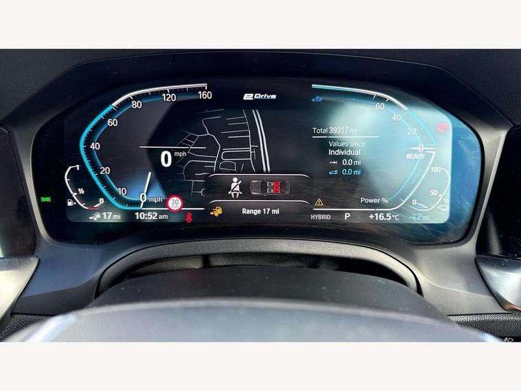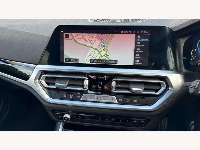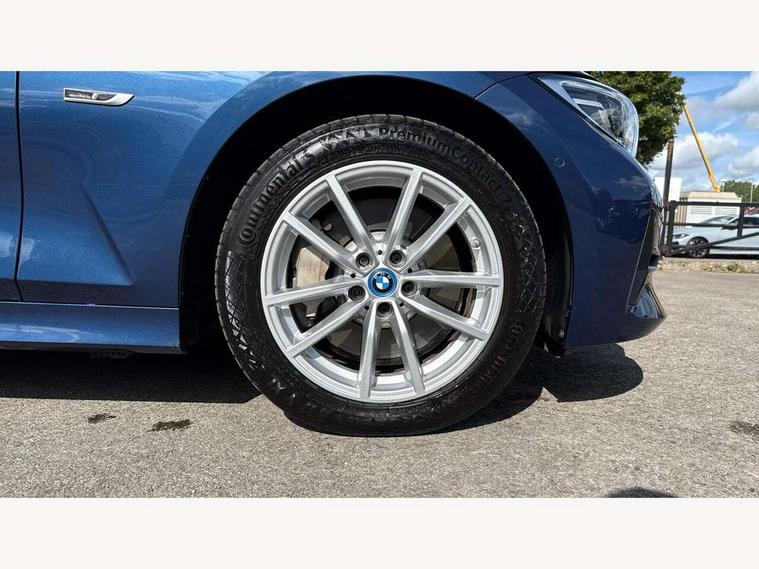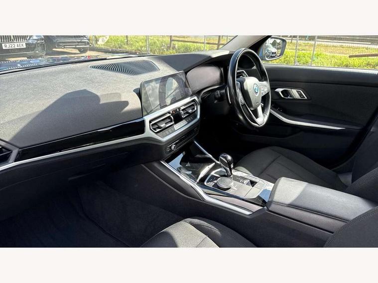 Active guard plus, Attentiveness assist, Auto start-stop, Bluetooth hands free facility with USB audio interface with audio streaming, BMW iDrive controller on centre console, BMW Live Cockpit Professional Nav with 12.3" instrument display + 10.25" display, Intelligent Voice Assist, BMW OS 7, HDD, 2USB, 4G LTE connect, BMW service history, BMW Teleservices, Brake pad wear indicator in front and rear, Check Control warning system for monitoring of lights and door/luggage compartment open warning, Condition based service, Cruise control with brake function + speed limiter, Electric power steering with Servotronic steering optimised at all speed ranges, Instrument cluster with speedometer with mph readout, tachometer, fuel gauge and oil temperature gauge, Integrated owners handbook, Oil sensor for level and grade, warning by check control system, On board computer - average speed+fuel consumption, service interval, clock/date, odometer/trip meter, outside temperature display and ice warning, Optimum shift indicator, Personal Profile - automatic lock when driving away selectable, Balanced 50/50 weight distribution, Battery cut-out switch, Charging cable - Mode 2, Drive performance control - ECO PRO, comfort and sport modes, Petrol Particulate Filter, Stroke dependent dampers, DAB tuner, Electronic service booklet, Acoustic glazing, Active airstream chrome frame kidney grille with 8 high gloss black vertical slats, Automatic headlight beam throw control with load dependent regulating reaction, dynamic compensation of braking dive and acceleration squat, Black roof mouldings, Body colour door handles, Body colour front and rear bumpers, Body colour fuel filler flap, Body colour mirror caps with bottom segment in matt black, Dynamic brake lights, Electric windows - front and rear, with open/close fingertip control, anti-trap facility and comfort closing, Exhaust tailpipe - split left and right, Exterior mirrors - electrically folding with anti-dazzle, Fading support, Front and rear bumper system with replaceable deformation elements, Front black door sill finishers with BMW designation, Green tinted heat protection glazing, Interior rear view electrochromatic mirror with automatic anti dazzle function, LED daytime running lights, LED front fog lights, LED third brake light, Lightweight engineering, Matt black exterior B pillar, Model designation on right side of tailgate, Rain sensor with automatic headlight activation, Rear boot, Rear side wing doors, Shark fin antenna, Two part LED tailights in L-shape with components in smoked glass, brake light, LED turn indicator and rear fog light, Visible VIN plate, Welcome lights in interior and door handle area, Windscreen wipers with integrated washing jets, 12V power socket in front storage compartment, 2 front cupholder in centre console with clamping elements and matt black inlay, 3 rear seats with non folding headrests with 3 point seat belts, 3 seat bench in 2nd row, 3 zone automatic air conditioning, 4 pieces lashing eyelets in luggage compartment, 40:20:40 split folding rear seat with loading system, Ambient lighting with welcome carpet light, Armrest integrated in front and rear door trim + front centre console armrest, Centred top Luggage compartment lights, Four grab handles integrated in roof lining, Front and rear door exit lighting (left / right), Front and rear door pockets, Front and rear reading lights, Front and rear velour floor mats, Front head restraints, Height adjustable mechanically and infinitely variable steering column, Illuminated armrest storage compartment, Illuminated glove compartment with separate small compartment, Interior lighting - front centre over interior mirror with soft light, rear centre and front and rear footwell lighting, Make-up mirror lights, Rear centre armrest with 2 cupholders, Rear centre console with storage compartment and ventilation grille, Single front passenger seat, Standard seat for driver and passenger with manual adjustment, Sunvisors with vanity mirrors and ticket pocket, Three spoke multifunction sport leather steering wheel, Toolkit located in luggage compartment, Connected pack professional - 3 Series Saloon/Touring, 2 tone horn, BMW emergency call, Brake energy regeneration, Braking pre-tensioning, Child proof locking system in rear door, Child seat ISOFIX attachment rear outer seats, Coasting in idle in ECO PRO mode, Crash sensor activating of airbags, Unlocking doors, hazard warning lights, fuel cut off, interior lighting+activation of safety battery terminal clamp, Driver and front passenger side airbags, integrated in the door side seat backrest bolsters for all seat variants, Driver/Front Passenger airbags, Dry braking, Dynamic brake control, Dynamic stability control + (DSC+) - Anti-lock Braking System (ABS) with brake assist and cornering brake control + Automatic Stability Control (ASC), Dynamic Traction Control - DTC, Electric parking brake including automatic hold function and automatic release of the parking brake when driving off, Electronic differential lock control (EDLC), Front passenger manual airbag deactivation, Head airbags for all 4 outer seats, Hill start assist, Seat belt security check for driver and front passenger, Side impact protection, Three 3 point seat belts on all seats including front belt stopper, pyrotechnic belt tensioners and belt force limiters, Tyre pressure monitoring with three level warning strategy, Ventilated front and rear disc brakes, Warning triangle and first aid kit, Alarm system (Thatcham 1) with remote control and electronic engine immobiliser, Central locking switch for all doors, fuel filler cap and luggage compartment, Remote control with integrated key one button open/close vehicle and windows, sole opening of the luggage compartment lid and panic mode, Start/stop button with Comfort Go keyless engine start and auto Start/stop deactivation button, Reduced rolling resistance tyres,