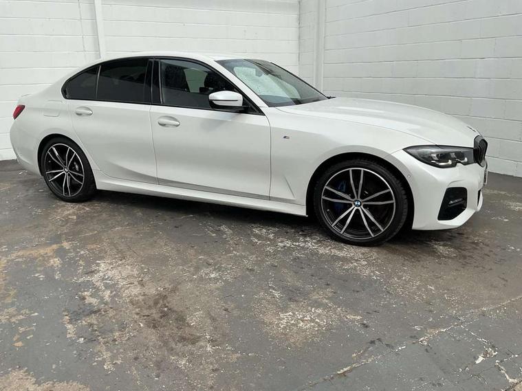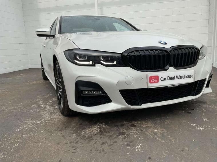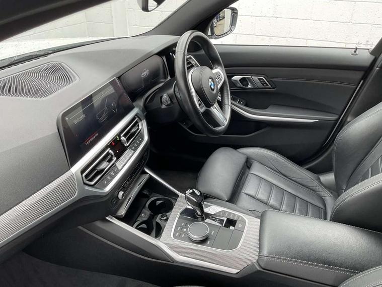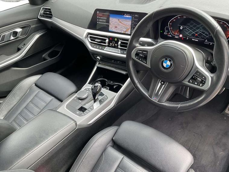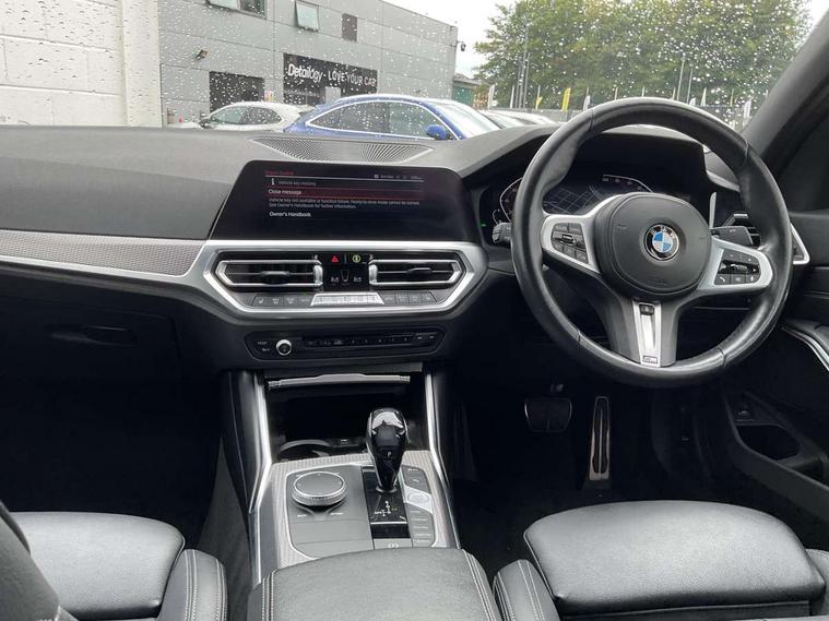 Active guard plus, Attentiveness assist, Bluetooth hands free facility with USB audio interface with audio streaming, BMW Live Cockpit Professional Nav with 12.3" instrument display + 10.25" display, Intelligent Voice Assist, BMW OS 7, HDD, 2USB, 4G LTE connect, BMW service history, BMW Teleservices, Brake pad wear indicator in front and rear, Check Control warning system for monitoring of lights and door/luggage compartment open warning, Condition based service, Cruise control with brake function + speed limiter, Electric power steering with Servotronic steering optimised at all speed ranges, iDrive controller on centre console, Instrument cluster with speedometer with mph readout, tachometer, fuel gauge and oil temperature gauge, Integrated owners handbook, Oil sensor for level and grade, warning by check control system, On board computer - average speed+fuel consumption, service interval, clock/date, odometer/trip meter, outside temperature display and ice warning, Optimum shift indicator, Personal Profile - automatic lock when driving away selectable, Variable sport steering, 48V Mild hybrid technology, Balanced 50/50 weight distribution, Battery cut-out switch, Diesel particulate filter, Drive performance control - ECO PRO, comfort and sport modes, Incorrect fuelling protection, Larger capacity fuel tank, M sport suspension, Stroke dependent dampers, DAB tuner, Electronic service booklet, Stereo speaker system with 2 mid range speakers in the front door trims and rear parcel shelf + 2 central bass speakers underneath the front seats, Acoustic glazing, Active airstream chrome frame kidney grille with 8 high gloss black vertical slats, Automatic headlight beam throw control with load dependent regulating reaction, dynamic compensation of braking dive and acceleration squat, Black roof mouldings, Body colour door handles, Body colour front and rear bumpers, Body colour fuel filler flap, Body colour mirror caps with bottom segment in matt black, Dynamic brake lights, Electric windows - front and rear, with open/close fingertip control, anti-trap facility and comfort closing, Exhaust tailpipe - split left and right, Exterior mirrors - electrically folding with anti-dazzle, Fading support, Front and rear bumper system with replaceable deformation elements, Front black door sill finishers with BMW designation, Green tinted heat protection glazing, High gloss shadow line exterior trim, Interior rear view electrochromatic mirror with automatic anti dazzle function, LED daytime running lights, LED front fog lights, Lightweight engineering, M designation on front side panels, left and right, Matt black exterior B pillar, Model designation on right side of tailgate, Rain sensor with automatic headlight activation, Shark fin antenna, Two part LED tailights in L-shape with components in smoked glass, brake light, LED turn indicator and rear fog light, Visible VIN plate, Welcome lights in interior and door handle area, Windscreen wipers with integrated washing jets, 12V power socket in front storage compartment, 2 front cupholder in centre console with clamping elements and matt black inlay, 3 rear seats with non folding headrests with 3 point seat belts, 3 zone automatic air conditioning, 4 pieces lashing eyelets in luggage compartment, 40:20:40 split folding rear seat with loading system, Ambient lighting with welcome carpet light, Anthracite headlining, Armrest integrated in front and rear door trim + front centre console armrest, Backrest width adjustment, Centred top Luggage compartment lights, Four grab handles integrated in roof lining, Front and rear door exit lighting (left / right), Front and rear door pockets, Front and rear reading lights, Front and rear velour floor mats, Front head restraints, Front sport seats, Heated front seats, Height adjustable mechanically and infinitely variable steering column, Illuminated armrest storage compartment, Illuminated glove compartment with separate small compartment, Interior lighting - front centre over interior mirror with soft light, rear centre and front and rear footwell lighting, M sport leather steering wheel, Make-up mirror lights, Rear centre armrest with 2 cupholders, Rear centre console with storage compartment and ventilation grille, Sunvisors with vanity mirrors and ticket pocket, Toolkit located in luggage compartment, Connected pack professional - 3 Series Saloon/Touring, M sport exterior styling pack - 3 Series Saloon/Touring, 2 tone horn, BMW emergency call, Brake energy regeneration, Braking pre-tensioning, Child proof locking system in rear door, Child seat ISOFIX attachment rear outer seats, Coasting in idle in ECO PRO mode, Crash sensor activating of airbags, Unlocking doors, hazard warning lights, fuel cut off, interior lighting+activation of safety battery terminal clamp, Driver and front passenger side airbags, integrated in the door side seat backrest bolsters for all seat variants, Driver/Front Passenger airbags, Dry braking, Dynamic brake control, Dynamic stability control + (DSC+) - Anti-lock Braking System (ABS) with brake assist and cornering brake control + Automatic Stability Control (ASC), Dynamic Traction Control - DTC, Electromechanical parking brake including automatic hold function and automatic release of the parking brake when pulling away, Electronic differential lock control (EDLC), Front passenger manual airbag deactivation, Head airbags for all 4 outer seats, Hill start assist, Seat belt security check for driver and front passenger, Side impact protection, Three 3 point seat belts on all seats including front belt stopper, pyrotechnic belt tensioners and belt force limiters, Tyre pressure monitoring with three level warning strategy, Ventilated front and rear disc brakes, Warning triangle and first aid kit, Alarm system (Thatcham 1) with remote control and electronic engine immobiliser, Central locking switch for all doors, fuel filler cap and luggage compartment, Remote control with integrated key one 
