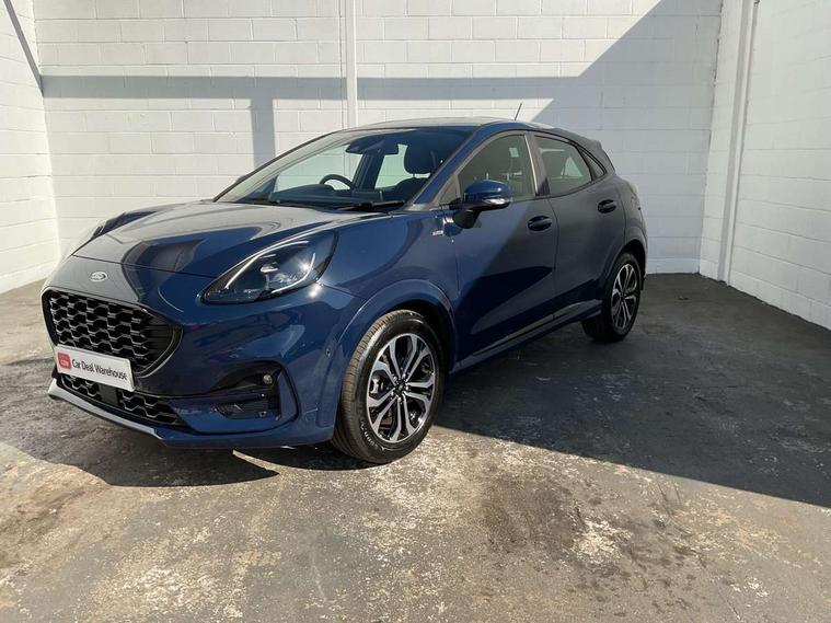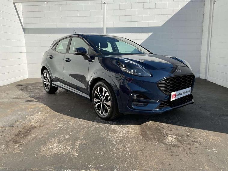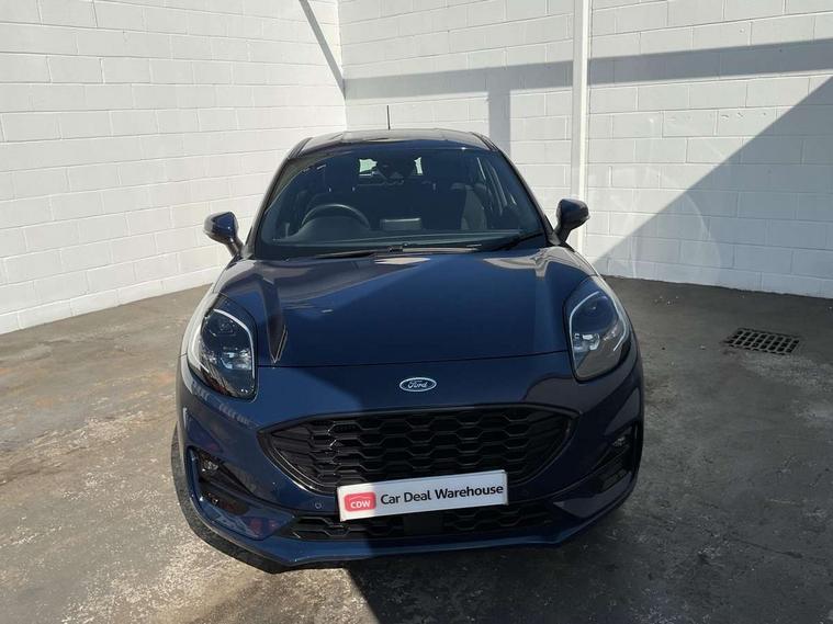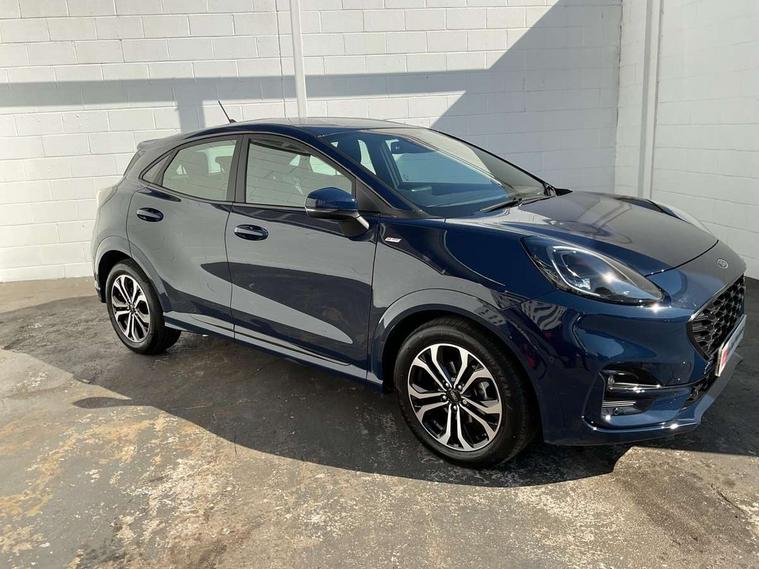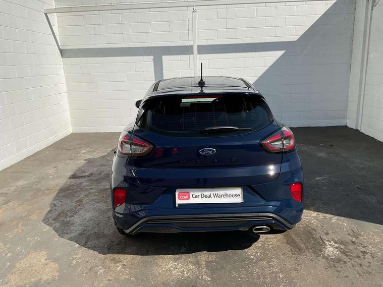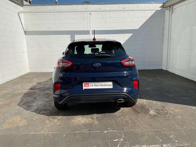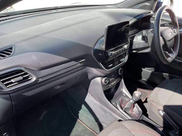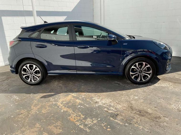 Driver impairment monitor, Emergency call service, Ford easy fuel, Full digital 12.3" instrument cluster, Lane keeping aid with lane departure warning, Power assist steering, Power start button, Rear parking sensor, Selectable drive modes(Normal, sport, Eco, trail, slippery), Speed sign recognition, Sport suspension, Automatic headlights with auto high beam, Automatic rain sensing wipers, LED rear lamps, Power foldable heated door mirrors with puddle lamps, Projector headlamps with LED day time running lights and front fog lamps, Quickclear heated windscreen, Rear side wing doors, Rear wiper, ST-Line body styling kit with unique grille, Third brake light, 3 seat bench in 2nd row, Centre console with armrest and stowage, Ford megabox extended bootspace, Front and rear head restraints, Front floor mats, Manual 2 way passenger seat adjustment, Manual 4 way driver seat adjust with lumbar adjustment, Single front passenger seat, ST- Line cloth trim with red stitching, ST-Line flat bottomed sensico leather steering wheel with leather handbrake and aluminium gear knob, Ford SYNC 3 navigation pack - Puma, 3 rear seatbelts, Child safety lock, Electronic stability control (ESC) and hill start assist, Pedestrian/cyclist detection & post-collision braking, Pre collision assist system, Tyre pressure monitoring system (TPMS), Thatcham alarm,
