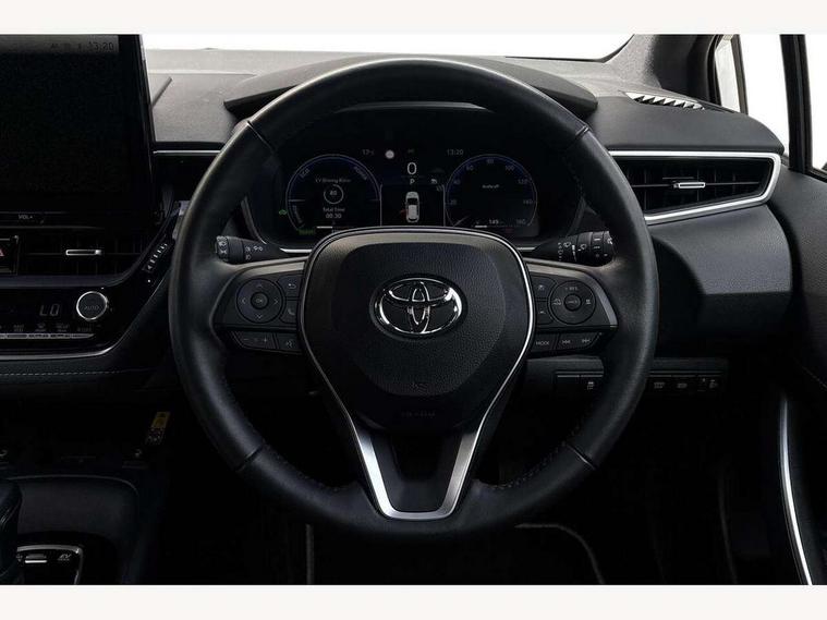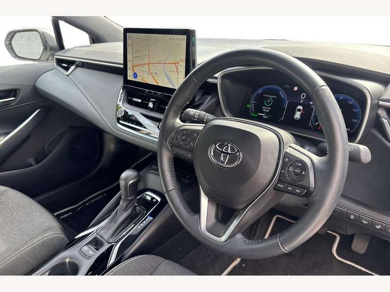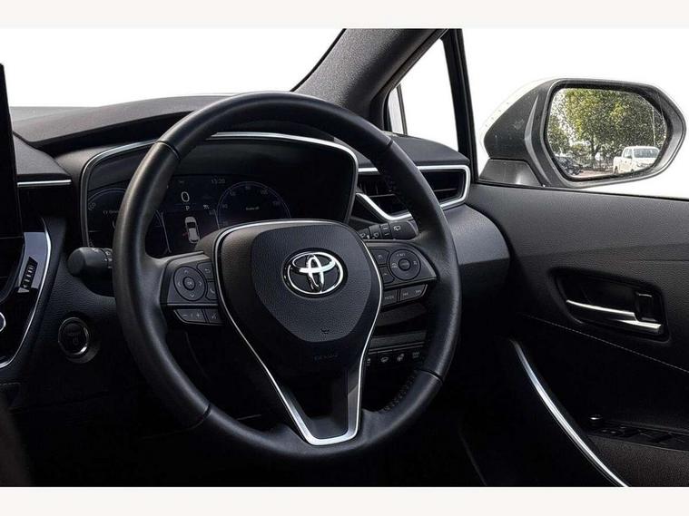 10.5" Multimedia display screen, Bluetooth telephone connectivity, Connected car functionality upgrade, tracker, remote status and e-care, Drive mode select (Eco, Normal), E-call, Electrically assisted power steering, EV drive indicator, Front and rear parking sensors with auto brake, Full Digital 12.3" TFT Digital Combimeter, Key reminder warning, Lane Departure Alert (LDA) switch on steering wheel, Memory on adjustable speed limiter, MyT connected services, Proactive driving assist (PDA), Reversing camera, Smart entry and push button start, Smartphone integration with Apple CarPlay and wired android auto, Tailgate, Toyota remote services, Toyota smart connect navigation, Wireless charger, Gasoline particulate filter, Vehicle Stability Control (VSC), 6 speakers, AM/FM radio, DAB Digital radio, Front USB-C in dashboard, Smart voice assist/ Voice recognition, USB and Aux in connectors + 12V front outlet, Anti-jam protection on power windows, Auto up and down function on all power windows, Automatic headlights with high beam assist, Black centre and side air vents, Black meshed front grille, Black toyota logo in front, Body coloured bumpers, Body coloured door mirrors, Body coloured front spoiler, Body coloured outside door handles, Body coloured rear under guard, COROLLA alloy door scuff plates, Follow me home headlights, LED daytime running lights, LED front fog lights, LED High mounted stop light, LED multi beam headlights, LED multi reflector in headlights, LED rear combi lights with LED lightguide, Manual day/night rear view mirror, Manual headlight levelling system, New grille pattern, Noise reduction layer on windscreen, Piano black diffuser, Power adjustable heated door mirrors, Power front windows, Power rear windows, Rain sensor, Rear side wing doors, Rear window defogger, Rear window wiper, Satin chrome insert on front air vents, Satin chrome insert on front door assist grips, Shark fin antenna, Time adjustment on intermittent wiper, Turning signal integrated indicators in door mirrors, Unique lower skirt, Unique side rocker with black insert, UV-filter on driver and passenger windows, 2 Shopping bag hooks in luggage compartment, 3 rear headrests, 3 seat bench in 2nd row, 3 spoke leather steering wheel with satin insert + gear knob, 4 tie down hooks in luggage compartment, 60/40 split folding rear seat, Adaptive cruise control (ACC) switch on steering wheel, Adjustable speed limiter switch on steering wheel, Audio, multimedia and telephone switches on steering wheel, Black armrest on centre console box, Black gear shift console, Boot light, Centre room light, Driver and front passenger personal light, Driver and passenger assist grip, Driver and passenger sun visor with mirror and light, Dual zone automatic air conditioning with ECO mode switch, Fabric upholstery, Front and rear cup and bottle holders, Front door pockets, Front head restraints, Front passenger seat, Front sliding fabric armrest, Heated seats, Illuminated entry system in room lamp, ISOFIX seat fixing (2 fixings on rear outer seats), Leather gear shift with satin chrome on gear shift console, Manual height adjustable for driver and front passenger seat, Manually tilt with sliding driver and front passenger seat, Parcel shelf, Passenger seat back pocket, Pollen filter, Power adjustable lumbar support on driver seat, Power window switches with satin chrome inserts, Rear armrest with 2 cupholders, Rear passenger coat hooks (2), Remote air conditioning, Satin chrome inside door handles, Satin chrome surround on heater control panel, Satin chrome surround on speedometer, Sliding armrest on centre console box, Slow opening glovebox with lights, Textile floor mats, Tilt/telescopic steering column, Voice recognition switch on steering wheel, Whiplash Injury Lessening (WIL) feature (active headrest) for seats, Toyota safety sense 3 pack - Corolla, 3x3 point rear seatbelts, Adjustable driver and front passenger seat belt extender to top anchor point, Anti lock braking system + Electronic brake force distribution, Brake assist function, Child locks on rear doors, Downhill Assist Control (DAC), Electronic parking brake, Emergency brake light signal (EBS), Front passenger airbag on/off switch, Front seatbelt reminder, HAC - Hill start assist control, Rear seat belt reminder, Seatbelt pretensioners and force limiters, Supplemental restraint system (SRS) 7 airbags - dual driver, dual side curtain, side impact and driver knee airbags, Traction control, Tyre pressure warning system, Acoustic vehicle alert system (AVAS), Alarm with motion sensor and immobilizer, Power passenger window lock, Remote central locking + deadlocks, Satin chrome dash trim, Soft touch texture on upper dashboard, Stitching on lower dashboard, 16" 5 double spoke alloy wheels, Tyre repair kit, Unique wheel finish with red wheel cap,