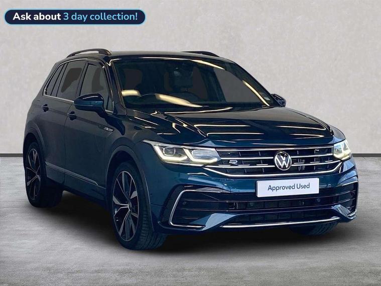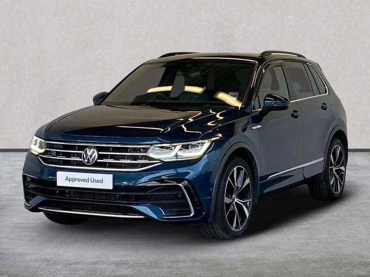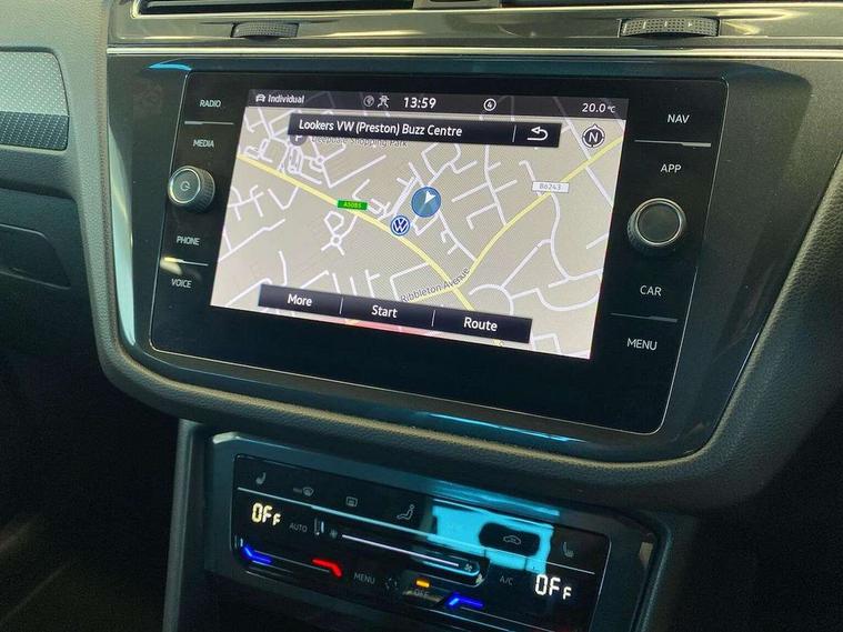Adaptive cruise control ACC stop and go including speed limiter, App-Connect incl. App-Connect Wireless for Apple CarPlay and Android Auto, Bluetooth phone integration system, Distance control assist, Driver alert system, Driver profile selection, Dynamic road sign display, eCall emergency call system, Electromechanical speed sensitive power steering, Engine start/stop button, Lane keeping system Lane Assist, Lights on warning, Multifunction front facing camera, Outside temperature display, Premium multifunction display with multi colour display, Remote control boot opening, Rev counter, Revision / skills operating concept travel assistant, Service interval indicator, Speed limit display, Start/stop system with regenerative braking, Trip computer, Warning sound and light for doors and tailgate open, All wheel drive - 4Motion, Battery regeneration during braking, XDS electronic differential lock for improved traction and handling, 4 X 20 watt output, 8 Speakers, Diversity antenna for FM reception, Radio, SD card slot, Simultaneous pairing of 2 compatible mobile devices, SMS functionality - read, compose and send SMS messages using touch-screen display, Title and cover art display, USB C ports, Auto dimming interior rear view mirror, Automatic headlight control system, Body colour door handles, Chrome moldings on the side windows, Coming/leaving home lighting function, Dynamic headlight range control, Front and rear electric windows, Heated rear window, High level 3rd brake light, Laminated safety glass windshield, heat and sound insulating, LED headlamps with LED separate daytime running light and dynamic cornering light, LED rear combination lamps, LED rear number plate lights, License plate carrier in front and rear, Poor weather light and cornering light, R Line body kit, R Line side sills, Rain sensor windscreen wipers, Rear exhaust tailpipe, Rear fog lamp, Rear side wing doors, Rear spoiler in R style, Rear windscreen washer and wiper with interval delay, Side and rear windows in heat insulating glass, Trailer Stability Programme, Unique R Line badging, Windscreen wipers/ intermittent wipe + 4 position delay, 12V outlet in center console rear and in luggage compartment, 12V outlet in front and tray, 2 cup holders in front, 2 LED front reading lights, 2 LED rear reading lights, 3 bench rear seats in 2nd row, 3 rear headrests, 4 load lashing points, 40:20:40 split folding rear seats, Air Care Climatronic 3 zone automatic climate control with enhanced air filter and controls in the rear, Backrest release for left front seat, Black headlining, Brushed stainless steel pedals and footrest, Carpet mats in front and rear with decorative stitching in Gray, Climate control unit rear with touch function, Door and side trim panel in foam film, insert in leatherette, Front centre armrest, Front footwell illumination, Front seats head restraints (x-adjustment), Height adjustable front seats, Height/reach adjust steering wheel, Instrument lighting white adjustable panel illumination, Interior light with delay, Isofix Preparation 2 Rear child seats, Leather gear knob, Lockable cooled glovebox, Luggage compartment lighting, Luggage net, Rear bench seat asymetrically split folding, longitudinally movable and folding with load-through hatch and center armrest, Remote unlocking for rear seat backrest, Removable luggage cover, Removable rear headrests, Safety optimised front head restraints, Single front passenger seat, Sliding/reclining rear seats, Standard rear seat release, Storage compartment in driver's door, Storage compartment in passenger's door, Storage compartment in rear doors, Storage compartments in luggage area left and right, Storage tray on dashboard, Sun visors with illuminated vanity mirrors, Top front comfort seats, Variable boot floor, height adjustable and removable, Driver assistance pack plus - Tiguan DSG, 3 point seat belt for centre rear seats, 3 point seat belts with seat belt pretensioners for the outer rear seats, Active bonnet, Curtain airbags for front and rear passengers, Driver/Front Passenger airbags, Drivers knee airbag, Electronic parking brake with auto hold, Electronic Stability Control with driver steering recommendation, ABS, ASR, EDL, EDTC and trailer stabilization, Front assist with autonomous emergency braking (for Adaptive Cruise Control ACC up to 130 mph), Front disc brakes, Front passenger airbag deactivation, Front side airbags, Height adjustable front 3 point seatbelts + pretensioners, Hill hold control, Manual child proof rear door locks, Pedestrian monitoring system, Power assisted brakes, Proactive passenger protection system in combination with front assist, Rear disc brakes, Rigid safety cell with front and rear crumple zones, Two tone horn, Warning sound and light for front seat belts if unfastened, Anti theft alarm system with interior monitoring, backup horn and towing protection, Anti theft wheel bolts, Electronic engine immobiliser, Tool kit,