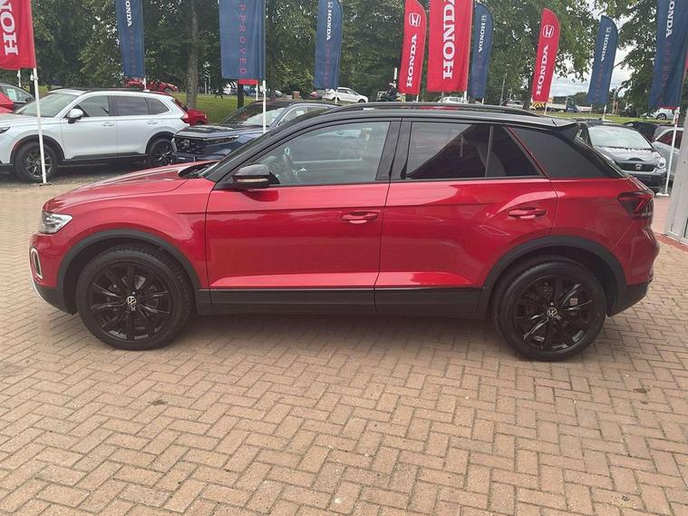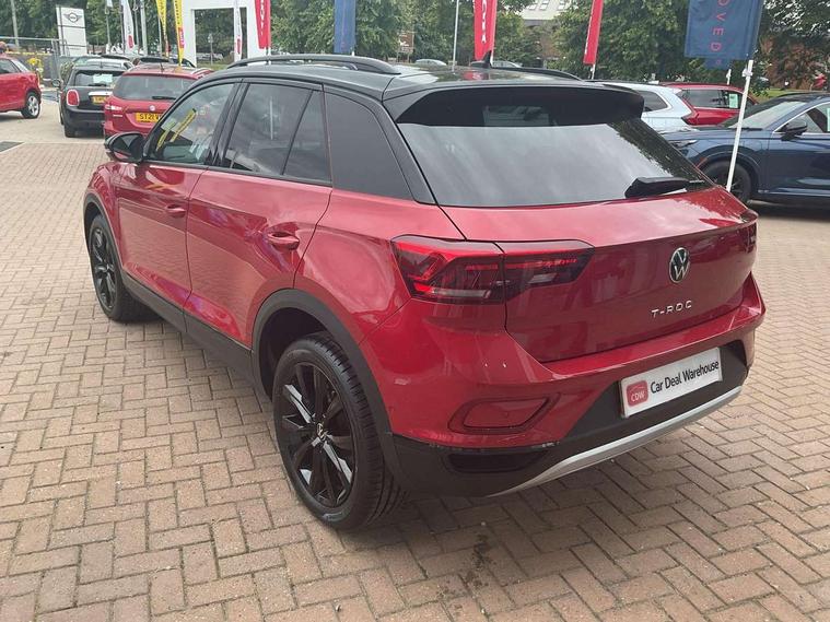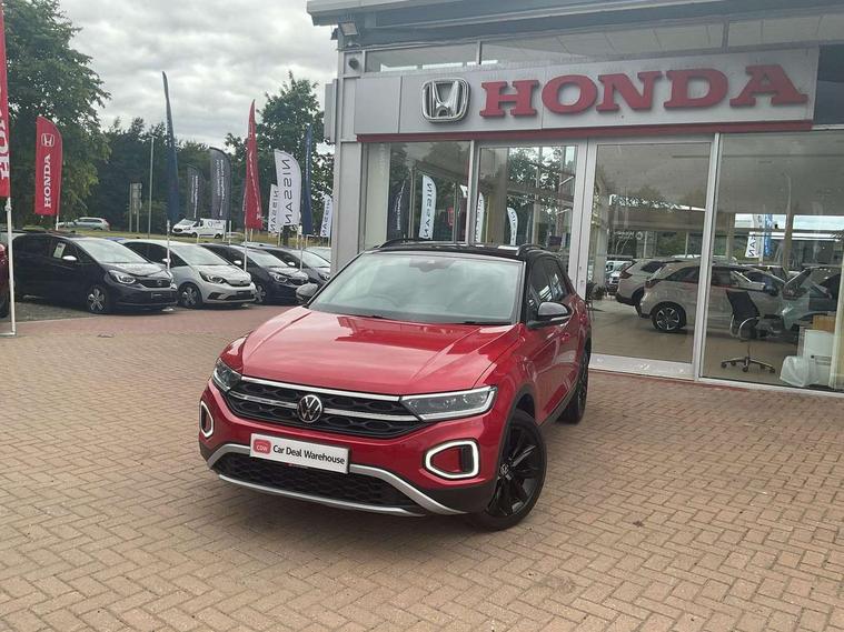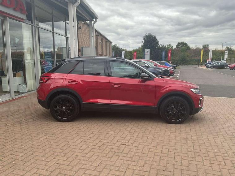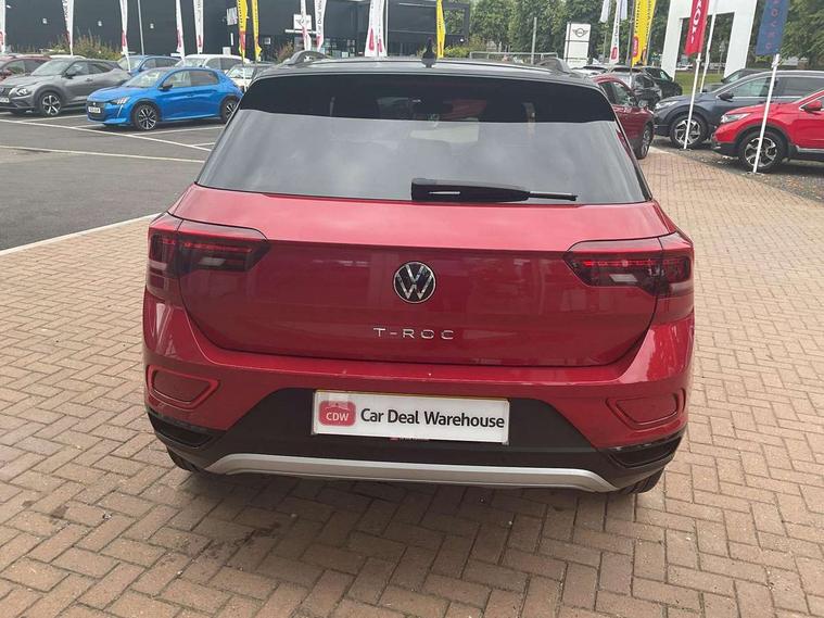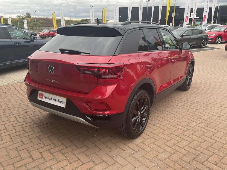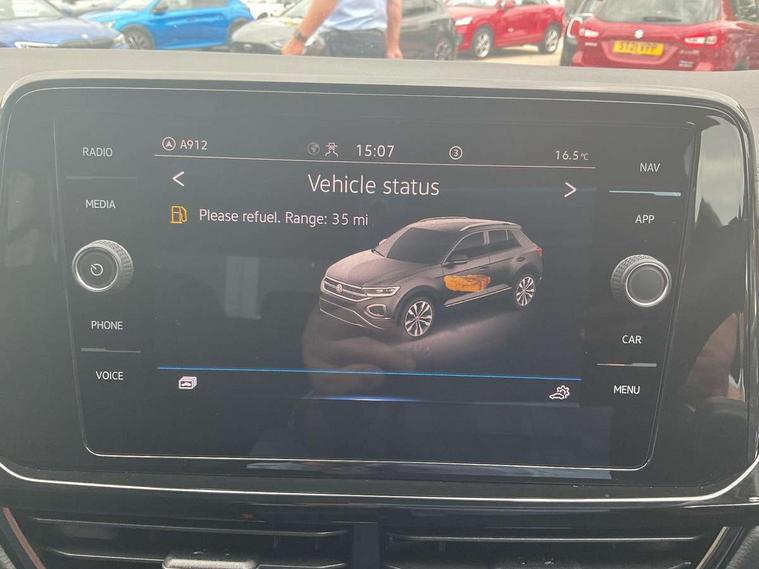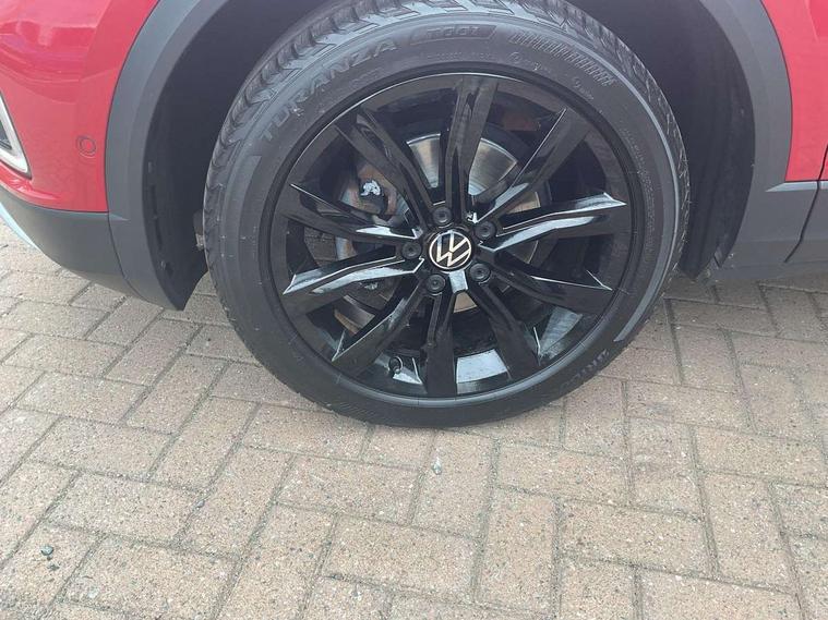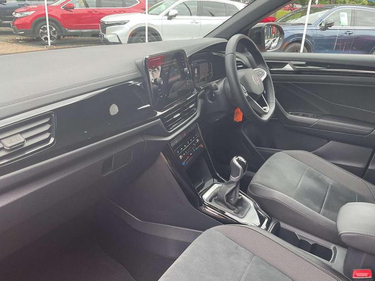 10.25" Digital cockpit pro, Bluetooth mobile phone interface, Driver alert system with fatigue detection, Driver tips and journey analysis, Dynamic road sign display, Emergency call service, Lane keeping system Lane Assist, Modified key software - reduce switch off time for key status change to Long no motion, Online services, Park assist including front and rear parking sensors, Power assisted speed sensitive steering, Service interval indicator, Tailgate/trunk lid release from outside, Think blue trainer driver tips and journey analysis, Warning sound and light for front seatbelts unfastened, Wireless app connect, Battery regeneration during braking, Front shock absorption, Rear shock absorption chassis with increased ride height, Start/stop function with battery regeneration, Diversity antenna for FM reception, Front and rear 6 speakers, Music playback - MP3, WMA and AAC files, Premium USB cable in choice of either Apple or Android smartphone compatibility, SD card slot, Simultaneous pairing of 2 compatible mobile devices, Title and cover art display, We Connect and We Connect Plus functionality, 3rd brake light, Auto dimming interior rear view mirror, Automatic hazard lights activation under emergency braking, Automatic headlight control with LED separate daytime running lights with coming/leaving home function, Body colour sports bumpers with silver metallic underbody fascia, Dynamic headlight range control with self adjusting whilst driving, Extended roof spoiler, Exterior mirrors aspherical on driver side, convex on front passenger side, External USB type C socket and charging sockets, Front windscreen wiper with intermittent wipe and 4 position delay, Heated rear window, LED Plus headlamps, LED rear combination lamps, LED rear number plate lights, LED tail lamp rear comination lamps, Light mode for poor weather, rain, fog or snow, Power windows with comfort operation and circuit breaker, Rain sensor, Rear exhaust tailpipe, Rear fog light on one side and reversing lights on both sides, Rear side wing doors, Rear wash/wipe with intermittent wipe setting, Remote electrically foldable door mirrors, puddle lights and reverse activated passenger's door mirror, 12V power socket in centre console, 3 rear head restraints, 3 seat bench in 2nd row, 4 load lashing points in luggage compartment, Air care climatronic air conditoning system with active combination filter and 2-zone temperature control, Chrome plated radiator grille inserts, air vent surrounds and light switch surrounds, Door and side trim panel with leatherette insert, Drawer under drivers seat, Front + rear carpet mats, Front centre armrest, Front comfort sports seats, Front cupholders x 2, Front footwell illumination, Instrument lighting, white adjustable panel illumination, Interior ambient lighting and surround lighting, Interior light delay, Isofix child seat preparation, Leather gearshift handle, LED interior light with switch off delay/dimmer and 2 front/rear LED reading lights, Load-through provision with cup holder when folded down ('Unsplit rear seat bench, split folding backrest, with centre armrest), Luggage compartment lighting, Non-folding front passenger seat backrest, Single front passenger seat, Storage compartment in left and right luggage area, Storage compartment in rear doors, Storage compartments in driver and front passenger doors, Sunvisors with illuminated vanity mirrors, Variable boot floor, height adjustable and removable, Driver assistance pack without proactive passenger protection - T-Roc, 3 point height adj front seatbelts + pretensioners, 3 point seatbelts in outer rear with ECE label, ABS, Child locks on rear doors, Driver and front passenger airbag with front passenger airbag deactivation, Driver and front passenger safety-optimised head restraints, Drivers seatbelt reminder, Electronic parking brake, Electronic Stability Control (ESC) inc EDL (Electronic Differential Lock) and ASR (Traction Control), Front and rear passengers curtain airbag system including front side airbags, Front assist with city emergency braking and pedestrian monitoring, Front disc brakes, Front seat side impact airbags, Predictive pedestrian protection, Rear disc brakes, Single tone horn, Tyre pressure loss indicator, Volkswagen roadside assistance, Alarm with interior protection, Anti-theft alarm system with interior monitoring, backup horn, and towing protection, Remote central locking with SAFELOCK, radio remote control with 2 remote control folding keys, Trims for alloy wheels,