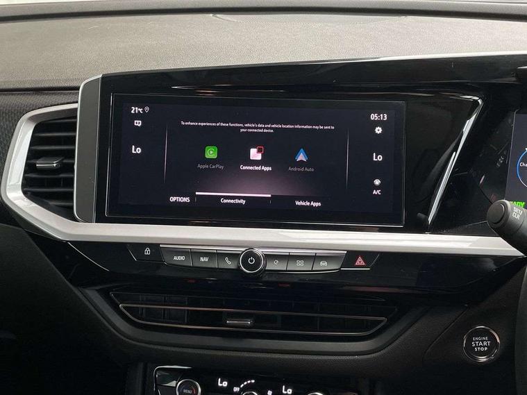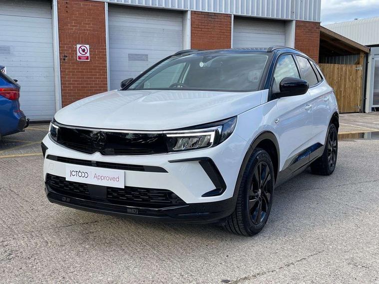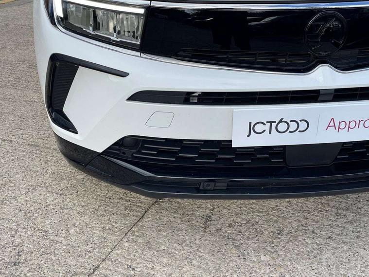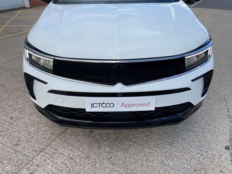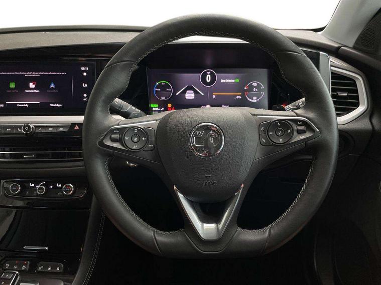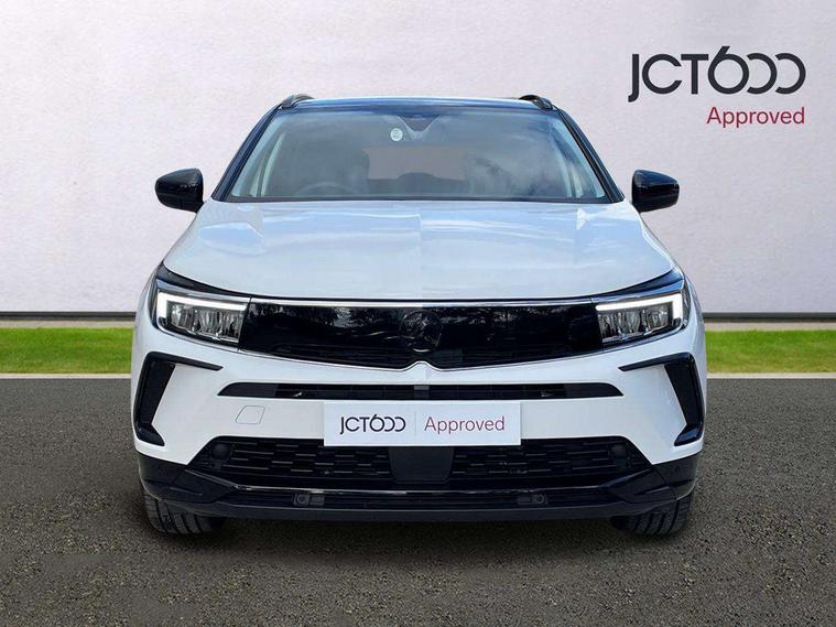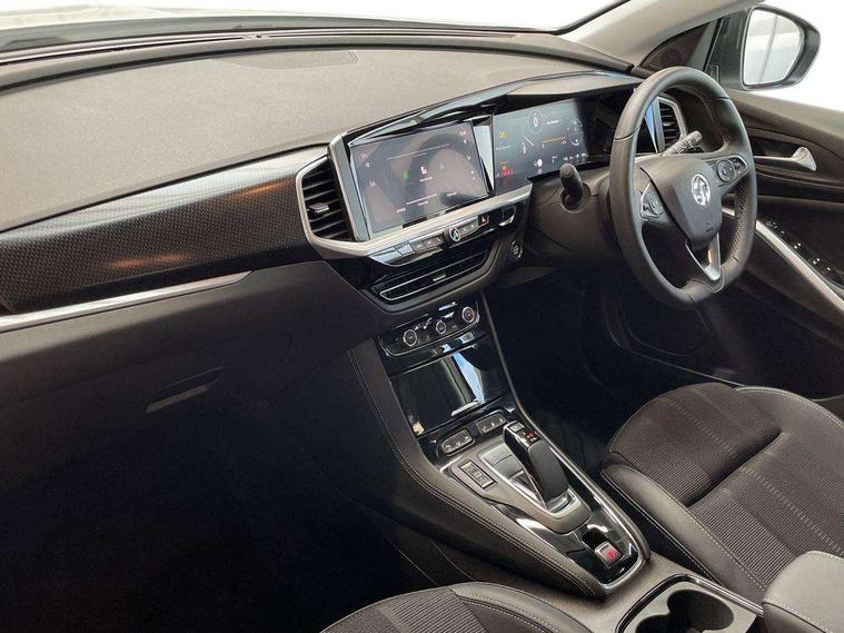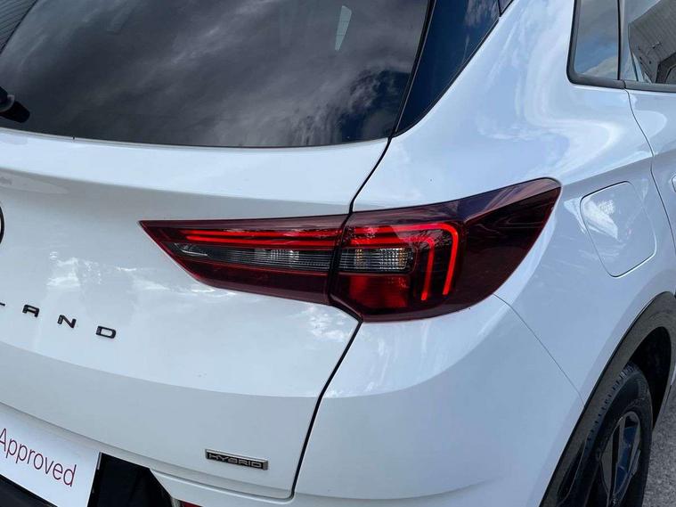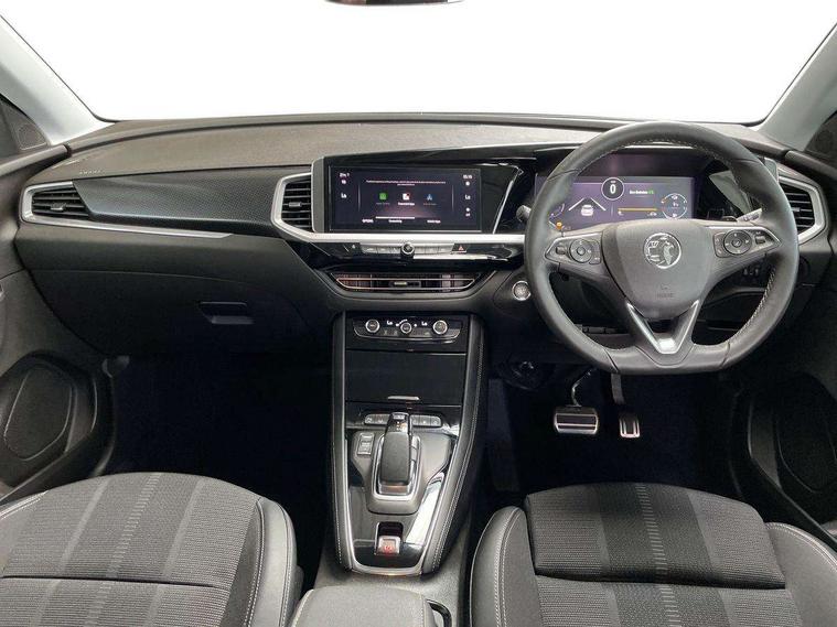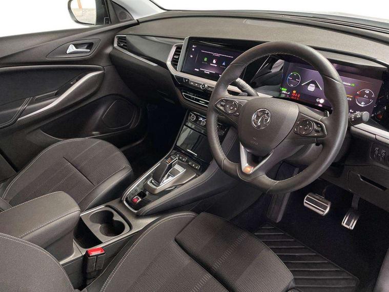 Central facia display with digital clock, outside air temperature and audio information, Digital fuel gauge with low fuel level warning light, Digital rev counter, Digital speedometer, Digital water temperature gauge with warning light, Drive mode selector (Electric, Hybrid, Sport), Driver drowsiness alert system, Driver information - Total mileage, service indicator, oil life, EV information display with powerflow, charge, e-save and statistics, Front and rear parking distance sensors with 180 degree rear view camera and advanced park assist, Gearshift up/down indication light, Highway integration assist (Lane positioning assistant and Adaptive cruise control), Lane departure warning system, Lane keep assist, Lights on audible warning, Multi function trip computer - Trip odometer, vehicle range, average speed and fuel economy, instantaneous fuel economy and driving time, Multimedia Pure Panel Navigation System incl 10" colour touchscreen, 12" digital instrument cluster & satellite naviagtion, Side blind spot alert, Speed sensitive electric power assisted steering, Speed sign recognition, Start/stop system, Vauxhall connect including Emergency call (SOS e-call) and Breakdown call (b-call), Wireless charger for mobile devices, Anti-roll bars, Compound crank rear suspension with coil springs and gas pressure dampers, Independent decoupled MacPherson strut front suspension with gas pressure dampers and coil springs, Type 2 mode 3 charging cable, Six speaker - four front + two rear, Steering wheel mounted audio/phone/cruise controls, Automatic lighting control, Black door mirrors, Black side window trim, Body colour door handles, Body colour upper front bumper, Carbon black lower front and rear bumpers, protective wheel arches and lower door cladding, Collapsible windscreen wipers, Dark tinted rear windows, Door to door illumination, Electric adjustable/heated/folding door mirrors, Electrically operated front and rear windows with safety auto reverse and one touch up/down facility, Frameless auto dimming anti dazzle rear view mirror with LED spotlight, Front wiper system spraying directly from wipers, Hazard warning lights, Heated rear screen with timed cut off, High beam assist, High gloss black exterior detailing, High gloss black Griffin for Vizor and tailgate with high gloss black Grandland tailgate lettering, High gloss black protective front and rear skid plates and C-shape bumper inserts, High gloss black roof rails, High level centre rear brake light, Intermittent rear window wash/wipe, LED daytime running lights, LED Headlights, LED tail lights, Magic wash, Manual headlight beam levelling, Partial heated windscreen, Rain sensor windscreen wipers, Rear side wing doors, Rear spoiler, Reversing light, Shark fin aerial, Soundproof insulated windscreen, Two speed windscreen wipers with variable intermittent wipe, Upper and lower bumper design, Vizor front grille, Welcome lighting, 12V electrical accessory socket in front, 3 bench rear seats in 2nd row, 3 spoke heated flat bottom leather effect steering wheel with satin chrome effect bezel, 6 way adjustable Ergonomic active heated sports style front seats AGR approved with seat cushion extension and lumbar adjustment, 60/40 split folding rear seat, Advanced predictive logic control system using a sun sensor, Ambient centre console downlighter, Automatic air direction and fan speed with manual override, Centre rear seat armrest, Charcoal filter, Chrome effect interior door handles, Covered storage compartment in centre console and in driver armrest, Driver's centre armrest, Driver/passenger sunvisors with illuminated vanity mirrors, Dual zone electronic climate control, Electrical thermal preconditioner, Focus cloth upholstery, Front door pockets with 2.6 litre capacity, Fully carpeted luggage area, Height adjustable headrests, Illuminated luggage area, ISOFIX on front passenger and rear outer seats, Luggage compartment cover, Reach + rake adjustable steering column, Rear centre seat head restraint, Rear door pockets with 1.8 litre capacity, Rear passenger compartment heating ducts, Rear reading lights, Two drinks holders in centre console, Anti-lock braking system (ABS), Automatic emergency braking with pedestrian detection, Child proof locks on rear doors, CSC - Cornering stability control, Deactivation switch for front passenger front and side impact airbags, Deflation detection system, Driver airbag, Dual seatbelt pretensioners on front seats, EBD - Electronic brakeforce distribution, Electronic parking brake, Electronic stability program (ESP) including traction control, Forward collision alert, Front brake ventilated disc 304mm diameter, Front passenger airbag, Front seat side impact airbags, Full-size curtain airbags for driver and front passenger, Hill start assist, Hydraulic Brake Assist (HBA), Inertia reel lap and diagonal seatbelts for all seats, Load limiters on outer rear seatbelt retractors, Pretensioners on outer rear seatbelt retractors, Rear brake ventilated disc 268mm diameter, Smart seatbelt reminder for front and rear seats, Tyre pressure monitoring system, Central locking, Deadlocking system, Electronically protected audio equipment, Engine deadlock immobiliser, Locking wheel nuts, Remote security alarm system, Black door panels with black premium leather effect inserts, Dax decor facia panel with palladium medium finish, 18" 5 twin spoke high gloss black alloy wheels, Tyre inflation kit,