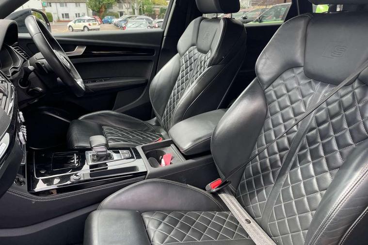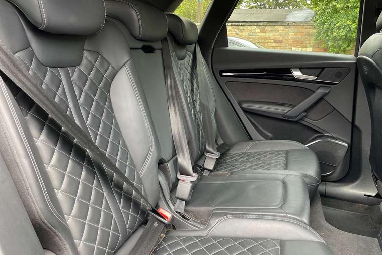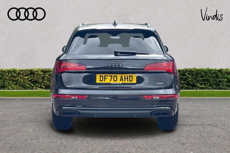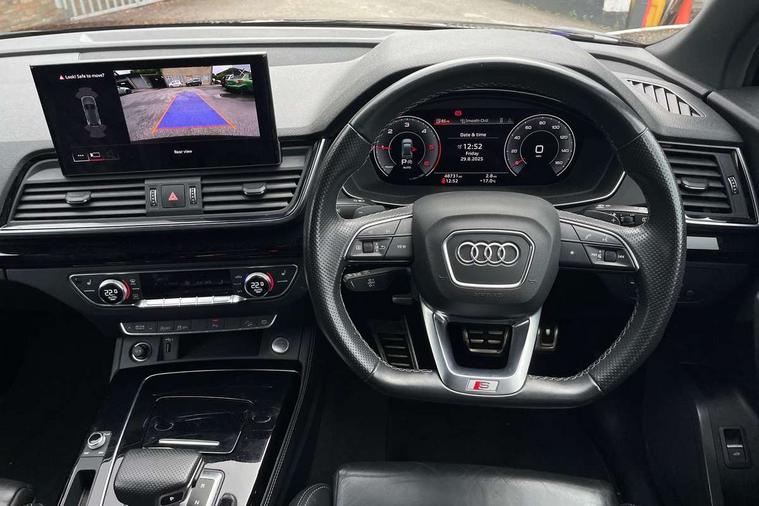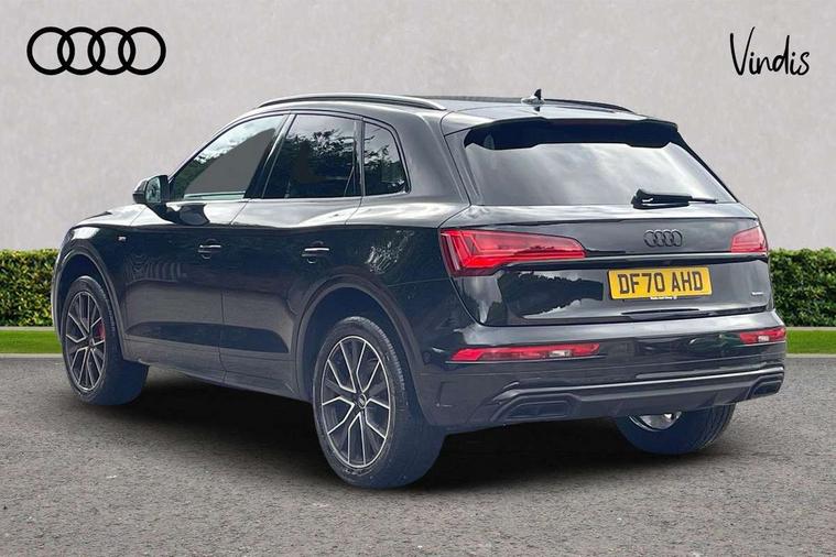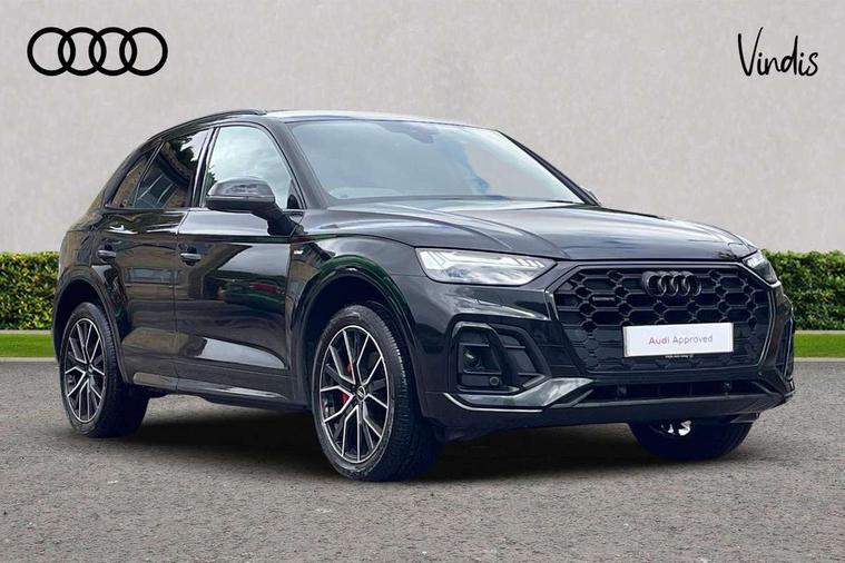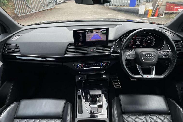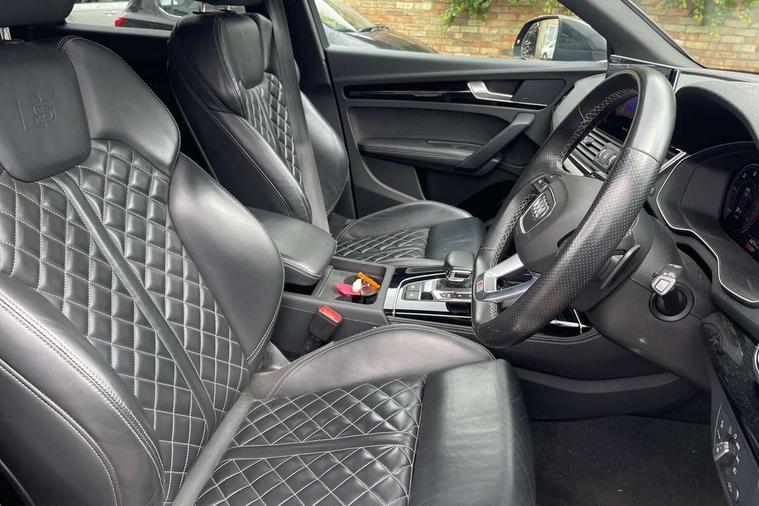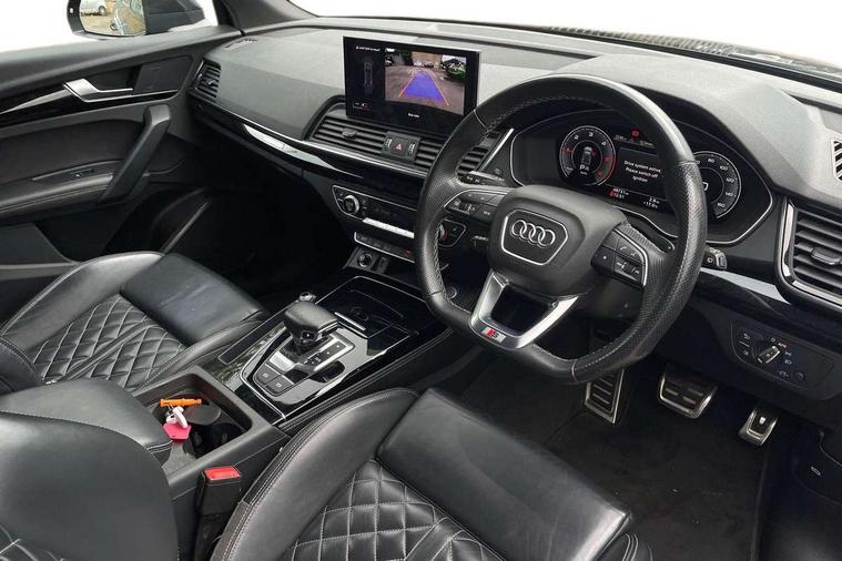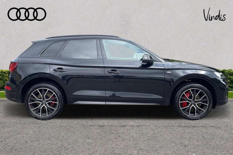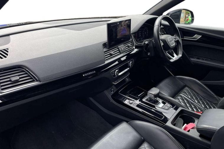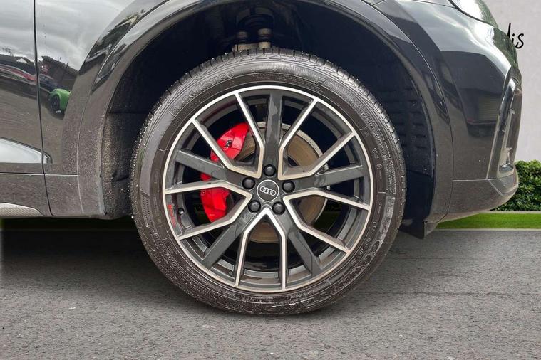 Amazon alexa Integration, Audi connect safety and service (e-call), Audi drive select, Audi virtual cockpit plus with 12.3" screen and three different layout designs, Audi wireless smartphone interface, Automatic start-stop system with coasting functionality and efficiency programme, Electro - mechanical power assisted steering, MMI navigation plus with 10.1" touch screen, Mobile telephone preparation - bluetooth interface, Power tailgate, Service interval indicator, Voice control system with Audi hotword activation "Hey Audi", Diesel particulate filter, Quattro on demand, DAB Digital radio, Acoustic windscreen, Air inlets in matt titanium black with blades in matt aluminium silver, Audi beam with Audi rings logo, Audi matrix LED headlights with LED rear lights + dynamic front and rear indicators, Audi rings at front and rear in black, Audi rings decal on rear doors, Auto dimming rear view mirror, Automatic headlight adjustment, Automatic headlights and windscreen wipers, Black roof rails, Body colour underbody protection, Chrome plated exhaust trims, Door side sills in carbon, Electric adjustable/heated/folding door mirrors, Front air inlet surrounds in aluminium, Front and rear electric windows, Headlight washers, Metallic paint, Rear chrome trim strip below lights, Rear privacy glass and rear side windows, Rear spoiler, Rear wiper, Roof bars, Without model and engine badging at rear, 2 x USB charging port with aux input socket, 3 rear headrests, 4 way electric lumbar support for driver and front passenger, 40:20:40 split folding rear seat with rear centre armrest, Black cloth headlining, Contrast stitching on seats, steering wheel and gear lever gaiter, Deluxe 3 zone electronic climate control, Electrically adjustable front seats, Fine Nappa leather upholstery with diamond stitching, Front centre armrest, Front sport seats with S embossed logo, Front/rear floor mats, Gear lever in black leather, Heated front seats, Height adjustable front head restraints, Height/reach adjustable steering column, Illuminated door sill trims with S logo, ISOFIX child seat mounting and top tether, Rear seat bench plus, Removable luggage compartment floor, Stainless steel pedals, Sunvisors with vanity mirrors, Tool kit, Trunk roller cover, Black styling package - Q5 Edition 1, Extended interior upholstery pack - Q5, Extended LED Interior multi coloured Lighting Pack - Q5, High gloss pack - Q5, 3 point seatbelts on all seats, 6 airbags - Driver, front passenger, curtain and side airbags, Electrically operated child locks on rear doors, Electromechanical parking brake, Electronic stabilisation control including ABS, ASR and EDL, Front and rear brake calipers painted in red, Front passenger airbag deactivation, Hill descent control, Hill hold assist, Multi collision brake assist, Pop-up bonnet for pedestrian protection, Pre sense city, Seat belt force limiter, Seatbelt monitoring, Tyre pressure warning, Warning triangle and first aid kit, Anti theft alarm, Anti-theft wheel bolts, Keyless Go access/ignition system, Black piano finish inlays, 20" 5 V spoke star design Audi sport alloy wheels in gloss anthracite black with diamond cut finish,