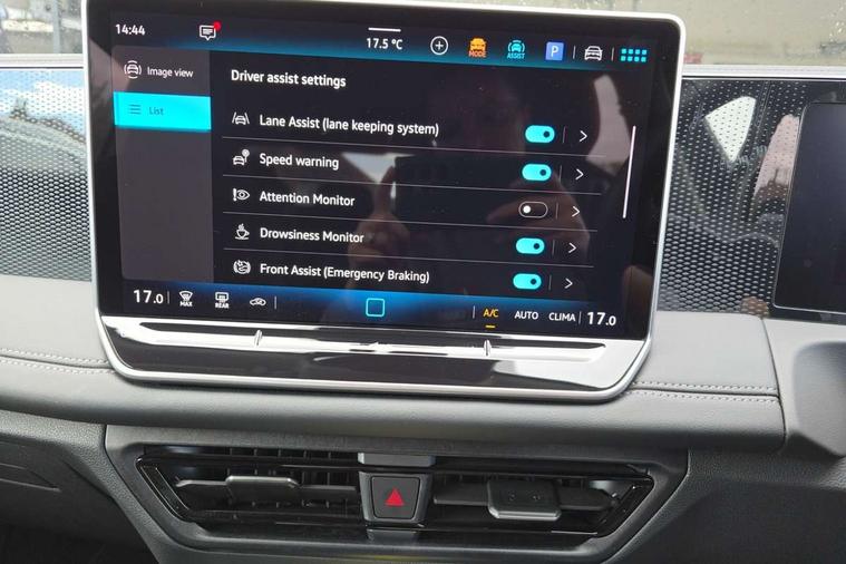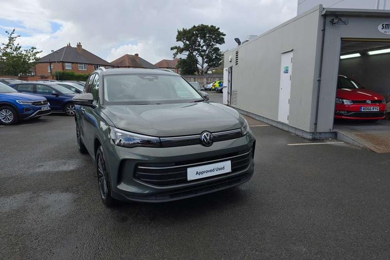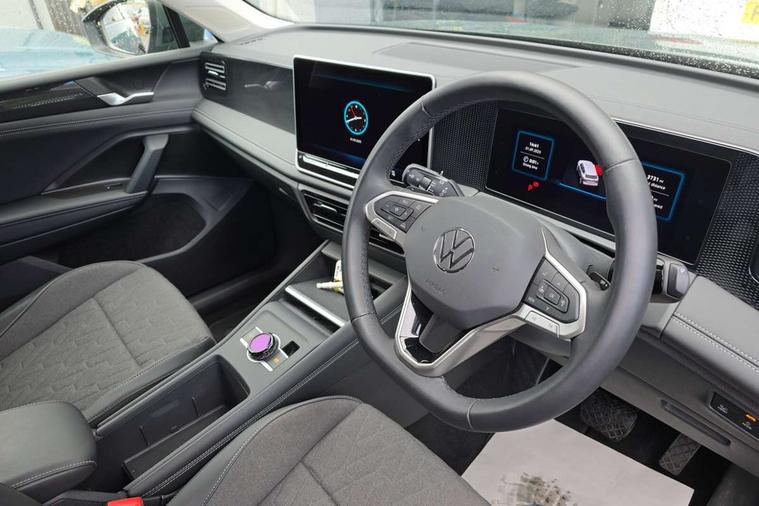 Adaptive cruise control (ACC), Advanced driver attention and drowsiness monitor, Bluetooth mobile phone interface, Car2X technology, Digital Cockpit Pro - 10.25" high resolution dash display screen with customisable menus and information, Dynamic road sign display, E-Sim card for online connectivity, eCall emergency call service, Front Assist - Autonomous emergency braking with pedestrian and cyclist monitoring, Lane change system, Side assist, Rear traffic alert and Exit warning system, Lane keeping system Lane Assist, Multifunction front facing camera, Oncoming vehicle braking when turning including swerve support, Park assistance plus with front and rear parking sensors, Power assisted steering with speed sensitive, Start/stop system with regenerative braking, Warning signal and warning light for front and rear seatbelts not fastened, Wireless App-Connect, Adaptive chassis control DCC pro includes driving mode selection, Charging cable Mode 3 Type 2 / 3 (16A), Front wheel drive, Rear shock absorption, Digital radio reception (DAB), Diversity antenna for FM reception, Ambient lighting with logo projection, Auto dimming interior rear view mirror, Automatic headlight control system, Body coloured bumpers and air intake with chrome trim, Body coloured door handles, Body-coloured exterior mirror housings, Coming/leaving home lighting function, Heat insulating glass in side and rear windows, Heat insulating windshield, Heated rear window, High level 3rd brake light, Illuminated door handle recesses, Illuminated lightline between headlamps, Rain sensor windscreen wipers, Rear fog light on one side, reversing light on both sides, Rear side wing doors, Rear wiper, 12V outlet in center console rear and in luggage compartment, 12V socket in centre console, 3 bench rear seats in 2nd row, Air care climatronic 3 zone air conditioning system with rear air conditioning control panel, Carpet mats, front and rear, Centre console with illuminated storage compartment with sliding cover and two drinks holders, Ceramique headlining, Door and side trim panel in foam film and woven fabric, Front centre armrest, ISOFIX anchors for child seats on outer rear seats and front passenger seat. Compatible with i-Size, Mechanical rear seat release, Power adjustable lumbar support in front, Rear bench seat, split folding, longitudinally movable and folding with load-through hatch and centre armrest, Safety optimised front head restraints, Single front passenger seat, Sun visors with illuminated vanity mirrors, Three rear head restraints, Variable luggage compartment floor, Comfort package with park assist pro - Tiguan, Design package - Tiguan, 3 point seat belt for centre rear seats, 3 Point seat belts in front with pretensioners, 3 point seatbelts in outer rear with ECE label, Driver and front passenger airbag with front passenger airbag deactivation, Electronic parking brake with auto hold, Front and rear curtain airbags, Front and rear side airbags, Front centre airbag, Front disc brakes, Manual child proof rear door locks, Rear disc brakes, Two tone horn, Warning triangle, Anti theft wheel bolts, Soul instrument panel, Airstop tyres, Tool kit for tyre mobility set, Tyre mobility kit including compressor and sealing foam,