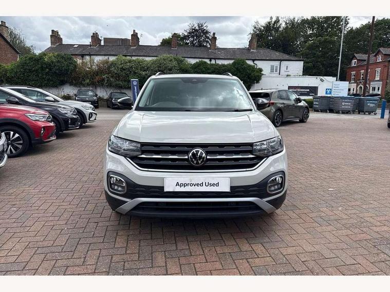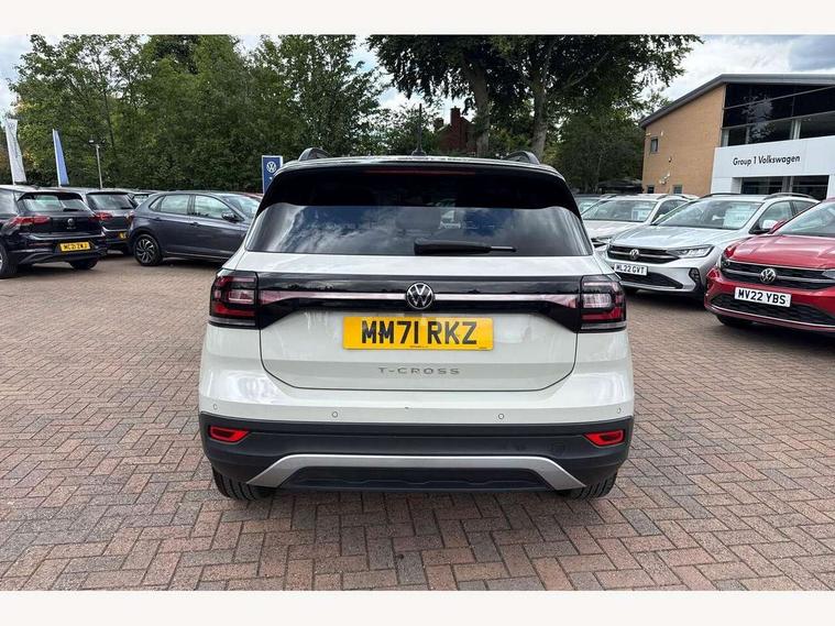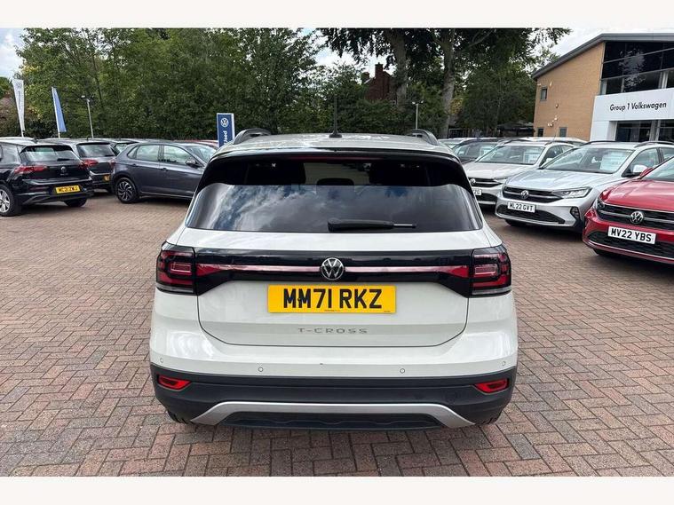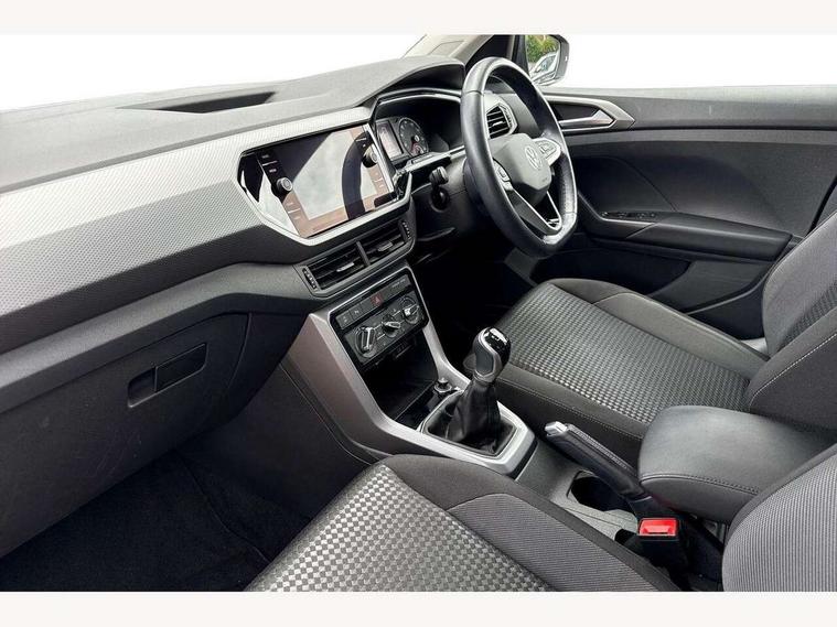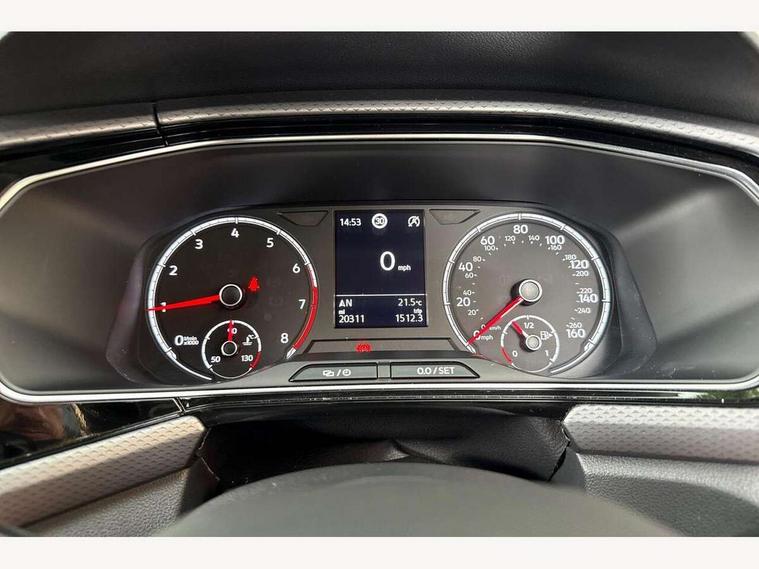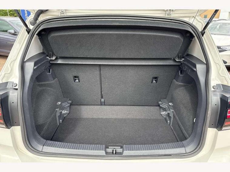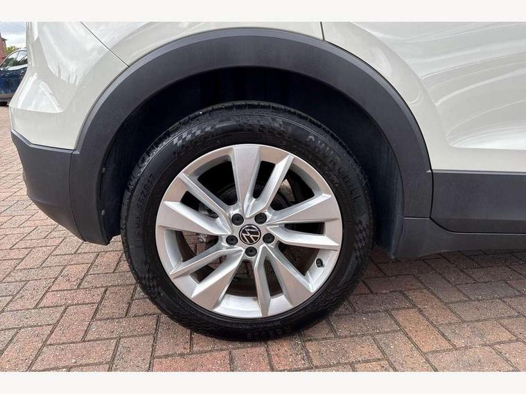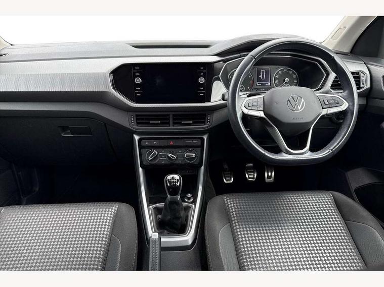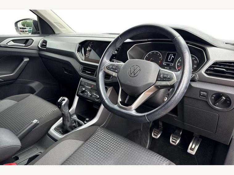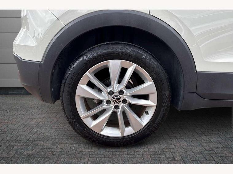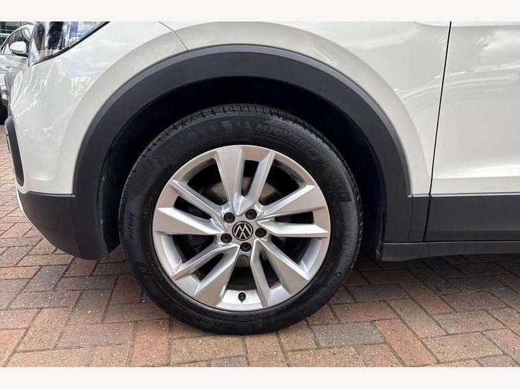 'Lights On' Reminder warning buzzer, Adaptive cruise control including front assist, forward collision warning, autonomous emergency braking, speed limiter, Blind spot monitoring, Bluetooth telephone and audio connection for compatible devices, Car information display, Driver alert system, eCall emergency call system, Lane assist, Low washer fluid warning light, Multifunction computer with visual gear change recommendation for fuel consumption, Operating permit alteration, Power assisted speed sensitive steering, Speedo, rev counter, electronic odometer, trip, service interval display, exterior temperature and fuel gauge, Stop/start system, Warning sound and light for doors and tailgate open, Warning sound and light for front seatbelts unfastened, We Connect Go Dongle, Wireless Car net app connect with Apple CarPlay, combined functionality of Apple CarPlay/Android Auto and MirrorLink, Battery regeneration during braking, Misfuel prevention device, 2x USB connection with USB charging sockets and in rear centre console, DAB Digital radio receiver, Diversity antenna for FM reception, Multi device interface (MDI) with USB connection, Music playback - MP3, WMA and AAC files, Premium USB cable for Apple or Android smartphone compatibility, Simultaneous pairing of 2 compatible mobile devices, Title and cover art display, 3D active badge on B-pillar, Active door sills, Active sill panel trims, Automatic hazard lights activation under emergency braking, Black roof rails, Body colour door handles, Body coloured bumpers, Dusk sensor + automatic driving lights, Electrically foldable, adjustable and heated door mirrors with reverse activated kerb view adjustment on passenger's side, Front and rear electric windows, Front fog lights with static cornering function, Galvanised body, Heated rear window, High level 3rd brake light, Lower door sills and door pillars in black, Radiator grille with high gloss surface and chrome strip, Rear fog light on one side, reversing light on both sides, Rear lights incorporating LED technology, Rear side wing doors, Rear tinted glass 65% approx light absorbing from B pillar backwards, Rear window aerial, Rear windscreen washer and wiper with interval delay, Reflectors in all doors, Tailgate with integrated roof spoiler, Windscreen wipers/ intermittent wipe + 4 position delay, 12V Accessory socket in centre console, 3 rear head restraints and 3 rear three point seat belts with ECE label, 3 seat bench in 2nd row, 60/40 split folding rear seat backrest, Ambient lighting and sourround lighting, Brushed stainless steel pedals, Drawer under drivers seat, Driver and front passenger sunvisor with vanity mirror, Driver's sunvisor with ticket holder, Dust and pollen filter, Front + rear carpet mats, Front and rear reading lights X 2, Front centre armrest with storage compartment, Front seat back storage pockets, Front seats with adj lumbar support, Glovebox, Heating and fresh air system with 4 stage blower, Height/reach adjust steering wheel, Instrument lighting white adjustable panel illumination, Interior light with delay, Isofix child seat preparation for 2 rear child seats, Luggage compartment cover, Luggage compartment lighting, Moveable and foldable Rear bench seat, Single front passenger seat, Storage compartment in drivers and front passengers door, Three spoke multi-function leather trimmed steering wheel and gearknob, Trapeze cloth upholstery, Variable boot floor, Winter pack - T-cross, Anti-lock Braking System (ABS) with Hydraulic Brake Assist (HBA), Automatic post collision braking system, Driver and front passenger safety-optimised head restraints, Drivers and Front Passengers airbags with front passengers airbag deactivation switch, ESC with EDL, ASR, EDTC and trailer stabilisation function, Extended and proactive pedestrian protection, Front and rear curtain airbags, Front seat side impact airbags, Height adjustable 3 point automatic front seatbelts with pretensioners, Hill start assist, Pre crash preventive occupant protection, Rear door child safety locks, Rigid safety cell with front and rear crumple zones, Single torn horn, Tyre pressure loss indicator, Volkswagen roadside assistance, Alarm with interior protection and deactivation via infotainment system, Child security locks in rear doors, Electronic engine immobiliser, Remote tailgate unlocking using key fob, Decorative strips in doors in matt silver/ center console, 17" Clayton alloy wheels + anti theft wheel bolts, Breakdown kit,