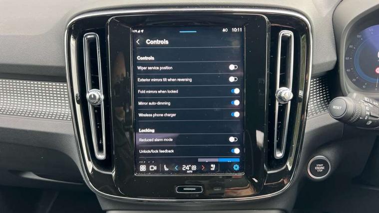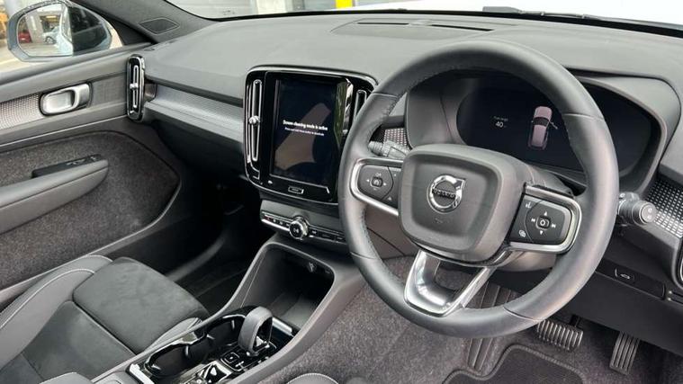 12.3" Progressive Driver Display, 9" centre console portrait touch screen, Adjustable steering wheel force, Apple carplay (wired), Bluetooth handsfree system, Cruise control, Driver alert control, E-call, Front park assist, Google automotive services - Enabled entertainment apps, navigation with google maps, voice recognition with google assistant, Hands free power tailgate, Intelligent speed assistance, Lane keeping aid, Oncoming Lane Mitigation, Rear park assist, Rear park assist camera, Speed sensitive steering, Volvo cars services with app - Driving journal, emergency and breakdown call, engine remote start, remote door locking/unlocking and vehicle dashboard, Wireless/Inductive Mobile Phone Charging, Automatic transmission with start/stop and manual change functions, Dynamic chassis, DAB Digital radio, Steering wheel mounted remote controls, Adaptive brake lights with high level LED brake lights, Auto dimming interior mirror, Automatic headlamp levelling, Automatic LED Headlights + Active high beam incorporating daytime running lights, Front aluminium tread plates, Front and rear electric windows, High gloss black front and rear skid plate, High gloss black front bumper deco, High gloss black mesh front grille with high gloss black surround, High gloss black window trim, Home safe and approach lighting, Integrated roof rails in high gloss black, LED front fog lights, Puddle lights, Rain sensor with automatic windscreen wiper activation, Rear side wing doors, Rear wiper, Roof antenna, Roof spoiler, Visible VIN plate, 12V socket in front tunnel console and luggage compartment, 2-Zone electronic climate control with CleanZone air quality system and pollen filter, 3 seat bench in 2nd row, 3 Spoke tailored steering wheel with chrome trim, 60/40 versatile split folding rear seat, Centre console cupholders and storage, Flexible load floor and grocery bag holder, Floor mats, Front cabin courtesy lights, Front door pocket, front cupholder, ambient front door, rear reading, rear courtesy, instrument panel and tailgate lighting, Front footwell illumination, Front headrests, Front reading lights, Front seat cushion extensions, Front side step illumination (under door), Glovebox bag hook, Heated front seats, Height adjustable passenger seat, Height/reach adjustable steering column, High gloss centre tunnel deco, Illuminated glovebox, Illuminated luggage compartment, Illuminated vanity mirrors + ticket holder, Integrated waste bin, Isofix attachments on outer rear seats, Load cover, Load protection net, Multi directional lumbar support for driver and passenger seat, Power driver seat with memory + exterior mirrors memory, Rear armrest with cupholders, Rear headrests, Single front passenger seat, Underfloor cargo storage, Climate pack without heated front seats - XC40, 3x3 point rear seatbelts, City safety with steering support with Pedestrian + cyclist + front collision warning with full auto brake and rear auto brake, Driver and passenger airbags, Drivers knee airbag, Electronic parking brake with auto hold, First aid kit, Front and outer rear seatbelt reminder and pretensioners, Front seats SIPS airbags, Hill descent control, Hill start assist, Inflatable curtain, Passenger airbag cut-off device, Power child locks on rear doors, Road sign information display, Run off Road Protection, SIPS (Side Impact Protection System), Slippery road and hazard light alert, Stability and Traction Control with Spin control, Engine Drag Control and Corner Traction Control, Tyre pressure monitoring system, Vehicle deceleration control with Anti-lock Brake System, Electronic Brake Distribution and Emergency Brake Assist, Warning triangle, WHIPS whiplash protection system - front, 2 x Key integrated remote control central locking including with deadlocking system and auto open/close windows, Anti-theft alarm including immobiliser/volume sensor + level sensor, Keyless drive includes keyless entry and keyless start, Locking wheel nuts,