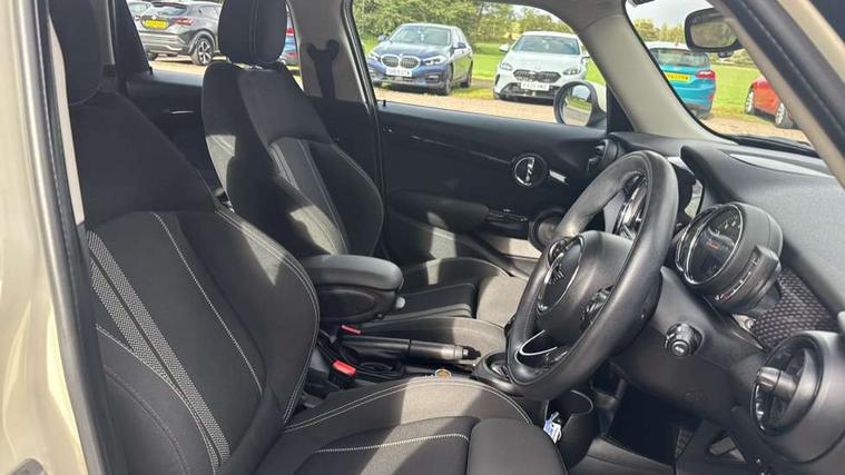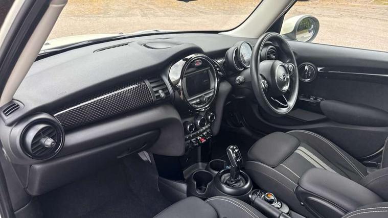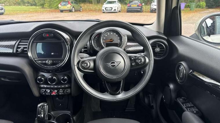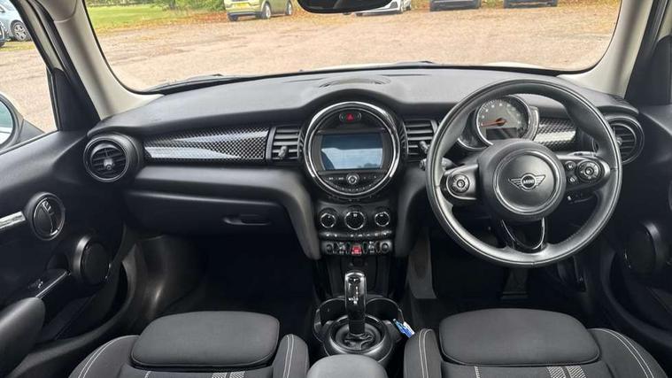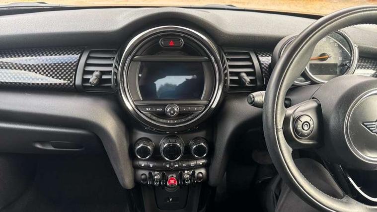 Compatible mobile phone bluetooth with audio streaming, Instrument cluster, Mini E-call, MINI TeleServices, On board computer, Service interval indicator, Performance Control, Steptronic transmission with double clutch, 6.5" touchscreen with LED ring, FM tuner and DAB digital radio, Automatic headlight activation switch, Bonnet scoop, Chrome border honeycomb structure radiator grille with S badge, Chrome plated fuel cap, Dynamic brake lights, Electric front+rear windows, Heated rear window, Heated windscreen washer jets, LED headlight with closed ring and daytime driving lights, Metal door sill strips with Cooper S imprint, Model logo Cooper S on right of tailgate, Rain sensor window wipers, Rear fog lights, Rear LED lights with union jack design, Rear window wiper, Side scuttle panel with integrated indicator, Sun/heat protection glass, Two central exhaust tailpipes with chrome finisher, White indicator lenses, 12V Accessory socket in centre console, 4 lashing eyes in luggage compartment, 60/40 split folding rear seat, Chrome interior highlights, Colour line - Carbon black, Cupholders, Front and rear isofix with front passenger airbag deactivation, Glove compartment, Height and length steering column adjustment, Interior lighting with 12 basic colours selectable via toggle switch in roof, Leather gearshift lever and handbrake gaiters, Manual air conditioning, Mechanical seat adjustment, driver seat height adjust, forward/back and front seats backrest, Mini logo projection on floor from drivers exterior mirror, Multifunction steering wheel, Satellite grey headlining, Storage compartments in doors, Storage pocket on back of front seats, Sunvisors with vanity mirrors, 3 point seatbelts on all five seats, 6 Airbags - front, side, head and seat belt tensioners, Anti-lock braking system (ABS), DSC - Dynamic Stability Control, Front and rear disc brakes, Hill start assist, Two tone horn, Tyre pressure monitoring system, Alarm system with tilt sensor, monitoring doors, bonnet interior and tailgate, Electronic vehicle immobiliser, Start/stop toggle with keyless go, Tool kit,