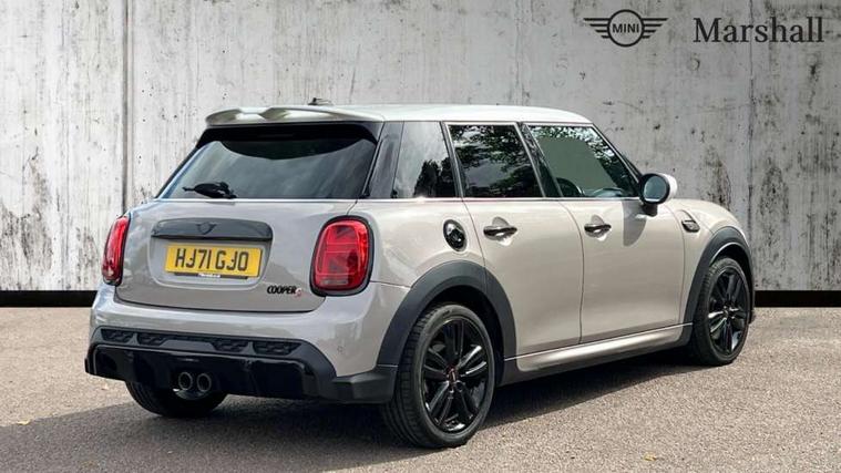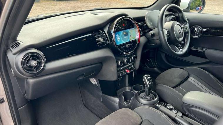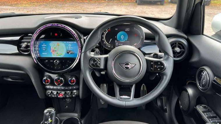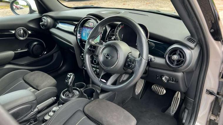 Automatic start/stop function with brake energy recuperation, Compatible mobile phone bluetooth with audio streaming, Cruise control with brake assist, Electro-mechanical speed dependant steering assistance, Flexible car sharing preparation, Instrument cluster, MINI Driving Modes - centre toggle switch to control driving setting (sport, mid and green), Mini E-call, MINI TeleServices, On board computer, Rear park distance control, Service interval indicator, Adaptive suspension, Double Vanos system, Fully variable valve control, Gear change indicator display, High precision injection, Performance Control, Steptronic sport transmission with double clutch and steering wheel paddles, 6 speakers in front door trims and underneath front seats, 8.8" touchscreen with LED ring, FM tuner and DAB digital radio, Automatic headlight activation switch, Bonnet scoop, Dynamic brake lights, Electric front+rear windows, Heated rear window, Heated windscreen washer jets, JCW Aerodynamic kit - Front and rear bumpers with sporty JCW styling and part-painted side sills with MINI John Cooper Works door sill finishers, John Cooper Works rear spoiler, LED headlight with closed ring and daytime driving lights, Metal door sill strips with Cooper S imprint, Model logo Cooper S on right of tailgate, Radiator grille chrome border with honeycomb structure including S Badge, Rain sensor window wipers, Rear fog lights, Rear LED lights with union jack design, Rear window wiper, Side scuttle panel with integrated indicator, Sun/heat protection glass, Two central exhaust tailpipes with chrome finisher, White indicator lenses, 12V Accessory socket in centre console, 4 lashing eyes in luggage compartment, 60/40 split folding rear seat, Anthracite headliner including grab handles and clothes hooks, Carbon black colour line - Knee roll and door armrest, Chrome interior highlights, Cupholders, Front and rear isofix with front passenger airbag deactivation, Glove compartment, Height and length steering column adjustment, Interior lighting with 12 different colours across the dashboard, underneath door bezel with illuminated laser-engraved design on central display, JCW Sport seats with integrated headrests, adjustable thigh support and John Cooper Works logo, Leatherette gearshift lever and handbrake gaiters, LED reading lights, vanity mirror lights, front foot well light and spotlight on front seats, Manual air conditioning, Mechanical seat adjustment - forward/back & backrest for front seats and driver seat height adjust, Multifunction steering wheel, Sport leather steering wheel with speed limiter and audio/communication controls, Storage compartments in doors, Storage pocket on back of front seats, Sunvisors with vanity mirrors, Tool kit, Velour floor mats, Walknappa leather steering wheel with grey seam and John Cooper Works badge on Piano Black lower steering wheel spoke, Piano black exterior pack - Mini Hatchback Cooper S, 3 point seatbelts on all five seats, 6 Airbags - front, side, head and seat belt tensioners, Anti-lock braking system (ABS), DSC - Dynamic Stability Control, Front and rear disc brakes, Hill start assist, Two tone horn, Tyre pressure monitoring system, Alarm system with tilt sensor, monitoring doors, bonnet interior and tailgate, Electronic vehicle immobiliser, Start/stop toggle with keyless go, Piano black interior trim,