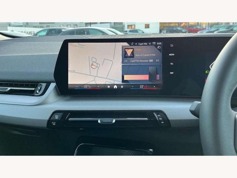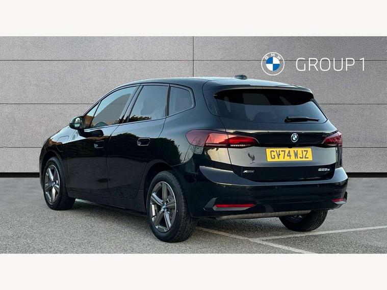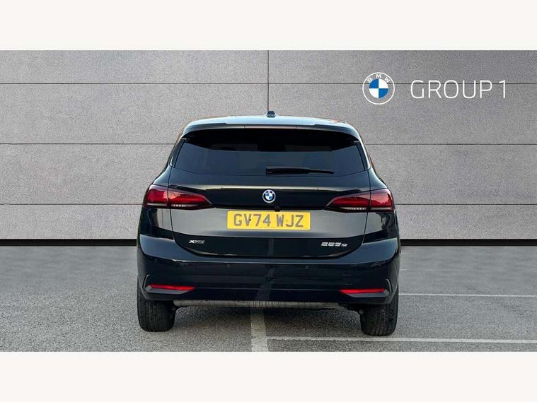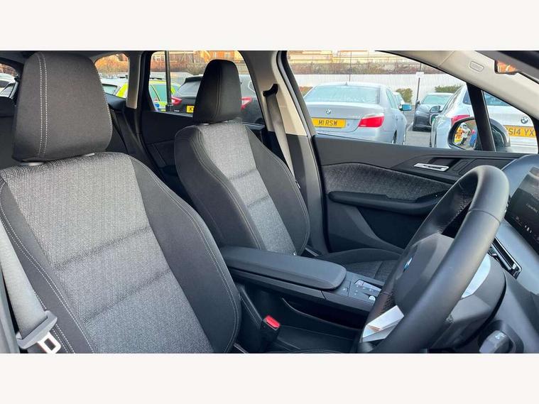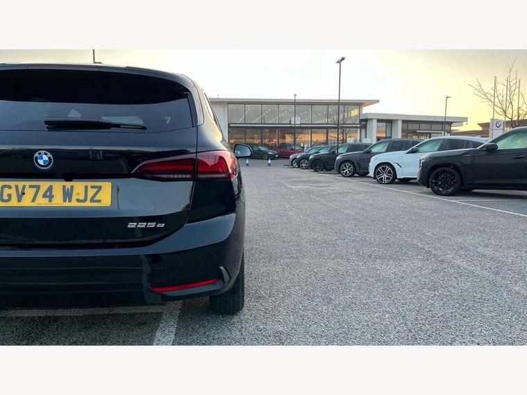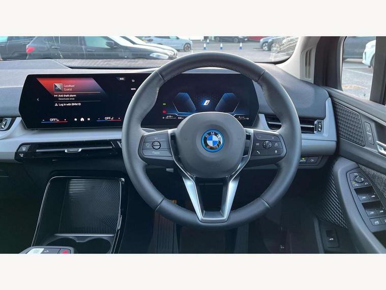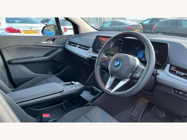 Active Guard, Attentiveness assist, Automatic powered tailgate, Automatic start/stop function, BMW Online services, BMW Operating system 9 with BMW Maps, real-time traffic information, in-car experiences, remote services and smartphone integration, BMW Teleservices, Brake pad wear indicator in front and rear, Condition based service, ConnectedDrive Services, Drive off assistant, Flat air vents on instrument panel in high gloss black, adjustable slats with elements in pearl chrome, iDrive controller, Instrument cluster with speedometer with miles per hour read out, tachometer and fuel gauge, Language version English, On board computer - average speed+fuel consumption, service interval, clock/date, odometer/trip meter, outside temperature display and ice warning, Parking assistant with active park distance control, reversing assistant, lateral parking aid and rear view camera, Servotronic variable electric power steering (EPS), Widescreen display, 11kW AC charging, Drive performance control with ECO PRO comfort + sport mode, eDrive exterior sound, Gear selector switch with toggle operation, Mode 3 charging cable, Performance Control, Petrol Particulate Filter, Standard suspension, Steptronic transmission with double clutch, 2x USB Type C ports in front centre console for charging and data transfer, 2x USB Type C ports in rear centre console for charging, DAB Digital radio, Personal eSim, Welcome sound upon opening of the front driver or passenger door, Automatic headlights, BMW emblem, engine compartment lid and tailgate, BMW radiator grille with grille struts, end face black high-gloss, radiator grille frame chrome high-gloss, Body colour sill covers, Body coloured door mirror caps, Contoured rear roof spoiler in vehicle colour with side aeroblades in black high-gloss, Driver side exterior mirror lighting with BMW logo projection, Dynamic brake lights, Electric adjustable heated door mirrors, Electric windows - front and rear, with open/close fingertip control, anti-trap facility and comfort closing, Folding door handles integrated flush with surface, Front and rear windscreen wipers with heated front washer nozzles, Front bumper cover with air inlet trims for air curtains in matt black, Front door exit lights, Heated rear window, Hidden exhaust pipe, High gloss shadow line, High gloss shadowline roof rails, Home light, LED Daytime running lights and parking lights with turn indicators, LED number plate light, LED third brake light in rear spoiler, Manual headlight range control, Matt black roof strips, Model inscription on right tailgate, Rain sensor, Rear bumper cover with two L-shaped trims in Pearl chrome, Rear side wing doors, Shark fin antenna, Trailer stabilisation logic, Visible VIN plate, Welcome lighting, Windscreen washer nozzle for rear view camera, 12V power socket in luggage compartment and front centre console, 12V socket in right side trim panel, 2 bag hooks in luggage compartment, 2 front reading lights, 2 open cup holders in front centre console, 2 x USB Type C ports for charging in front centre console + 2 x USB Type C ports for charging in rear centre console, 3 seat bench in 2nd row, 40:20:40 split folding rear seats with backrest, Ambient lighting front and rear, Automatic two zone climate control air conditioning, Bottle trays in all doors, Child seat ISOFIX attachment for two outer rear seats and front passenger seat with anchorage points, Embellishers on steering wheel spokes in pearl chrome, Footrest and pedals in black plastic, Four grab handles integrated in roof lining, Front and rear door pockets, Front and rear footwell lighting, Front and rear side armrest integrated into door trim, Front and rear velour floor mats in anthracite, Front centre console storage compartment, Front head restraints, Glovebox with light, Heated front seats, Height adjustable 3 rear head restraints, Illuminated wireless charging tray, Interior door handle recess light on all doors, Luggage compartment lighting, Manual adjustment of seat height, fore/aft position, seat depth, backrest tilt and head restraint height, Map pockets, Mechanical rear seats with fore/aft adjustment, Middle centre console storage compartment, Multi-function controls for steering wheel, One piece parcel shelf opens together with tailgate and removable, Rear cloth hooks, Single front passenger seat, Steering wheel column manual adjustment, Storage compartment lighting in centre console and storage tray in centre stack, Storage compartment net in left side trim panel, Storage compartment with folding cover under centre console armrest cushion, Sunvisors with illuminated vanity mirrors, Three spoke sport leather steering wheel, 3 point seatbelts on all seats, front pyrotechnic belt tensioners, stopper and belt force limiters, rear coded belt buckles, Acoustic protection for pedestrians, Airbag - Front driver and passenger, front and rear head, front side, curtain head protection, manual deactivation of front passenger airbag possible, Anti lock braking system (ABS) with brake assist, Automatic hold function, BMW emergency call, Brake drying, Braking readiness, Child proof locking system in rear door, Cornering brake control, Crash Sensor - activates hazard/interior lighting + unlocks doors, DSC - Dynamic Stability Control, Dynamic brake control, Dynamic Traction Control - DTC, Electromechanical parking brake, Energy recovery system, Front disc brakes, Integrated braking system, PC iBrake PostCrash approach control warning with light braking function, Rear disc brakes, Tyre pressure monitoring system, Warning triangle and first aid kit, Anti theft alarm system, Closing system with central locking, Drive away door locking, Engine immobiliser, Locking wheel bolts, Front centre console trim in high gloss black with my mode expressive, Reduced rolling resistance tyres, Tyre repair kit (including Tyre sealant and 12V Compressor),