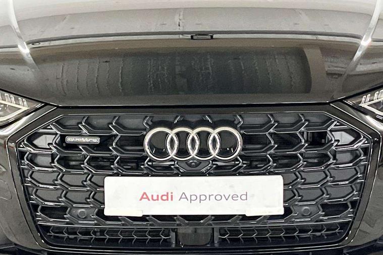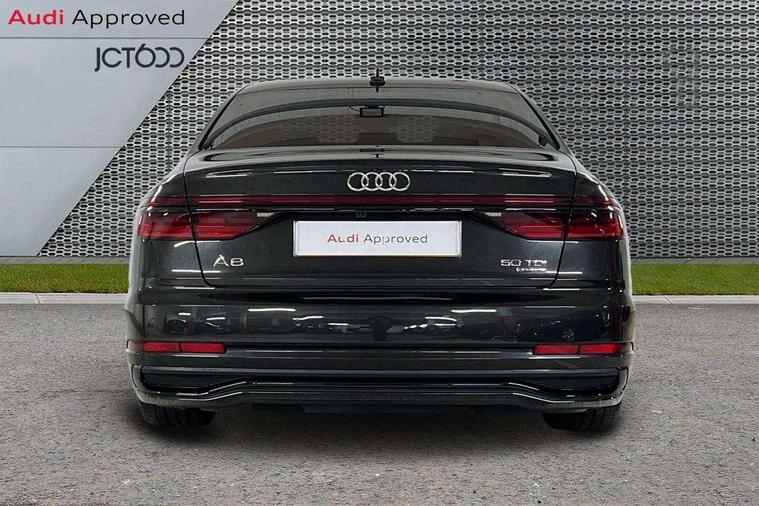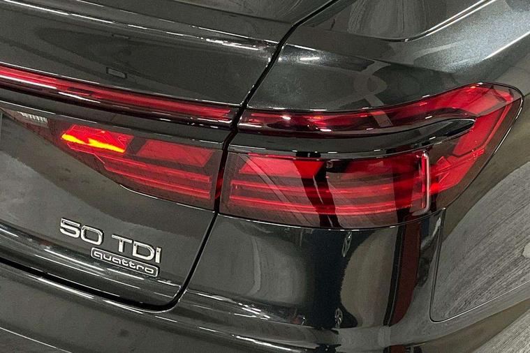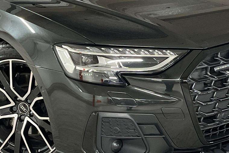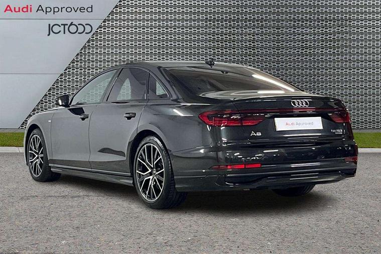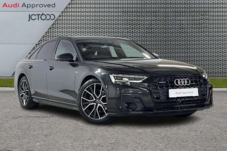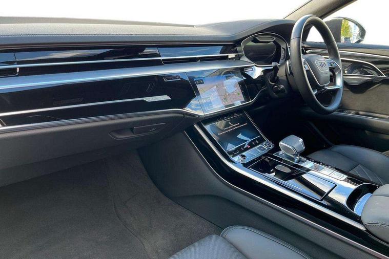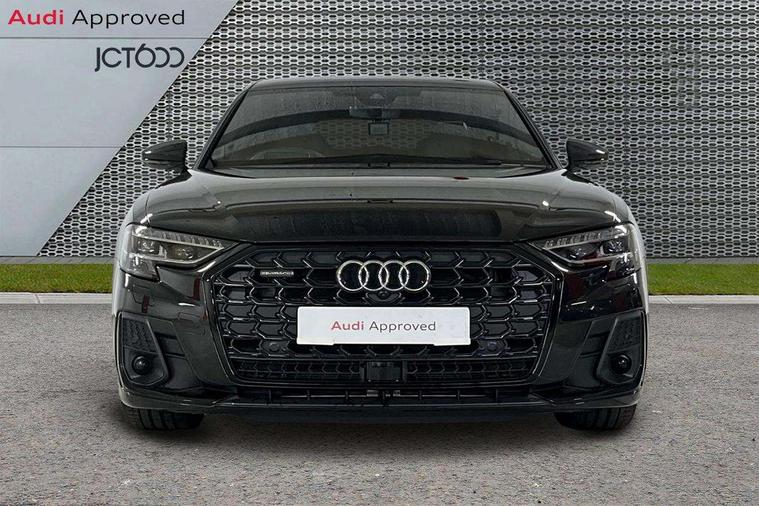 'Lights On' Reminder warning buzzer, Adaptive cruise control with cruise assist, emergency assist, efficiency assist, swerve assist, turn assist and speed limiter, Audi connect safety and service (e-call), Audi drive select, Audi parking system plus with front and rear sensors, Audi smartphone interface with app store includes wireless Apple carplay, Android auto and Amazon alexa integration, Audi virtual cockpit, Bluetooth interface, Camera based traffic sign recognition, Convenience key, Electro - mechanical power assisted steering, Head up Display, MMI navigation plus with MMI touch + Twin touch screens with haptic feedback, Operating buttons in black, glass look with haptic feedback including extended aluminium look, Power door closure, Power operated tailgate, Rear view camera, Remote fuel filler release, Service interval indicator, 24 litre AdBlue tank, 48V Mild hybrid technology, 8 speed transmission with hill hold assist, 82 litre fuel tank, Adaptive air suspension, Diesel particulate filter, Quattro all wheel drive with self locking centre differential, Audi music interface, Audi sound system, DAB digital radio module, DVD System, MMI radio plus, USB connection, Acoustic double glazing, All-weather, manoeuvring, position, static cornering, turning and motorway lights with automatic dynamic headlight range control, Audi space frame, Auto dimming rear view mirror, Body colour bumpers, Body colour side protection with aluminium trim strips, Electric front windows, Electric rear windows with isolation switch, Electric sunblinds for rear window and rear door windows, Electrically adjustable heated folding + automatically dimming exterior mirrors with memory function and integrated LED indicators, Front wash/wipe with interval delay, HD matrix LED headlights with dynamic light presentation and dynamic indicators, Headlight cleaning system, Heat insulating darkened glass in side and rear windows, Heat insulating glass windscreen, Heated rear window, Heated windscreen washer jets, High beam assist, LED brake lights, LED daytime running lights, LED third brake light, OLED rear lights with changeable rear light signature, Privacy glass, Rear boot, Rear side wing doors, Side skirts, Welcome/leaving lighting, 12V socket, 2 zone automatic air conditioning, 3 seat rear bench with centre armrest in 2nd row, 4 way electric lumbar support for driver and front passenger, Audi phone box light, Black cloth headlining, Centre console with cupholders, Comfort centre armrest, Door pockets with bottle holder, Driver and front passenger side sunvisors with illuminated vanity mirrors, Dust/pollen filters, Electric front seats with memory function, Front floor mats, Glove compartment cooling, Heated front seats, Height/reach electric steering column with easy exit function, Illuminated door sill trims with aluminium inlays and S diamond emblem, Isofix child seat mounting points on outer rear seats, Leather gearknob, Passenger footwell storage net, Reading lights, Rear floor mats, Rear headrests, Roof mounted sunglasses holder, Single front passenger seat, Stainless steel pedals and footrest, Valcona leather upholstery with front sports seats in diamond quilted with S embossed logo, Black exterior styling pack - A8 Black Edition, Chrome exterior pack - A8, Extended LED Interior multi coloured light pack - A8, 3 point seatbelts on all rear seats, ABS/EBD, Active front headrest system, ASR traction control, Audi pre sense basic, Audi pre sense front, Black brake calipers, Driver/Front Passenger airbags, EDL traction control, Electromechanical parking brake, ESP, Extended pedestrian protection measures, Front and rear disc brakes, Front and rear side airbags with head airbag system, Front passenger airbag deactivation, Rear child proof door locks, Seatbelt reminder + electric contact in buckle + advanced safety equipment, Tyre pressure loss indicator, Warning triangle and first aid kit, Anti theft alarm tow away protection, Anti-theft wheel bolts and wheel loosening detection, Remote central locking, Carbon vector upper inlays, Dark matt brushed aluminium lower inlays,