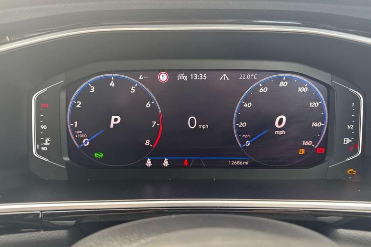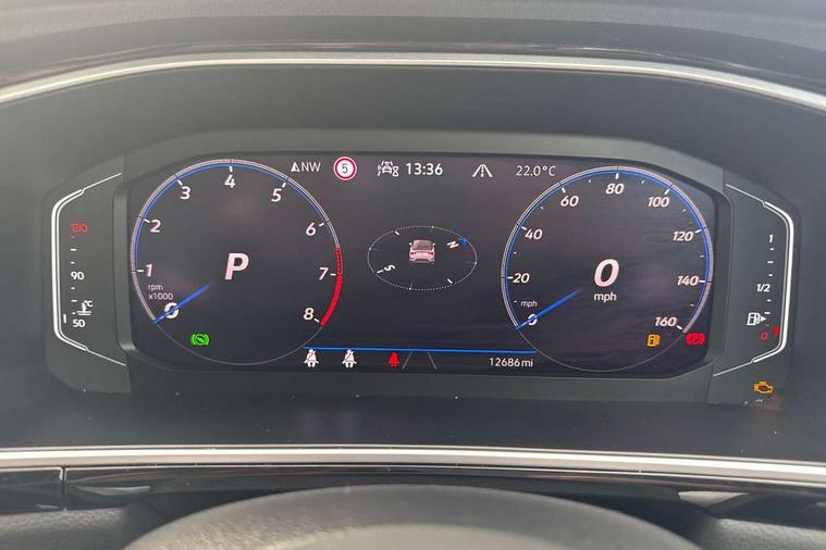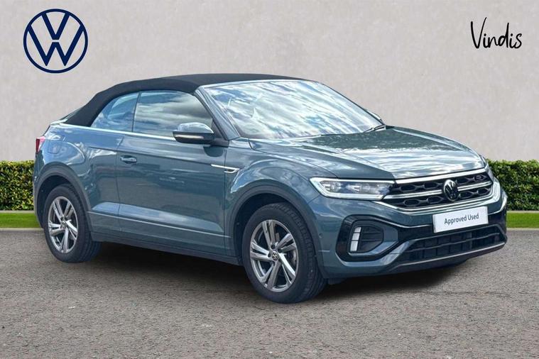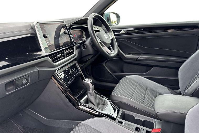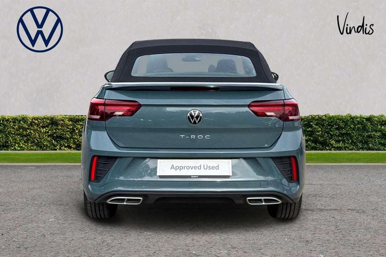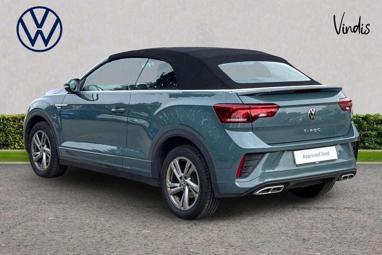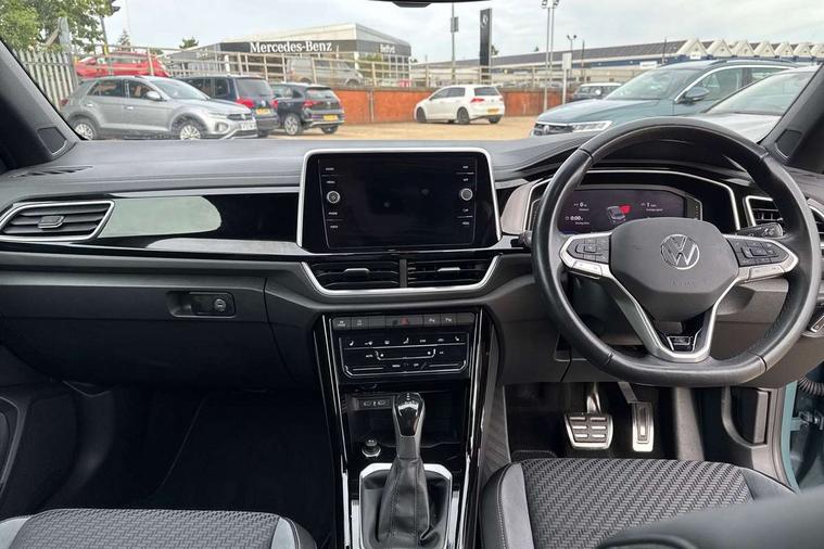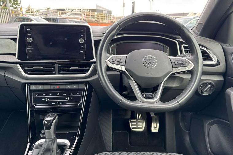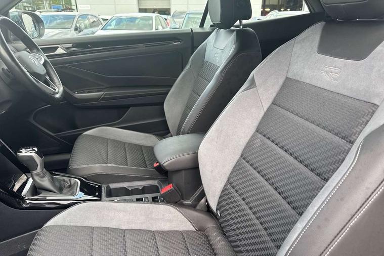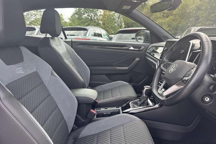 Adaptive cruise control and speed limiter, Advanced driver attention and drowsiness monitor, Bluetooth mobile phone interface, Brake pad wear indicator, Car information display, Digital Cockpit Pro with 10.25" Display, Driver tips and journey analysis, Emergency call service, Modified key software - reduce switch off time for key status change to Long no motion, Multifunction computer with visual gear change recommendation for fuel consumption, Multifunction front facing camera, Online services, Park assist including front and rear parking sensors, Speedo and rev counter, electronic odometer, trip, service interval display and exterior temperature gauge, Start/stop system with brake energy recovery, Tailgate/trunk lid release from outside, Warning sound and light for front seatbelts unfastened, Diversity antenna for FM reception, Music playback - MP3, WMA and AAC files, SMS functionality - read, compose and send SMS messages using touch-screen display, Title and cover art display, USB-C Interface and USB charging socket, We Connect and We Connect Plus functionality, Ambient lighting with logo projection, Auto dimming interior rear view mirror, Automatic hazard lights activation under emergency braking, Automatic headlight control with LED separate daytime running lights with coming/leaving home function, Black roof, Body colour door handles, Body colour rear spoiler, Chrome effect left and right trapezoid exhaust tailpipe fascia surround, Chrome trim on upper and lower radiator grille, Dark red rear combination lamps in LED technology, Dusk sensor, Exterior mirrors aspherical on driver side, convex on front passenger side, Heat insulating glass windscreen, High level 3rd brake light, LED rear number plate lights, Power operated canvas convertible top, Power windows with comfort operation and circuit breaker, R-Line design body coloured bumpers, Rain sensor, Rear boot, Rear exhaust tailpipe, Rear fog light on one side and reversing lights on both sides, Remote electrically foldable door mirrors, puddle lights and reverse activated passenger door mirror, Volkswagen roundel, Windscreen wiper with intermittent wipe light, Without exterior ambient lighting, 12V socket in centre console storage area, 2 LED front reading lights, 2 seat bench in 2nd row, 50:50 Split folding rear seat backrests with fixed rear seat bench, Air care climatronic air conditoning system with active combination filter and 2-zone temperature control, Black door lower parts with chrome trim, Chrome plated surround to light, mirror and window switch, Door and side trim panel with leatherette insert, Easy entry backrest release, Front and rear carpet mats with black stitching, Front centre armrest, Front cupholders x 2, Front door pockets, Front seat back storage pockets, Front sports comfort seats with manual height adjustment, Heated leather wrapped multi function sports steering wheel with tiptronic, Height/reach adjust steering wheel, Inserts of front seats and outer rear seats in ArtVelours titan black, Instrument lighting, white adjustable panel illumination, Interior light delay, Interior light in footwell, Interior lighting with switch off delay and contact switches on all doors, Interior white ambient lighting and surround lighting, Isofix child seat preparation, Lockable glove compartment with light, Luggage compartment lighting, Power adjustable lumbar support in front, Rear head restraints, Single front passenger seat, Stainless steel pedals, Sun visors with illuminated vanity mirrors, Unique R Line door sill protectors, Driver assistance pack without proactive passenger protection - T-Roc Cabriolet DSG, Sports pack - T-Roc cabriolet, 2 x 3-point seatbelts/outer rear seats with ECE label, Driver and front passenger airbag with front passenger airbag deactivation, Driver and front passenger safety-optimised head restraints, Drivers seatbelt reminder, Electronic parking brake, Electronic Stability Control (ESC) including ABS, ASR and EDL, Front and rear disc brakes, Front assist with autonomous emergency braking, Pedestrian monitoring, Predictive pedestrian protection, Rigid safety cell with front and rear crumple zones, Side airbag/thorax airbag system, for front passengers, Three point height adjust front seatbelts + pretensioners, Two tone horn, Tyre pressure loss indicator, Volkswagen roadside assistance, Anti-theft alarm system with interior protection and central locking system with SAFELOCK, radio remote control and 2 remote control folding keys, Electronic engine immobiliser, Trims for alloy wheels,