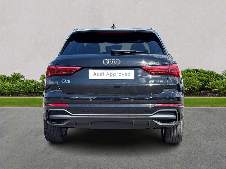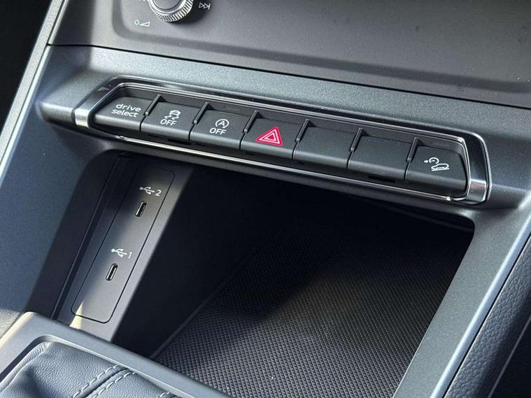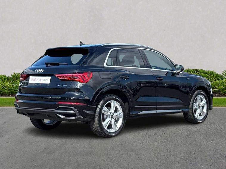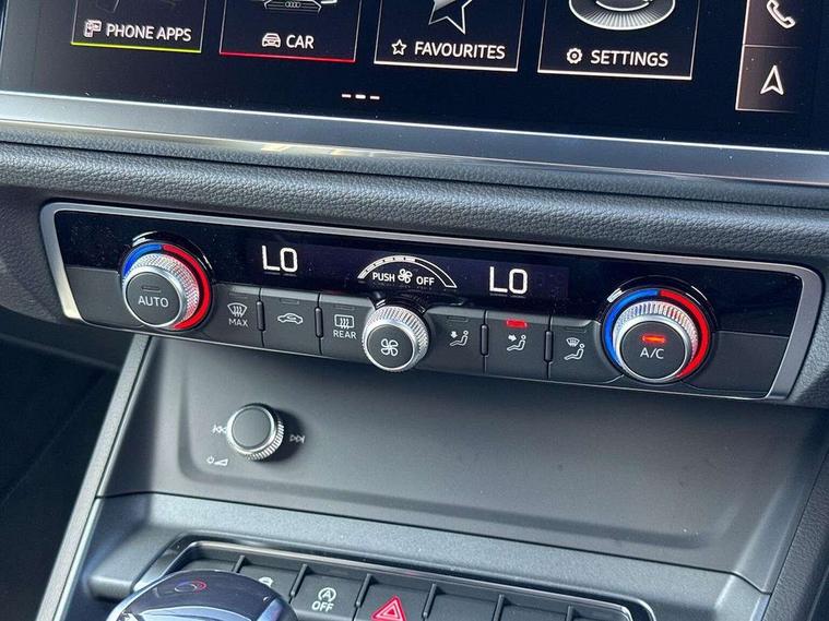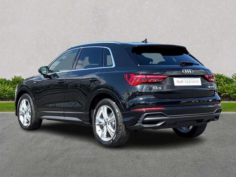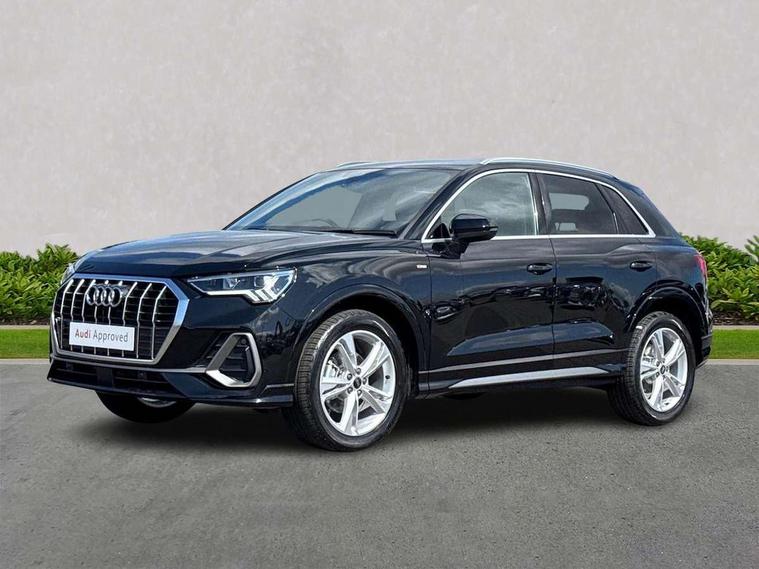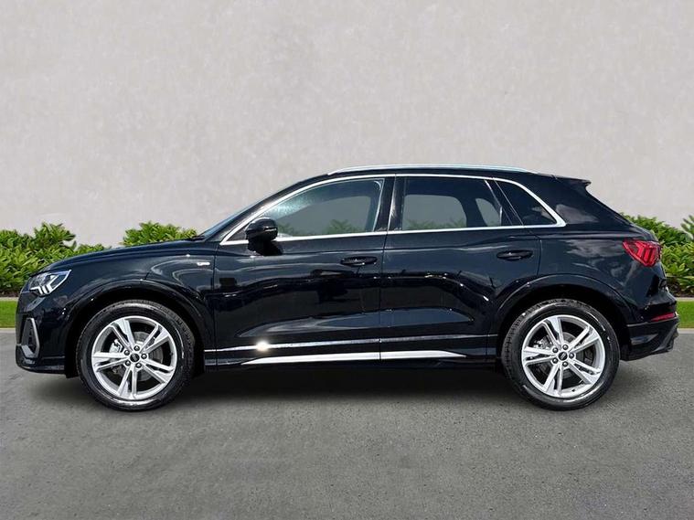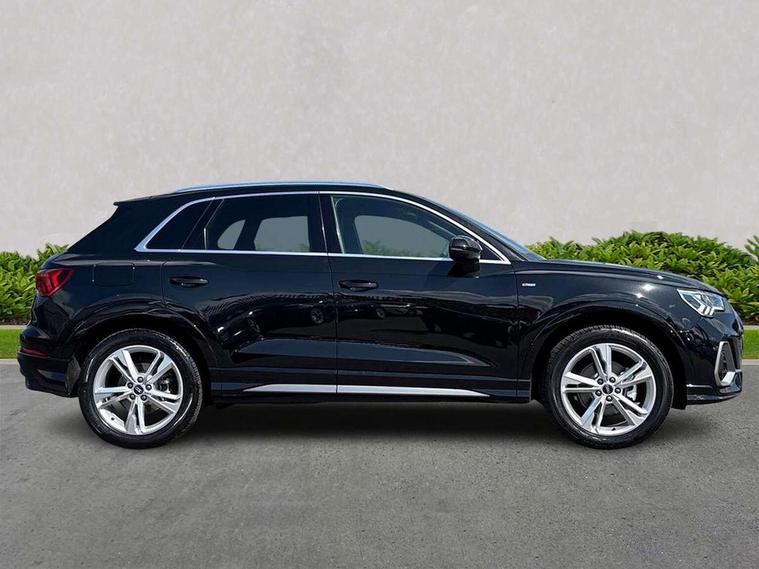 Amazon alexa Integration, Audi connect safety and service, Audi drive select, Audi lane departure warning, Audi Virtual Cockpit - 10.25" display, Bluetooth interface, Camera based traffic sign recognition, Distraction and Fatigue warning, Legal emergency call, MMI Navigation Plus with high resolution 10.1 inch touchscreen colour display, Power operated tailgate, Progressive steering, Service interval indicator, Smartphone interface includes wireless Apple carplay/Android Auto, Start stop system with recuperation, Voice control system with natural language interaction, Sports suspension, 2 USB-C ports with charge and data functions, 6 passive loudspeakers, DAB digital radio module, Acoustic windscreen, Aluminium roof rails, Aluminium window trim, Anthracite black radiator grille, Auto dimming door mirrors, Auto dimming frameless rear view mirror, Body colour front spoiler blade, Electrically folding, adjustable and heated door mirrors with integrated LED side indicators and kerb view function for passenger side, Front and rear electric windows, Front fog lights, Front side air inlets in matt platinum grey, Grille vertical bars in aluminium silver/Matt, High gloss black finish B and C pillars, LED Dynamic rear indicators, LED headlights with LED daytime running lights, LED rear lights, LED third brake light, Privacy glass dark tinted rear and rear-side windows (from B-pillar backwards), Rain and light sensors, Rear diffuser grille in grained matt black, Rear diffuser strip in matt anthracite black, Rear side wing doors, Rear wiper, S line badges on front wings, S Line front and rear bumpers and side skirts, Side skirt insert in matt Platinium grey, Variable front intermittent wipers, 12V socket in rear centre console, 3 seat bench in 2nd row, 3 spoke leather multifunction steering wheel features S badging and grips in perforated leather with contrast stitching, 40:20:40 folding with manual adjustment for 60:40 forwards/backwards position and backrest angle, Adjustable rear seat bench/backrest with centre armrest and cupholder, Black carpet mats, Black cloth headlining, Dual zone electronic climate control, Electric lumbar support, Front and rear black floor mats with contrast stitching in rock grey, Front and rear headrests, Front centre armrest, Height and reach adjustable steering wheel, Horizontal trim strip in matt platinum grey, Illuminated door sill trims with S logo, ISOFIX child seat mounting for front passenger with airbag deactivation and outer rear seat including top tether attachment point for outer rear seats, Luggage compartment sill protection in stainless steel, Manual front seats with height adjustment, Perforated leather gearknob, Single front passenger seat, Stainless steel pedals, Twin leather upholstery with front sport seats + S embossing, Non smoking pack - Q3, 3x3 point rear seatbelts, 6 airbags - Driver, front passenger, curtain and side windows, Audi pre-sense front with pedestrain and cyclist recognition, Electrically operated child locks on rear doors, Electromechanical parking brake, Electronic stabilisation control including ABS, ASR and EDL, Front seatbelt reminder, Hill descent control, Hill hold assist, Pre sense basic, Seatbelt monitoring, Tyre pressure warning, Warning triangle and first aid kit, Anti theft wheel bolts, Immobiliser, Remote central locking, Thatcham approved category 1 anti theft alarm, Aluminium look interior elements, Dark matt brushed aluminium inlay, Detail dashboard around MMI touch colour display in glass look, black with surround in aluminium look, Leatherette door armrest,