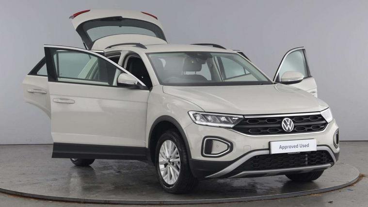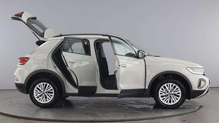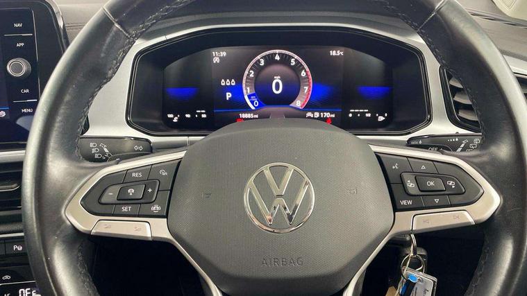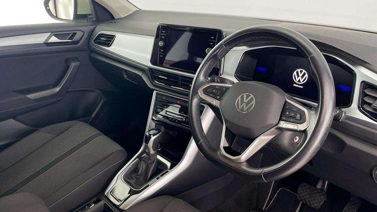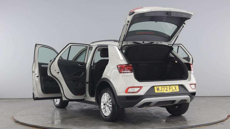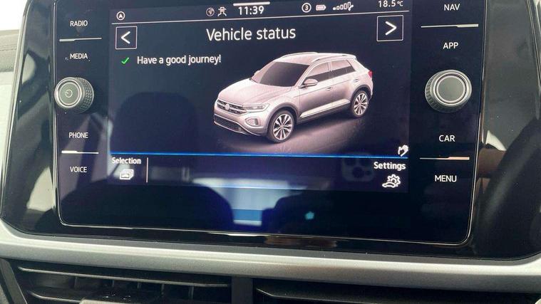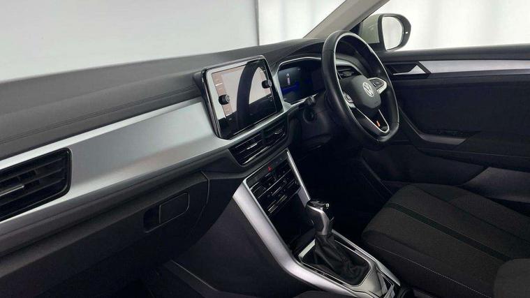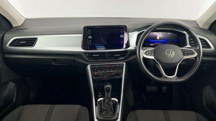 Bluetooth mobile phone interface, Driver alert system with fatigue detection, Driver tips and journey analysis, Emergency call service, Lane keeping system Lane Assist, Modified key software - reduce switch off time for key status change to Long no motion, Online services, Park assist including front and rear parking sensors, Power assisted speed sensitive steering, Service interval indicator, Tailgate/trunk lid release from outside, Think blue trainer driver tips and journey analysis, Warning sound and light for front seatbelts unfastened, Wireless app connect, Battery regeneration during braking, Front shock absorption, Rear shock absorption chassis with increased ride height, Start/stop function with battery regeneration, DAB Digital radio, Diversity antenna for FM reception, Front and rear 6 speakers, Music playback - MP3, WMA and AAC files, Premium USB cable in choice of either Apple or Android smartphone compatibility, SD card slot, Simultaneous pairing of 2 compatible mobile devices, Title and cover art display, We Connect and We Connect Plus functionality, 3rd brake light, Auto dimming interior rear view mirror, Automatic hazard lights activation under emergency braking, Automatic headlight control with LED separate daytime running lights with coming/leaving home function, Black roof rails, Body coloured bumpers and radiator grille with chrome trim and front fog lamps with chrome bezel, Body coloured exterior mirror housings and door handles, Extended roof spoiler, Exterior mirrors aspherical on driver side, convex on front passenger side, External USB type C socket and charging sockets, Front windscreen wiper with intermittent wipe and 4 position delay, Heated rear window, LED Headlights, LED rear combination lamps, LED rear number plate lights, LED tail lamp rear comination lamps, Power windows with comfort operation and circuit breaker, Rain sensor, Rear exhaust tailpipe, Rear fog light on one side and reversing lights on both sides, Rear side wing doors, Rear wash/wipe with intermittent wipe setting, Remote electrically foldable door mirrors, puddle lights and reverse activated passenger's door mirror, 12V power socket in centre console, 3 rear head restraints, 3 seat bench in 2nd row, 4 load lashing points in luggage compartment, Air care climatronic air conditoning system with active combination filter and 2-zone temperature control, Ambient lighting with mirror logo projection, Cloth upholstery, Door and side trim panel in cloth, Drawer under drivers seat, Driver/front passenger seat height adjustment, Front centre armrest, Front comfort sports seats, Front cupholders x 2, Front reading light, Instrument lighting, white adjustable panel illumination, Interior light delay, Isofix child seat preparation, Leather gearshift handle, Load-through provision with cup holder when folded down ('Unsplit rear seat bench, split folding backrest, with centre armrest), Luggage compartment lighting, Lumbar support for driver's and front passengers seat, Non-folding front passenger seat backrest, Single front passenger seat, Storage compartment in left and right luggage area, Storage compartment in rear doors, Storage compartments in driver and front passenger doors, Sunvisors with illuminated vanity mirrors, Variable boot floor, height adjustable and removable, Driver assistance pack without proactive passenger protection - T-Roc, 3 point height adj front seatbelts + pretensioners, 3 point seatbelts in outer rear with ECE label, ABS, Child locks on rear doors, Driver and front passenger airbag with front passenger airbag deactivation, Driver and front passenger safety-optimised head restraints, Drivers seatbelt reminder, Electronic parking brake, Electronic Stability Control (ESC) inc EDL (Electronic Differential Lock) and ASR (Traction Control), Front and rear passengers curtain airbag system including front side airbags, Front assist with city emergency braking and pedestrian monitoring, Front disc brakes, Front seat side impact airbags, Hill start assist, Predictive pedestrian protection, Rear disc brakes, Single tone horn, Tyre pressure loss indicator, Volkswagen roadside assistance, Alarm with interior protection, Anti-theft alarm system with interior monitoring, backup horn, and towing protection, Remote central locking with SAFELOCK, radio remote control with 2 remote control folding keys, Pewter matt decorative inserts for intrument panel, centre console and door panels at the front, Trims for alloy wheels,