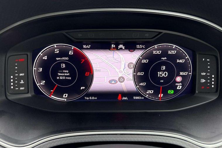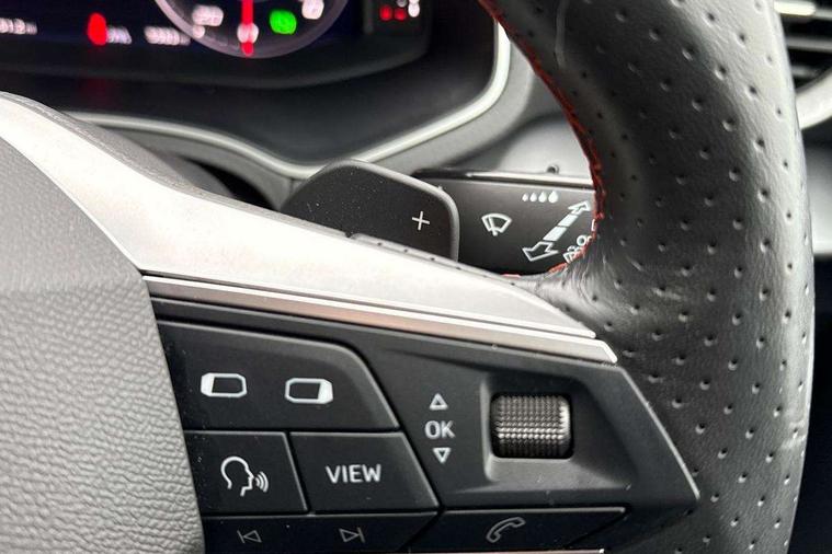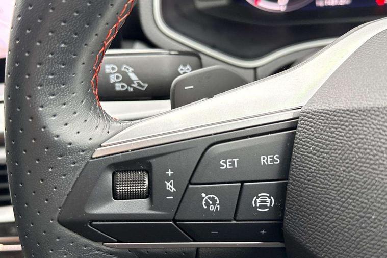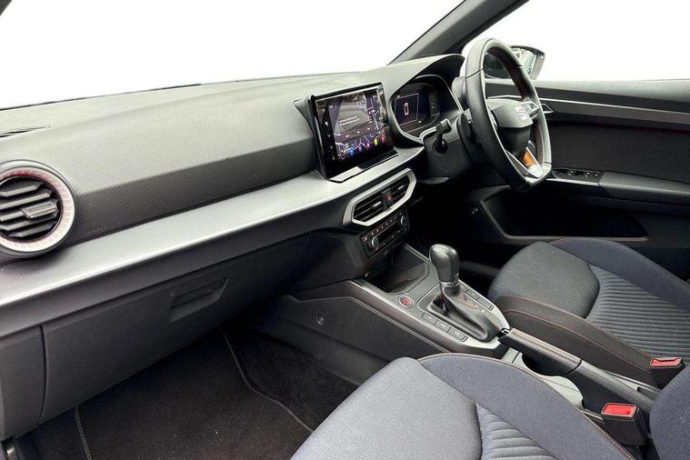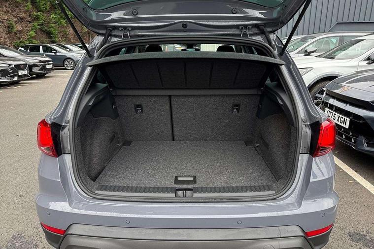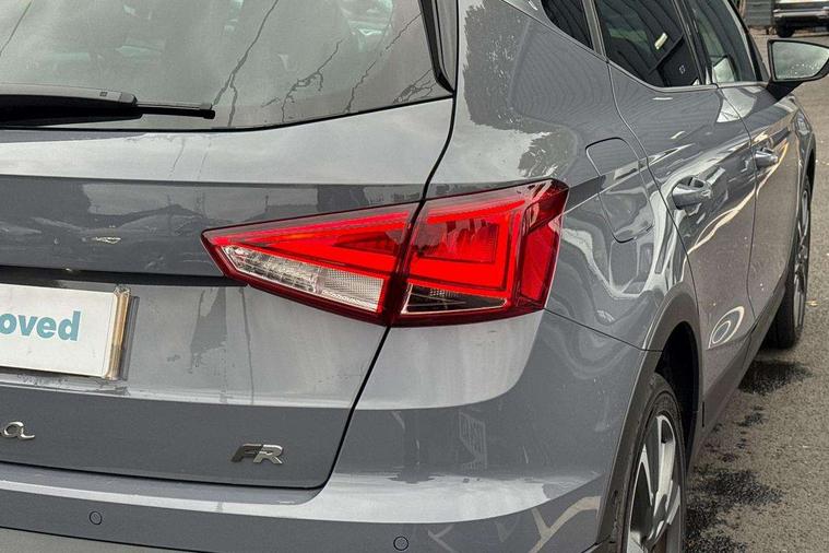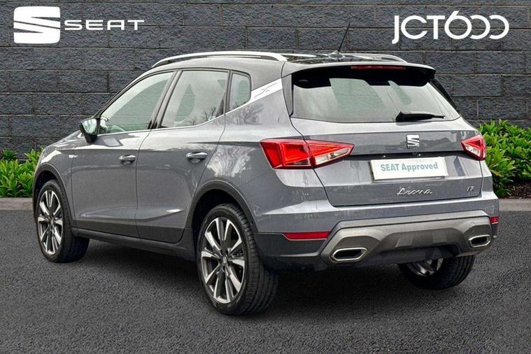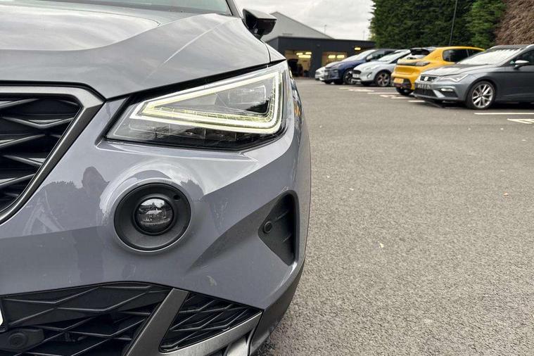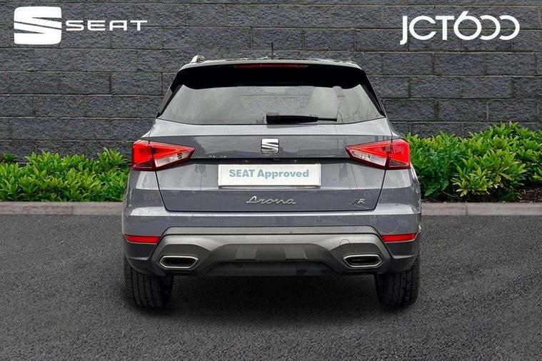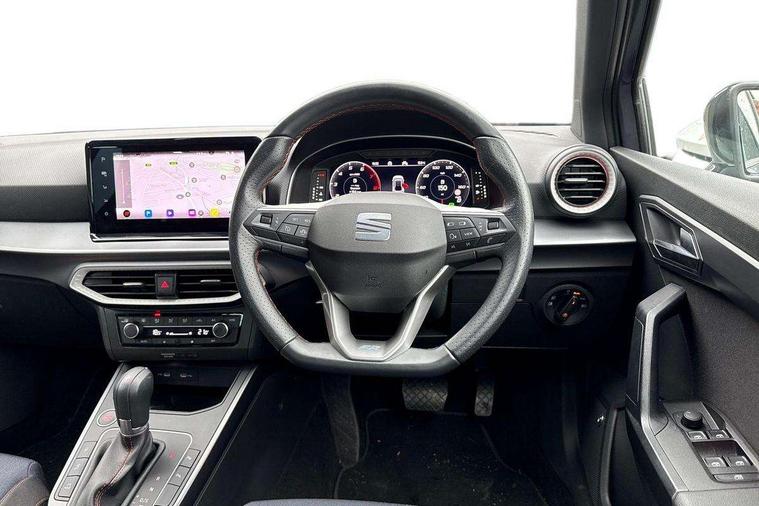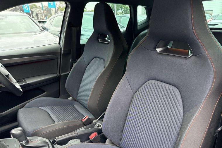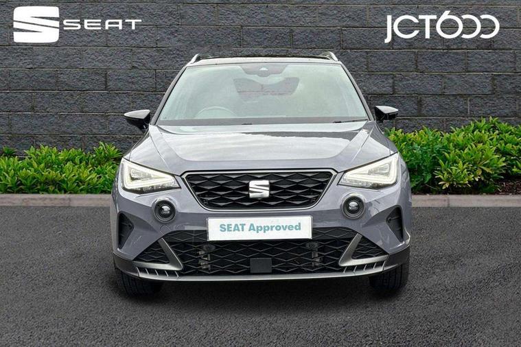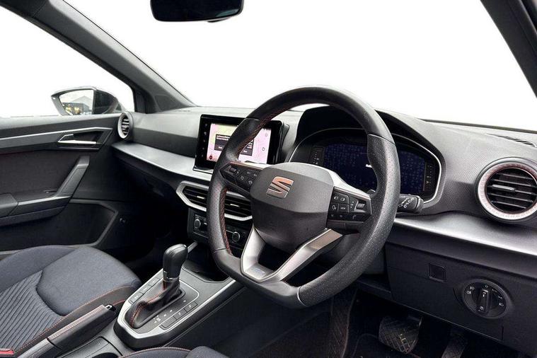 'Lights On' Reminder warning buzzer, 10" Digital cockpit, Digital clock, E-call, Electric speed sensitive power steering, Full Link Smartphone Integration with Mirror Link, Apple Car Play, Google Android Auto with USB Type C cable for Apple and Android compatibility, Lane keeping system, Low fuel warning light, Outside temperature display, Park assist system, Rear view camera, RPM counter, SEAT Drive profile - Four different models normal-sport-eco-individual, steering response, throttle response and gear shifts mode, Trip computer, Wireless phone charger, 9.2" colour touchscreen with navigation system, voice control and USB port (type c), Bluetooth interface for hands free and audio streaming, DAB digital radio and AM/FM radio, Steering wheel mounted audio controls, Anti theft roof antenna, Auto dimming interior rear view mirror, Automatic activation of hazard warning lights, Body coloured bumpers, Body coloured door handle inserts, Chrome roof rails and window surrounds, Dark tinted rear windows, Electric front/rear windows, Electrically adjustable, heated and folding door mirrors, Front fog lights with cornering function and rear fog light, FULL LED automatic headlights with dynamic headlight range control, coming and leaving home, LED daytime running lights, LED rear tail lights and licence plate lights, Protective side mouldings, Rain sensing wipers, Rear side wing doors, Rear spoiler, Rear window wash/wipe, Roof colour door mirrors, Third brake light, Twin exhaust pipe styling hidden exhaust pipe, Visible VIN plate, 2 cupholders, 3 seat bench in 2nd row, 60/40 split folding rear seat, Aircare filter, Black interior roof, Double boot floor, Driver sunvisor with covered mirror + card holder, Dual zone climate control, Front courtesy light with front reading lights, Front sport seats, Gear shift indicator, Grey interior air vents, Height adjustable front seats, Height/reach adjustable steering column, Illuminated boot, Instrument lighting with brightness control, Interior ambient lighting, Interior light in footwell, central console and door panel, ISOFIX points in outer rear seats with top tether anchorage points, Microsuede cloth upholstery + sports bucket seats, Passenger sunvisor with vanity mirror, Perforated flat bottomed leather steering wheel/gear knob/handbrake with red stitching and FR logo, Potentiometer, Single front passenger seat, Steering wheel mounted gearshift paddles, Two front and three rear height adjustable headrests, Interior chrome pack - Arona, Safe and driving pack (S) - Arona, 3 point seatbelts on all rear seats, ABS, Active front headrests, Child locks on rear doors, Driver and front passenger airbags with front passenger airbag de activation, front side and curtain airbags, Electronic Stability Control (ESC), Emergency Brake Assist (EBA) and front assist, Front and rear seatbelt reminder, Hill hold control, Multi-Collision braking, Tiredness recognition system, Traction control, Tyre pressure monitoring system, Alarm with back-up horn, Electronic engine immobiliser, KESSY Keyless entry and go, Locking wheel bolts, Remote central locking + deadlocks, Tow away protection, Titan black dashboard, 18" Performance Cosmo grey alloy wheels,